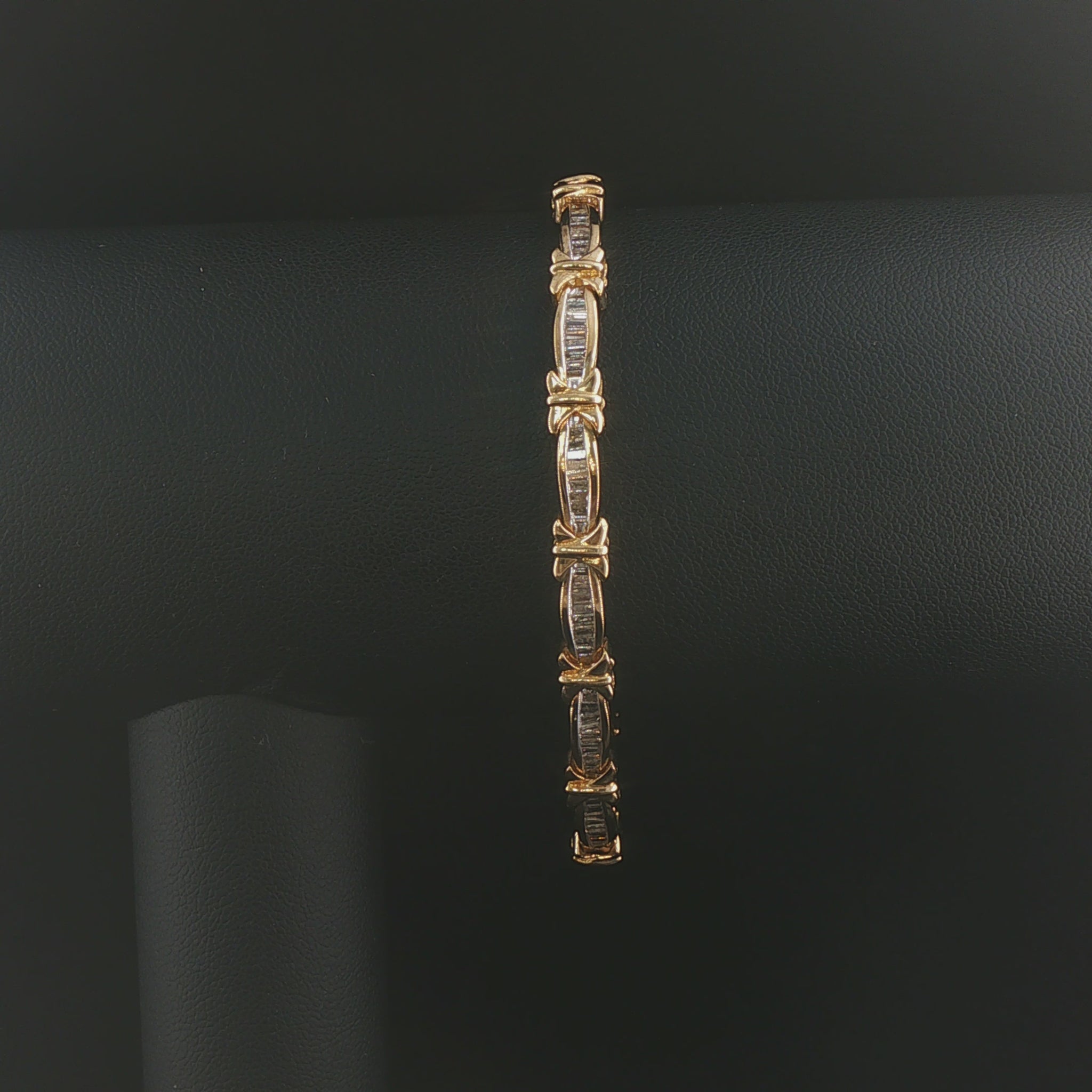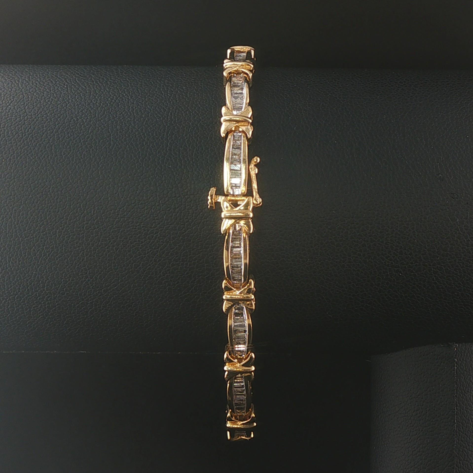 10k Yellow Gold 2cttw Baguette Diamond Fancy Link Bracelet 7"