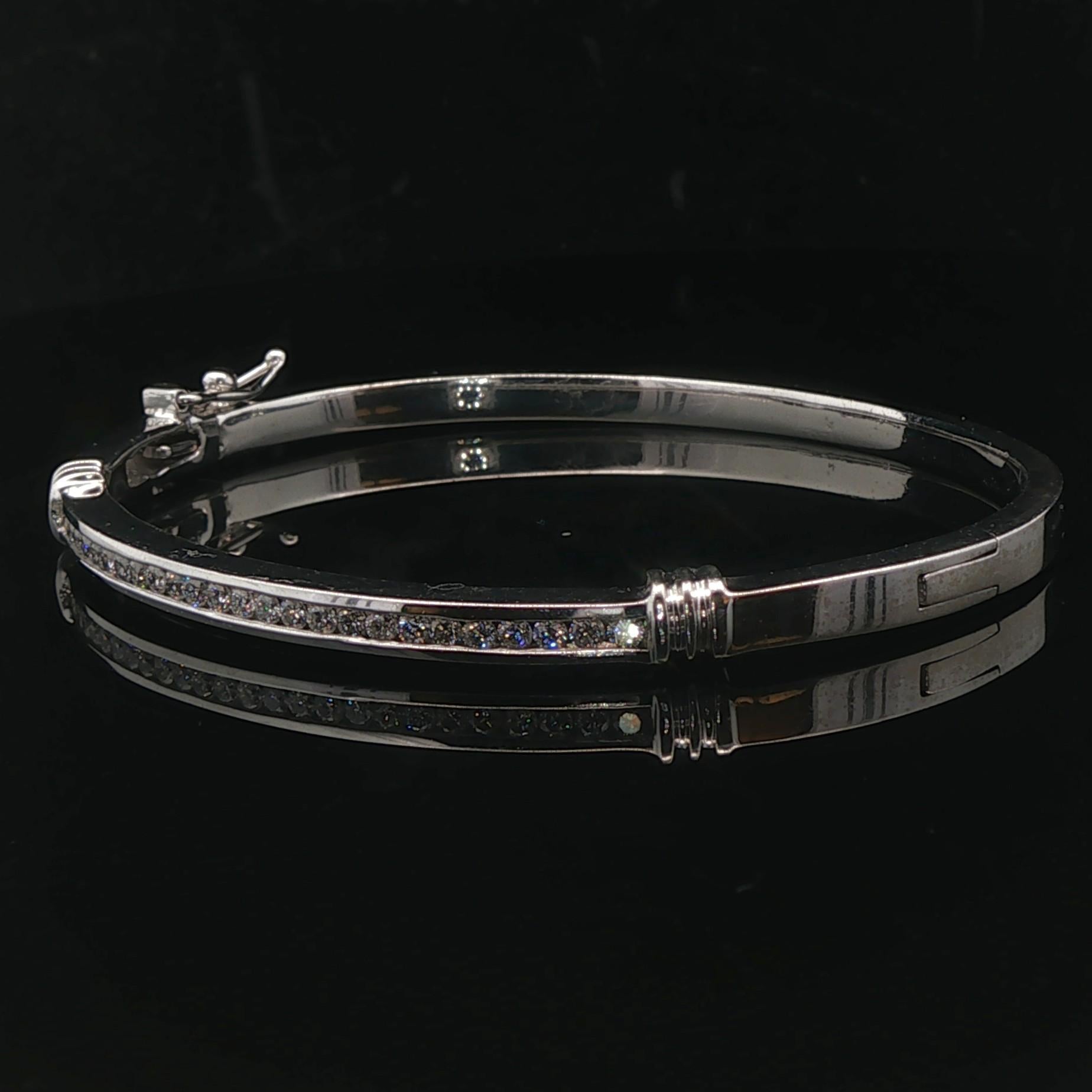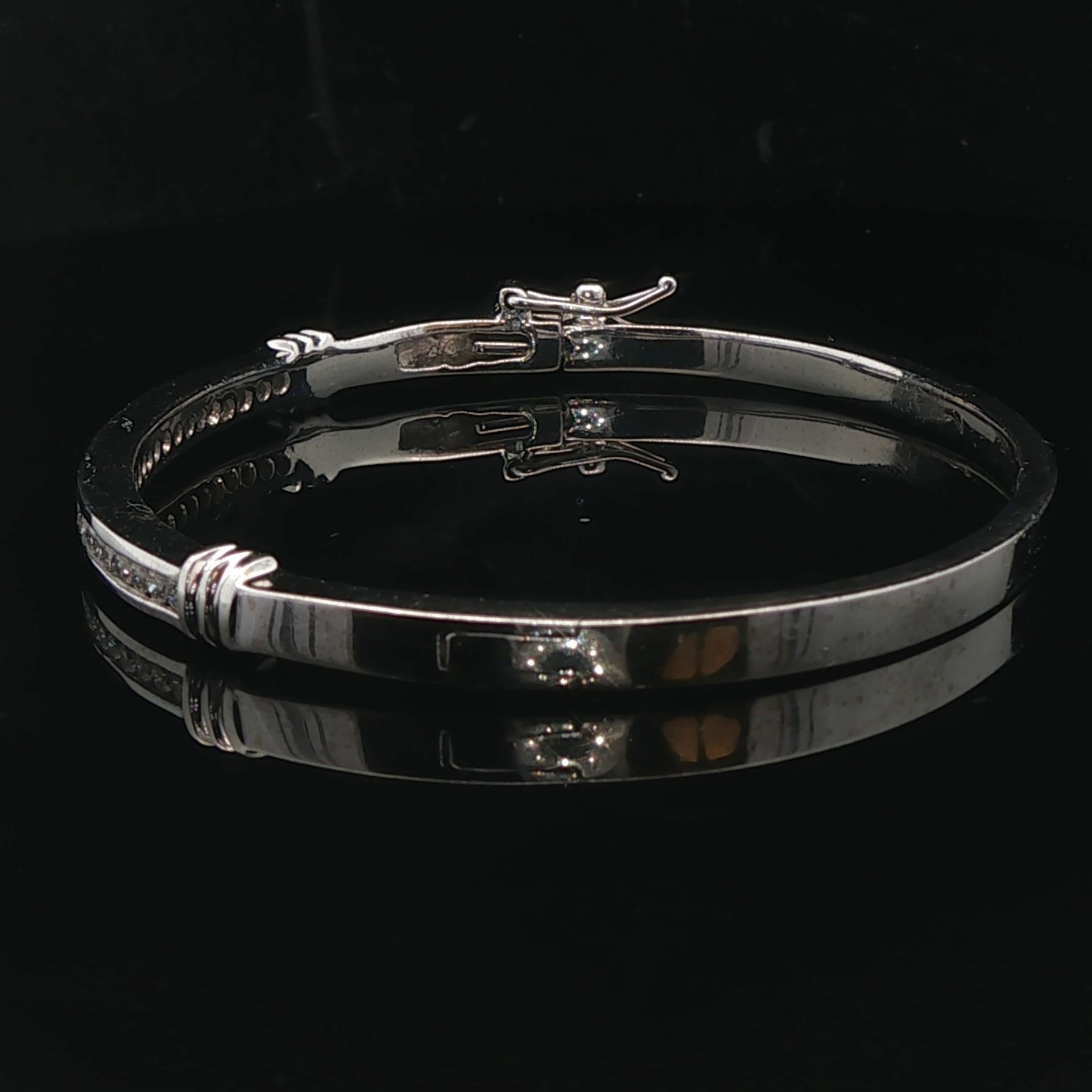 14k White Gold and 0.50cttw Diamond 18.6g Solid Bangle Bracelet 6.75"
