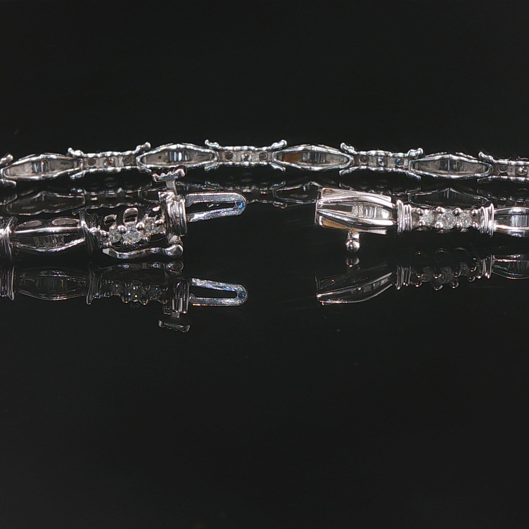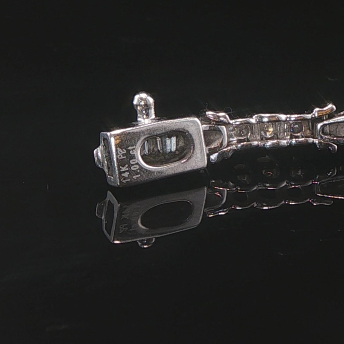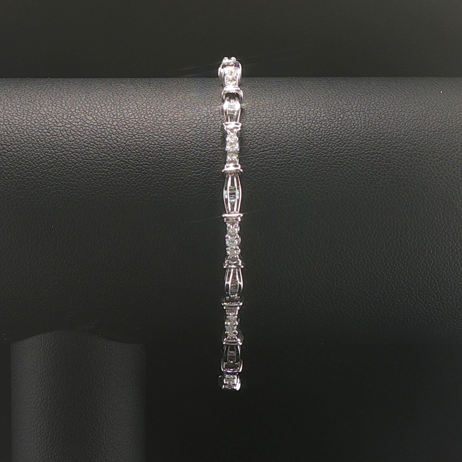 14k White Gold and 1cttw Round and Baguette Diamond Link Bracelet 7"