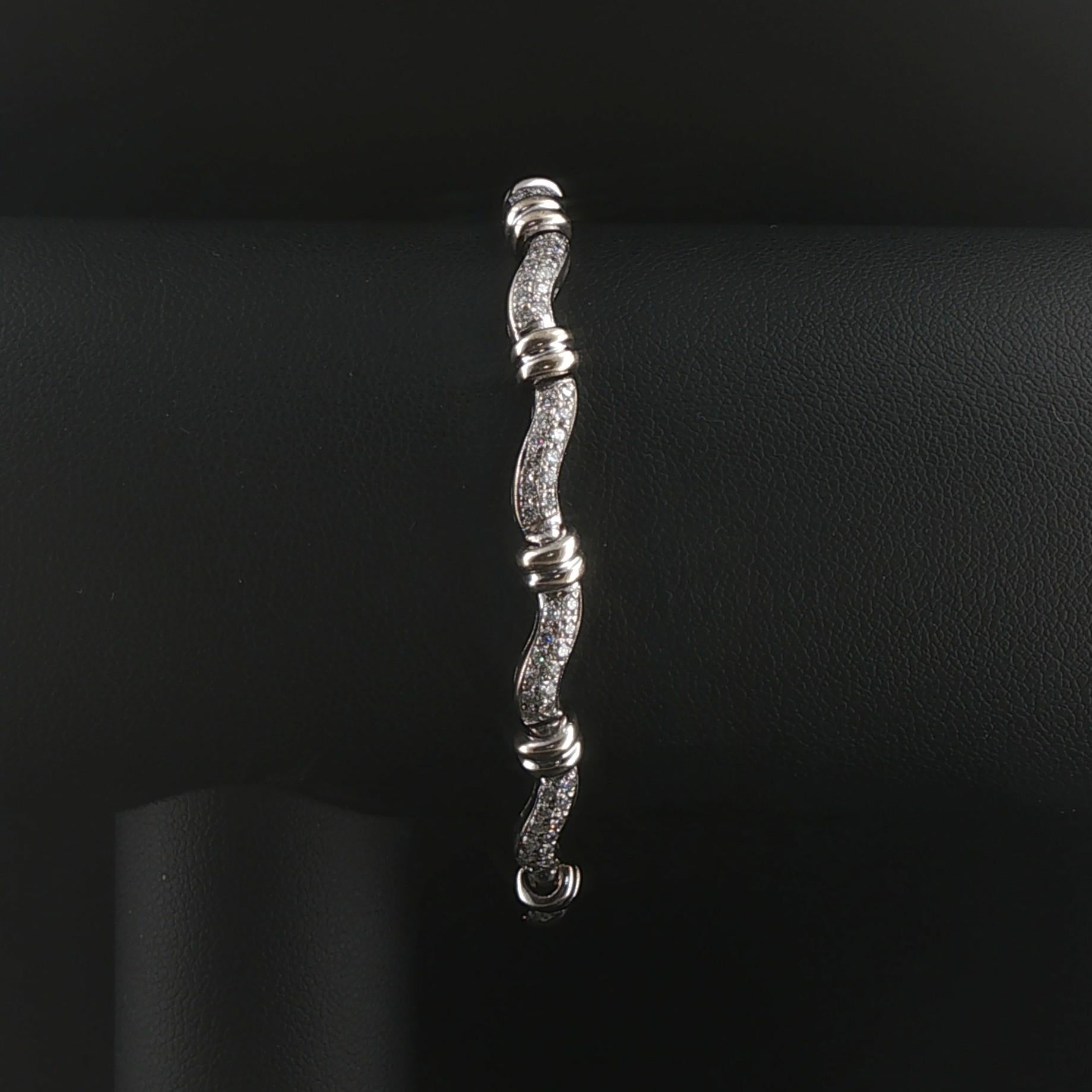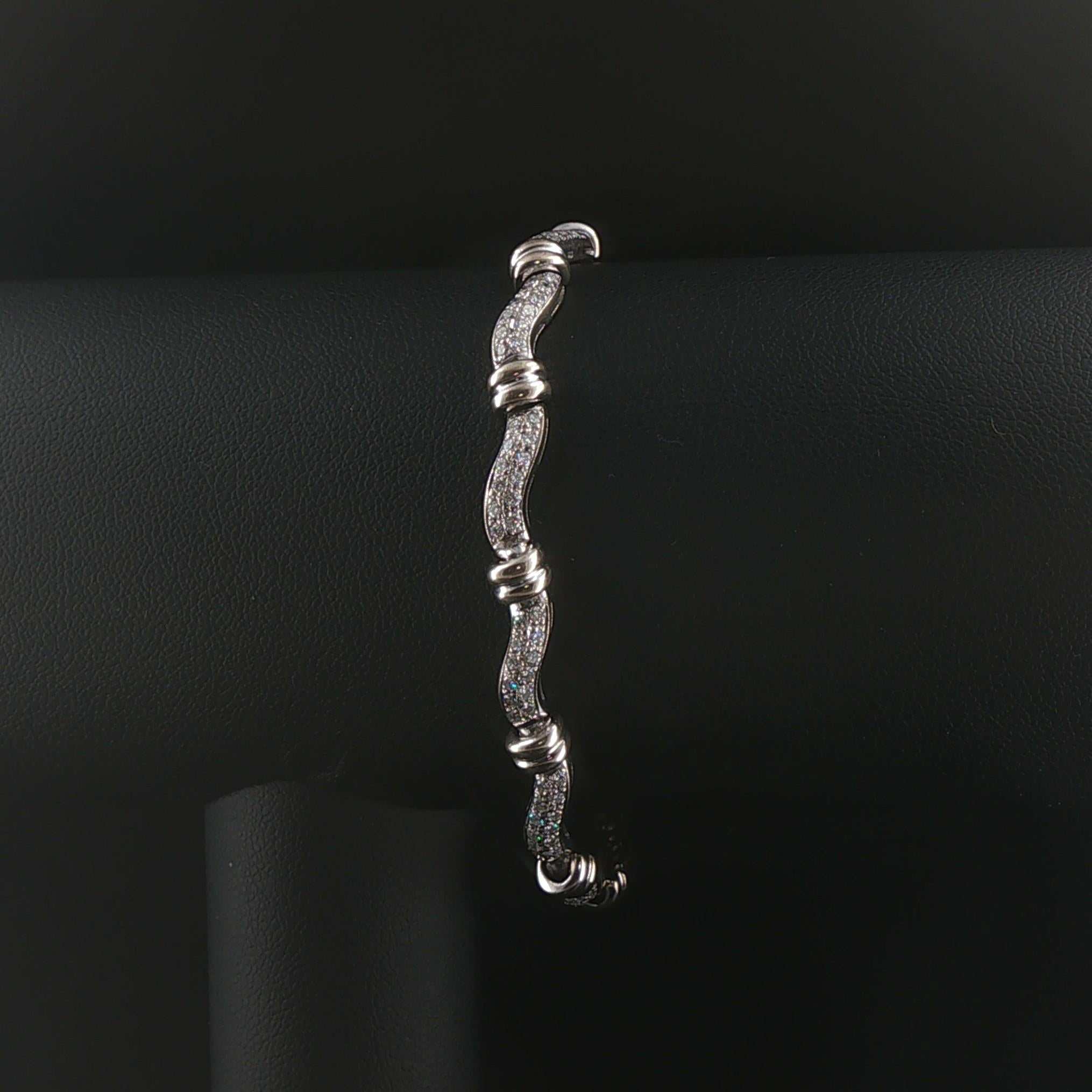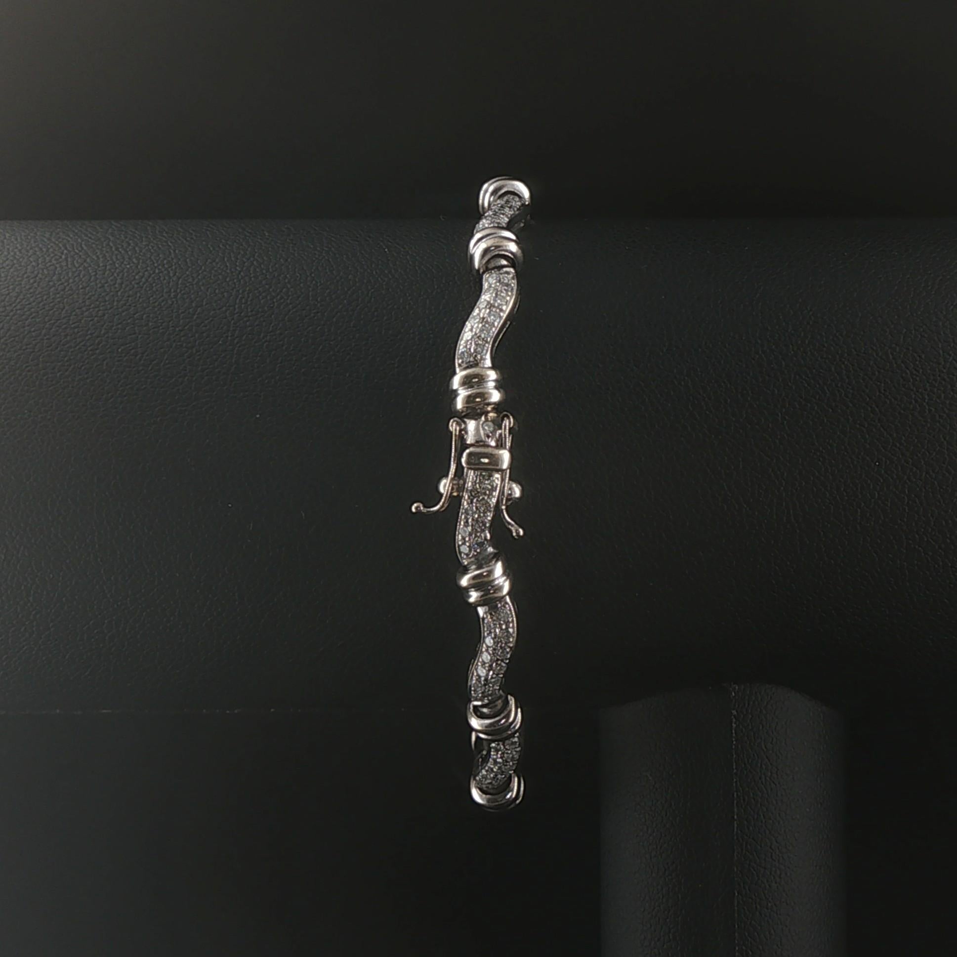 14k White Gold and 2cttw Diamond Curved Bar Link Bracelet 7"