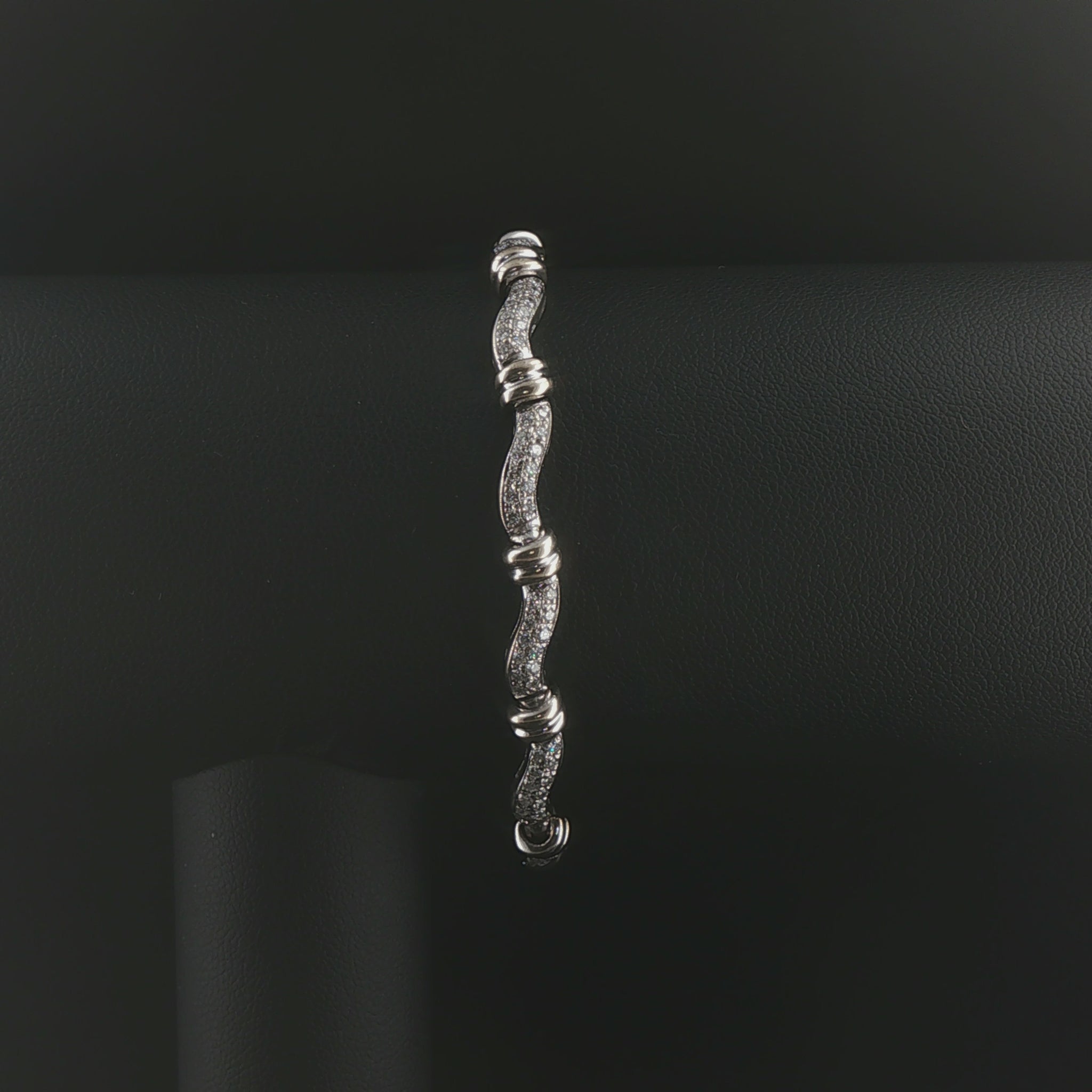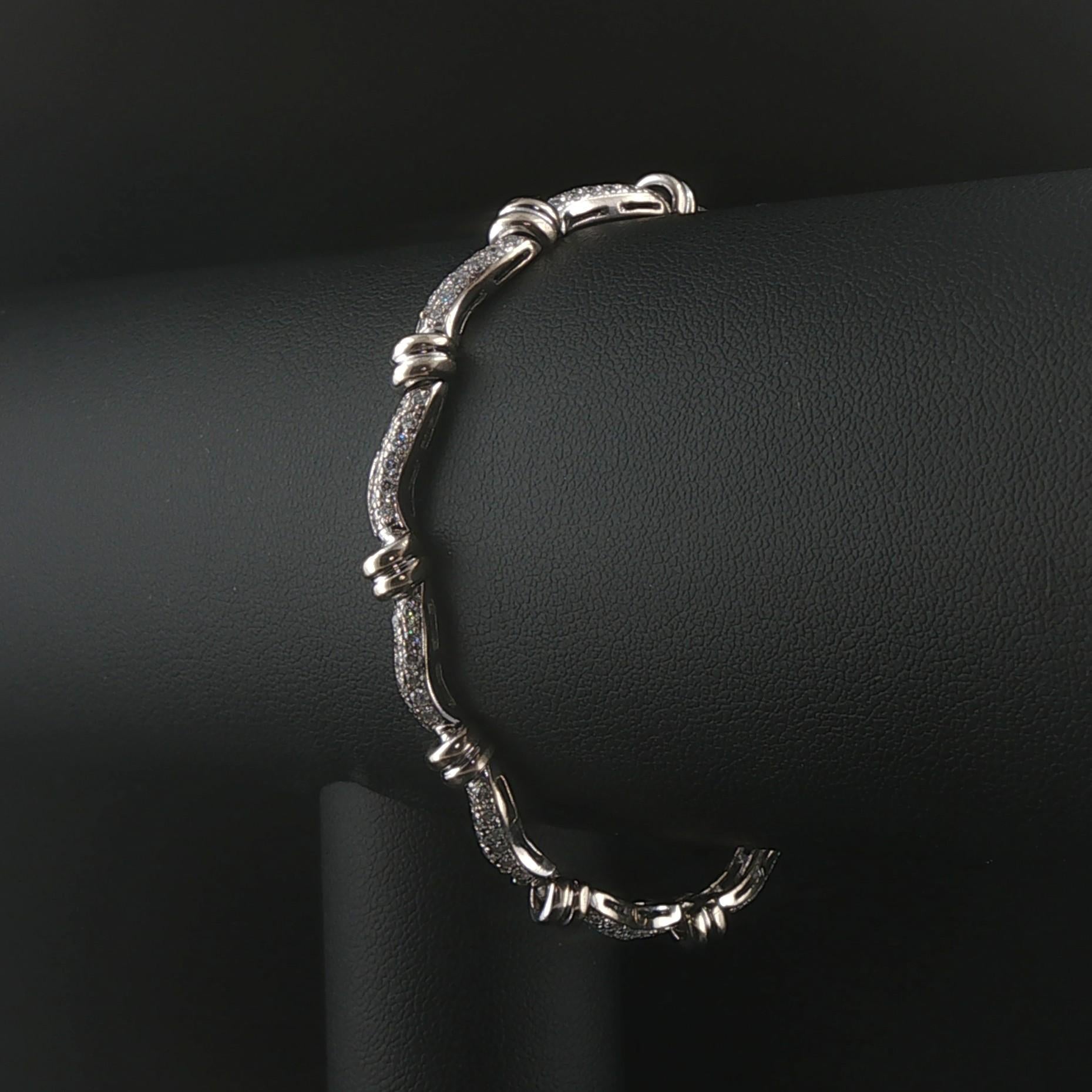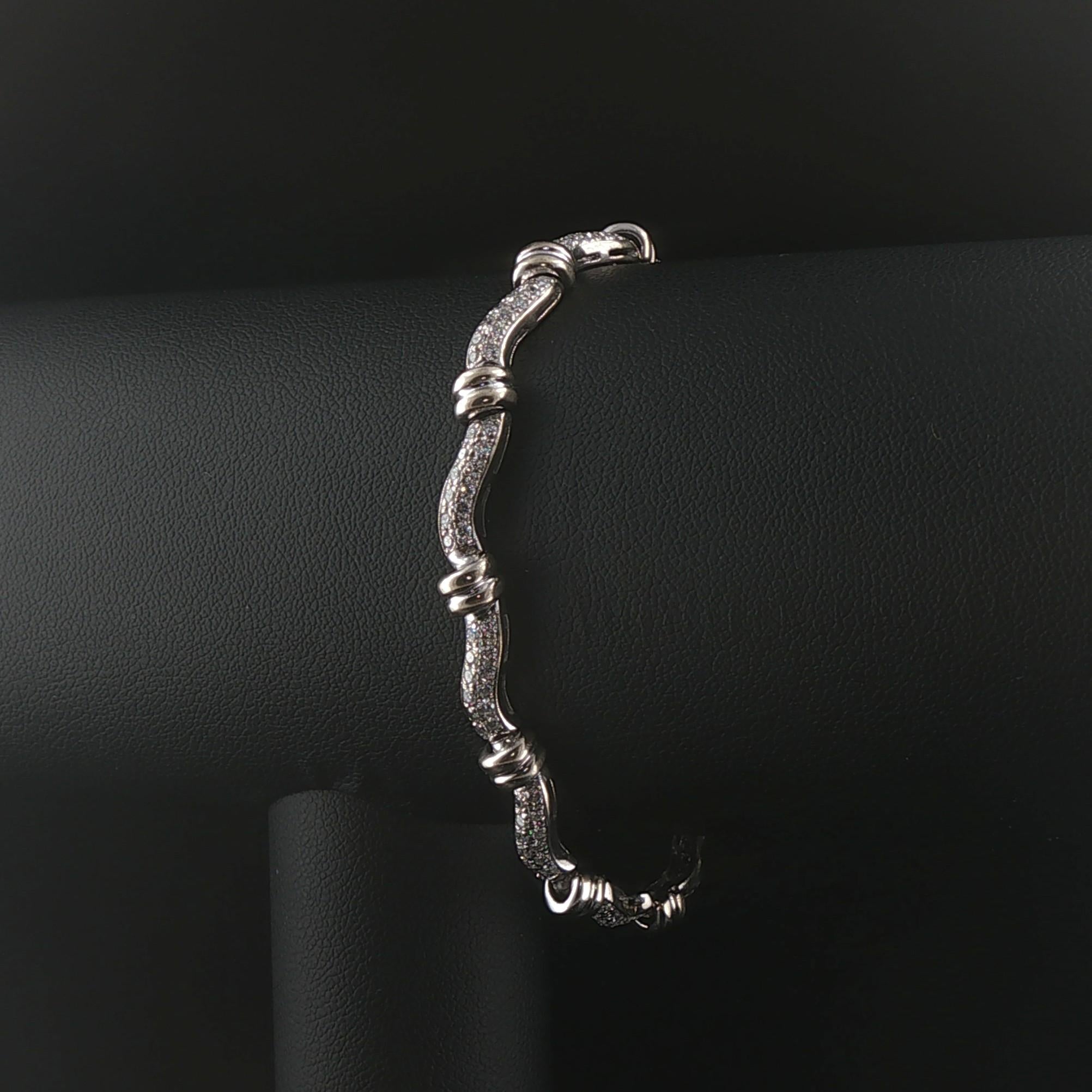 14k White Gold and 2cttw Diamond Curved Bar Link Bracelet 7"
