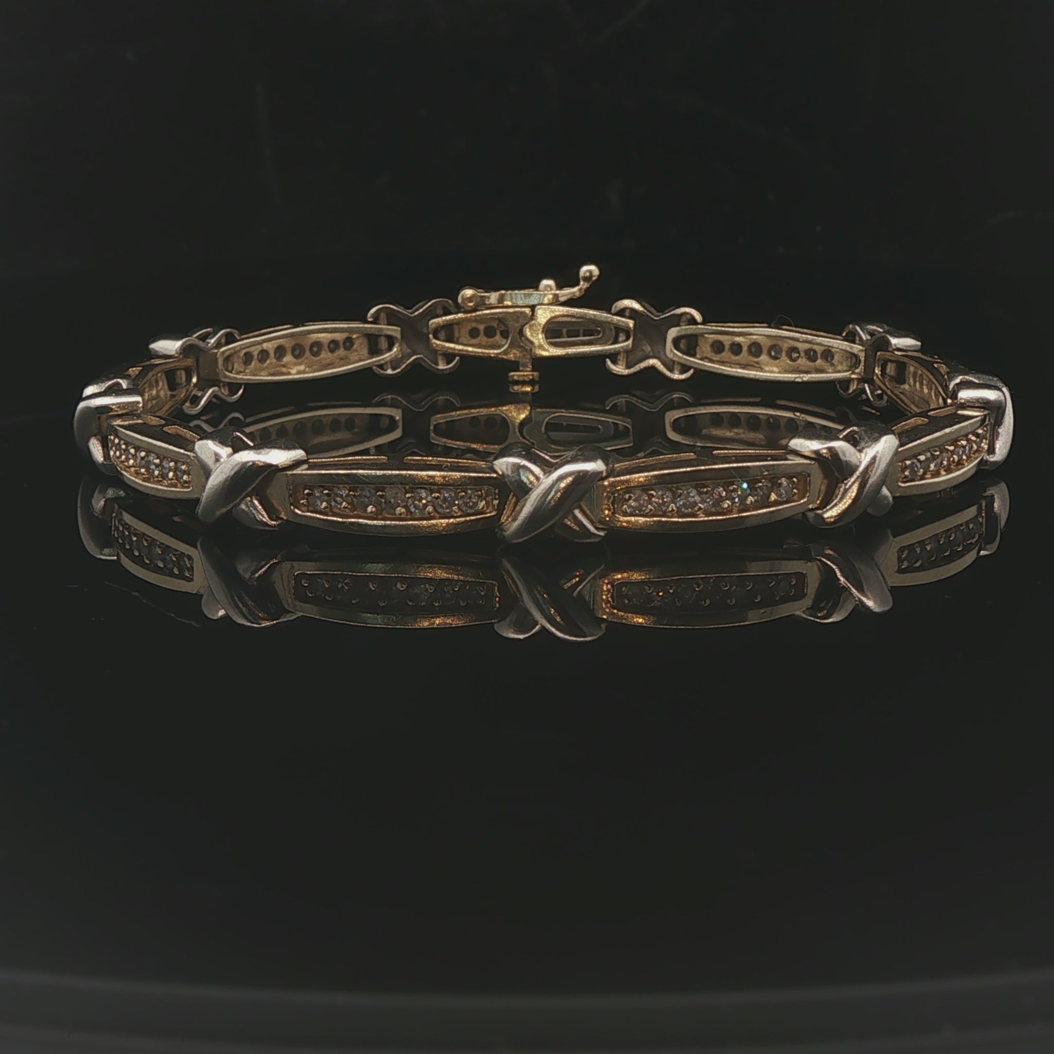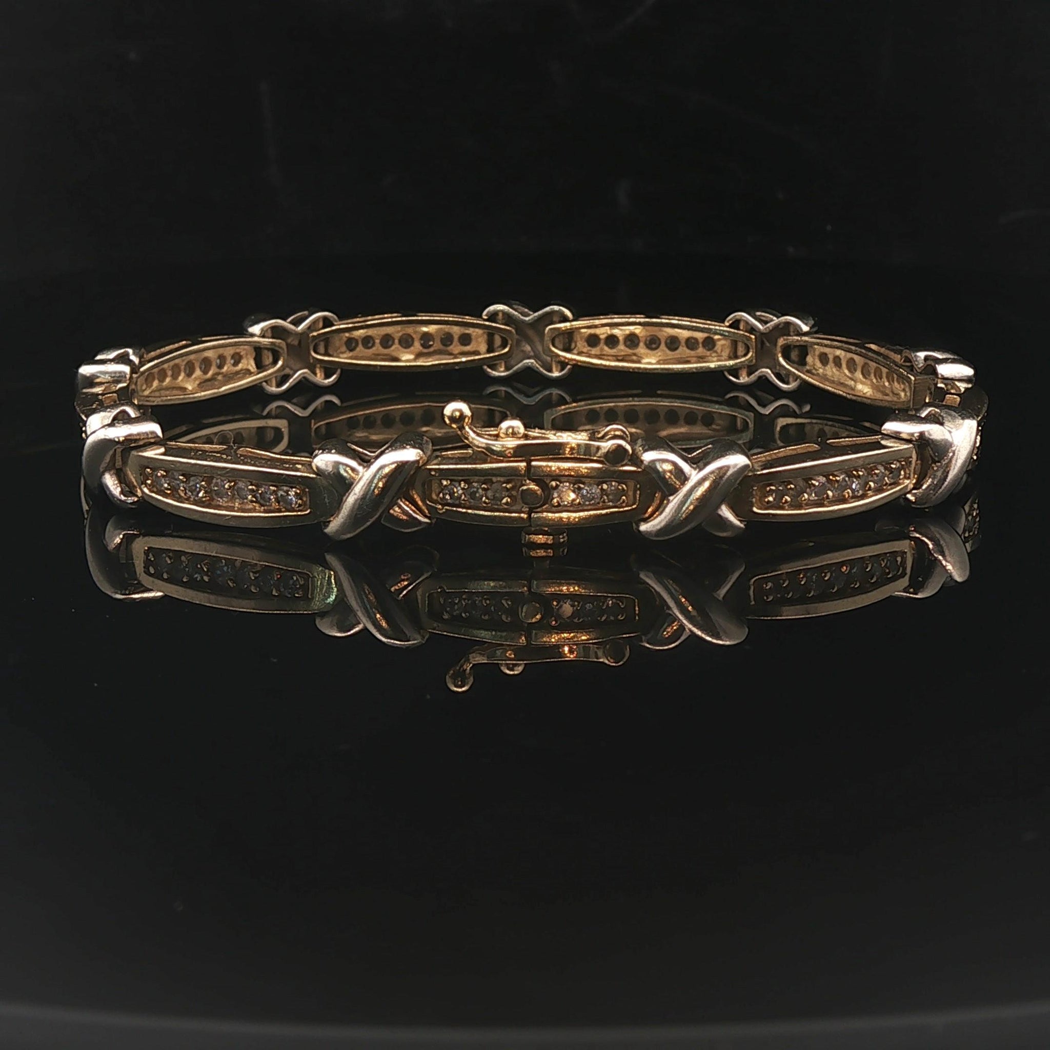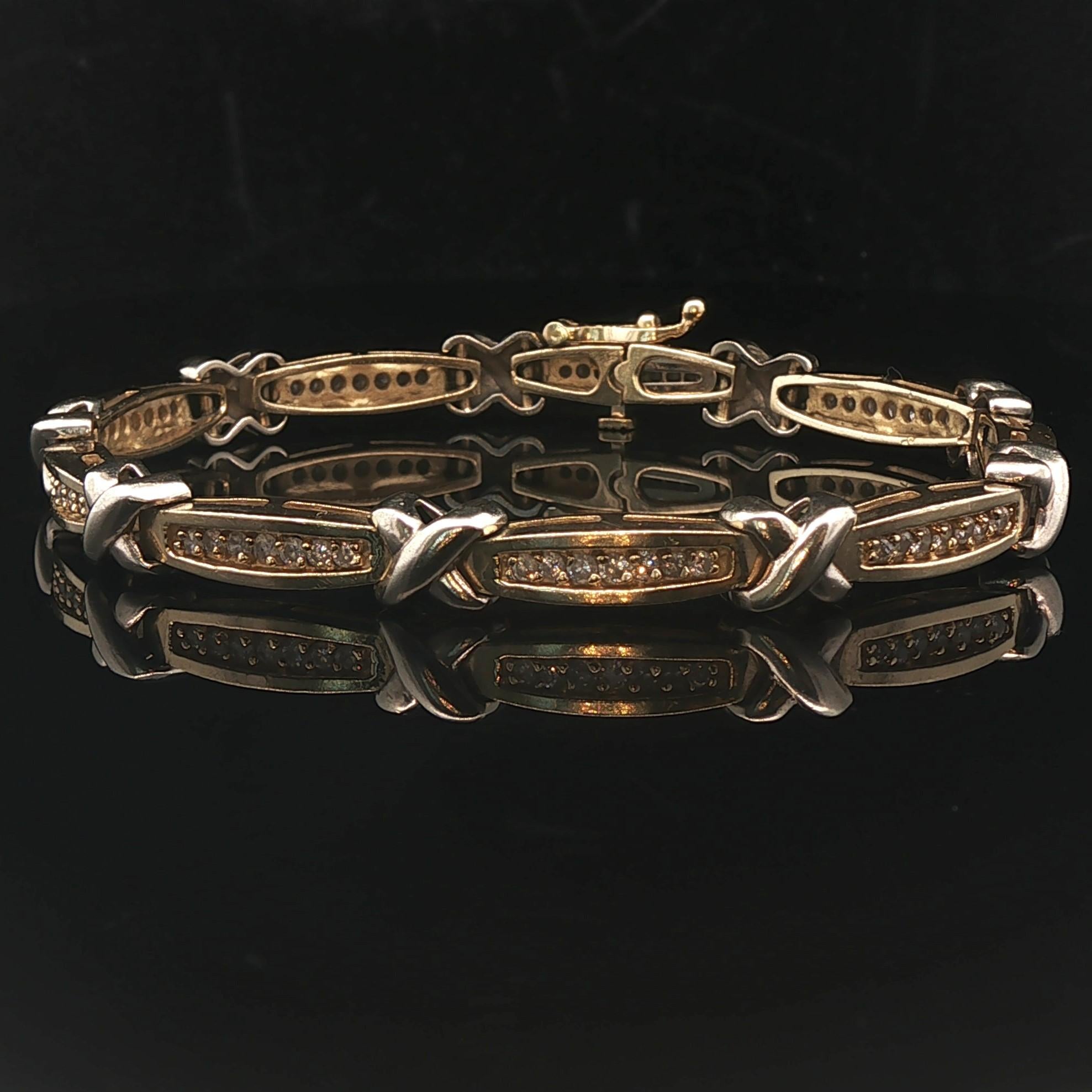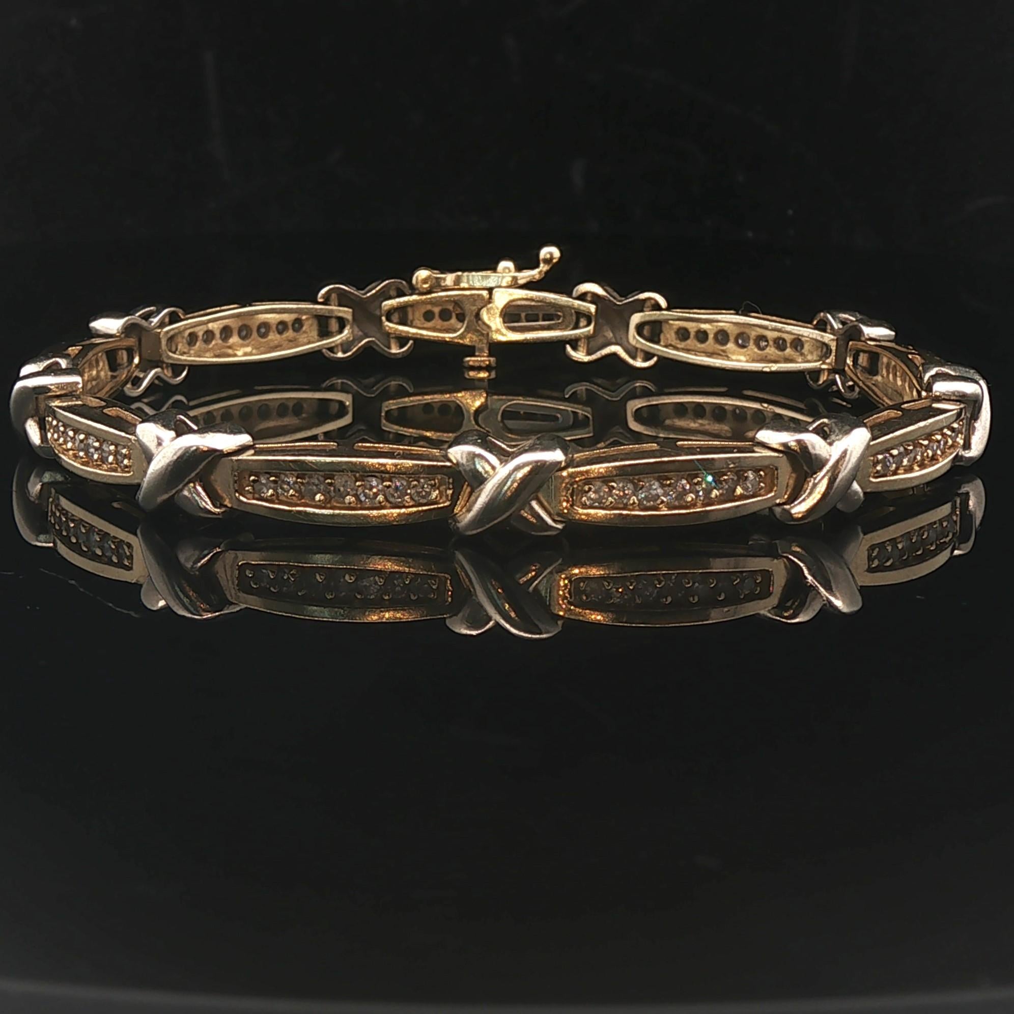 14k Yellow Gold and 1cttw Diamond 18.2g Fancy X Link Bracelet 7"