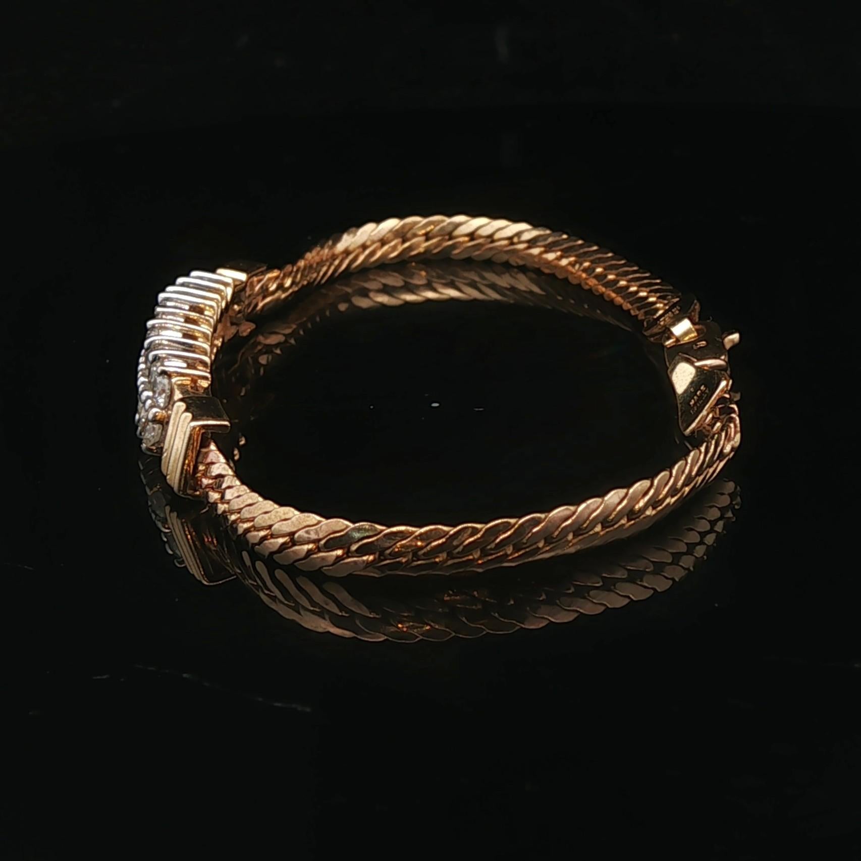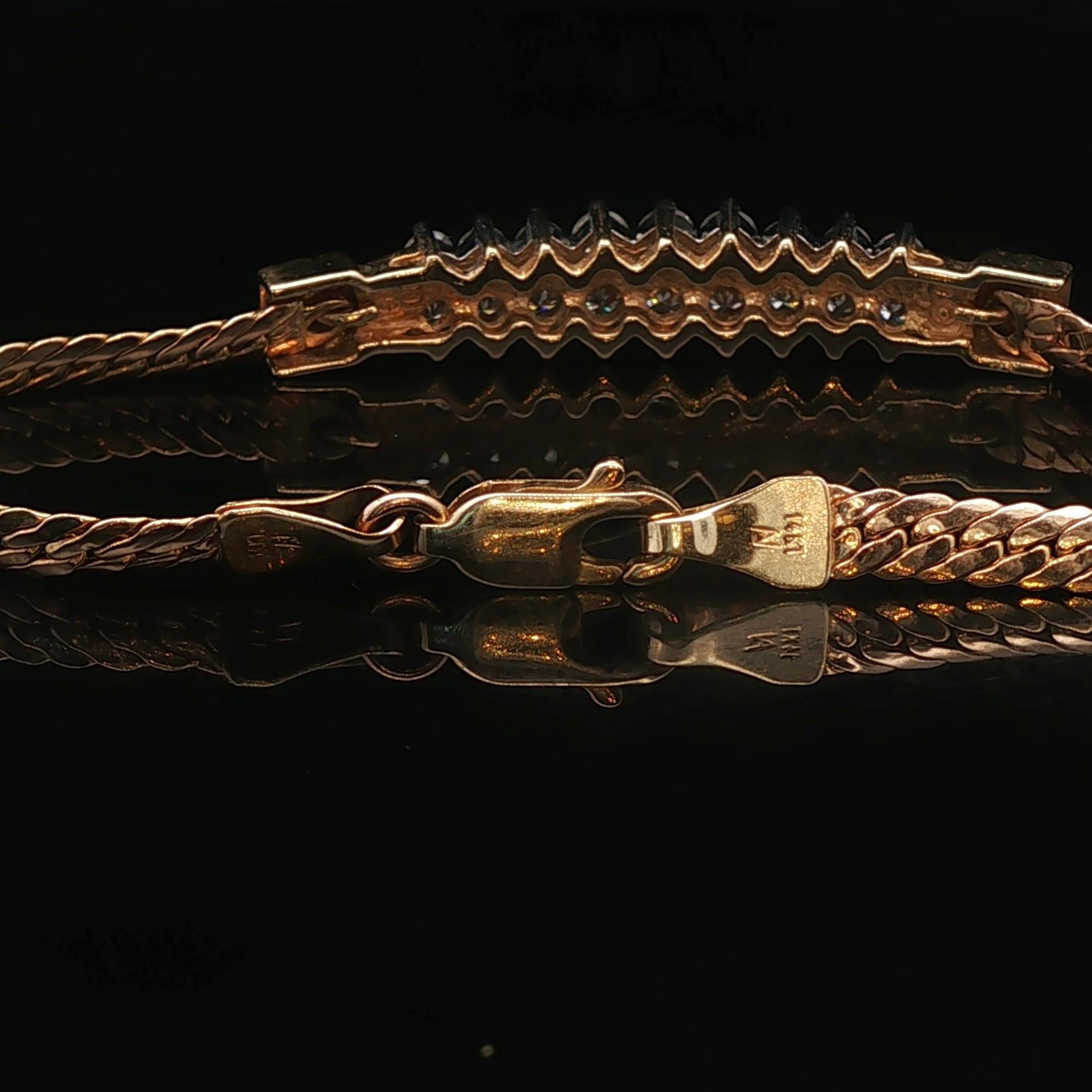 14k Yellow Gold and 1cttw Diamond Bar Flattened Curb Link Bracelet Italy 6.25"