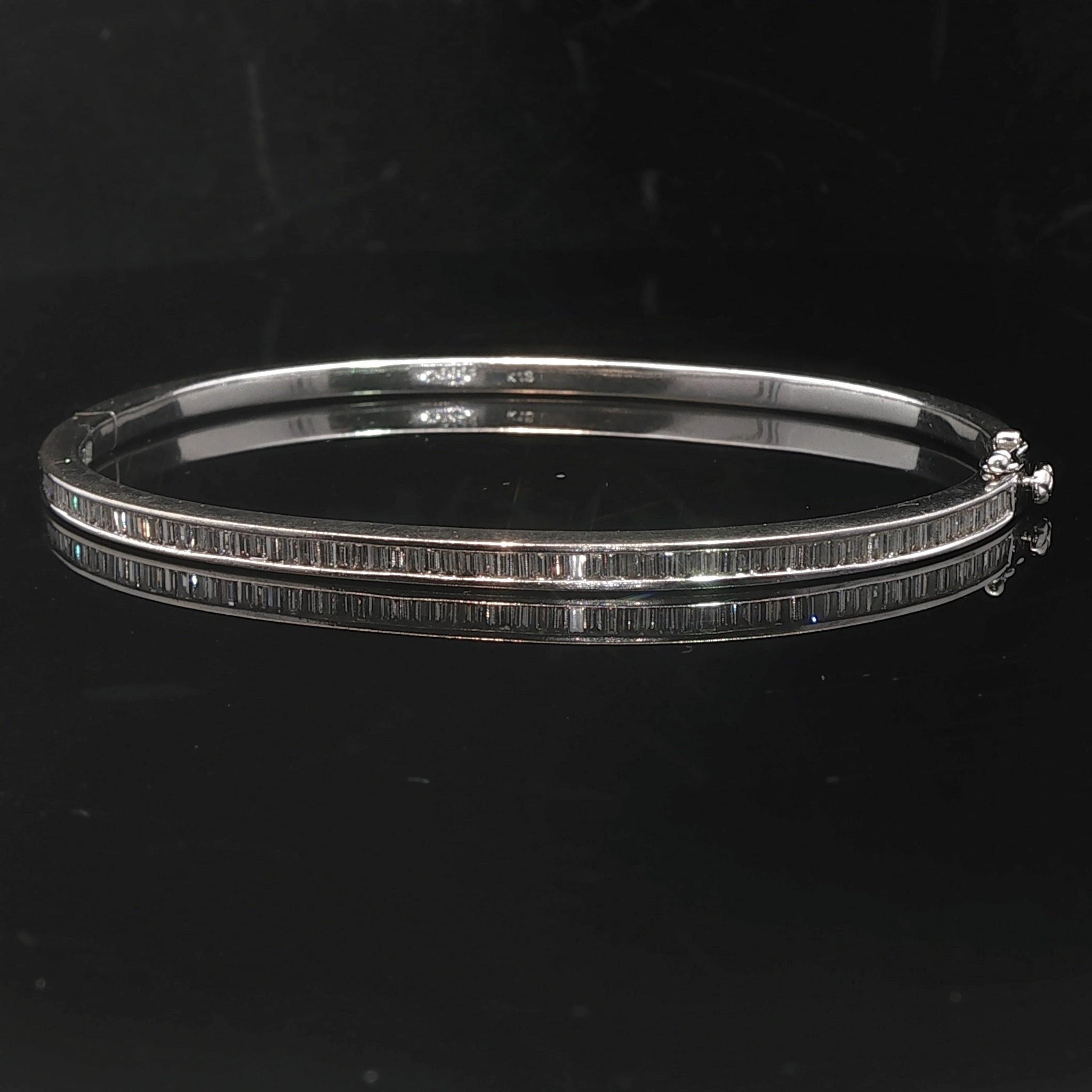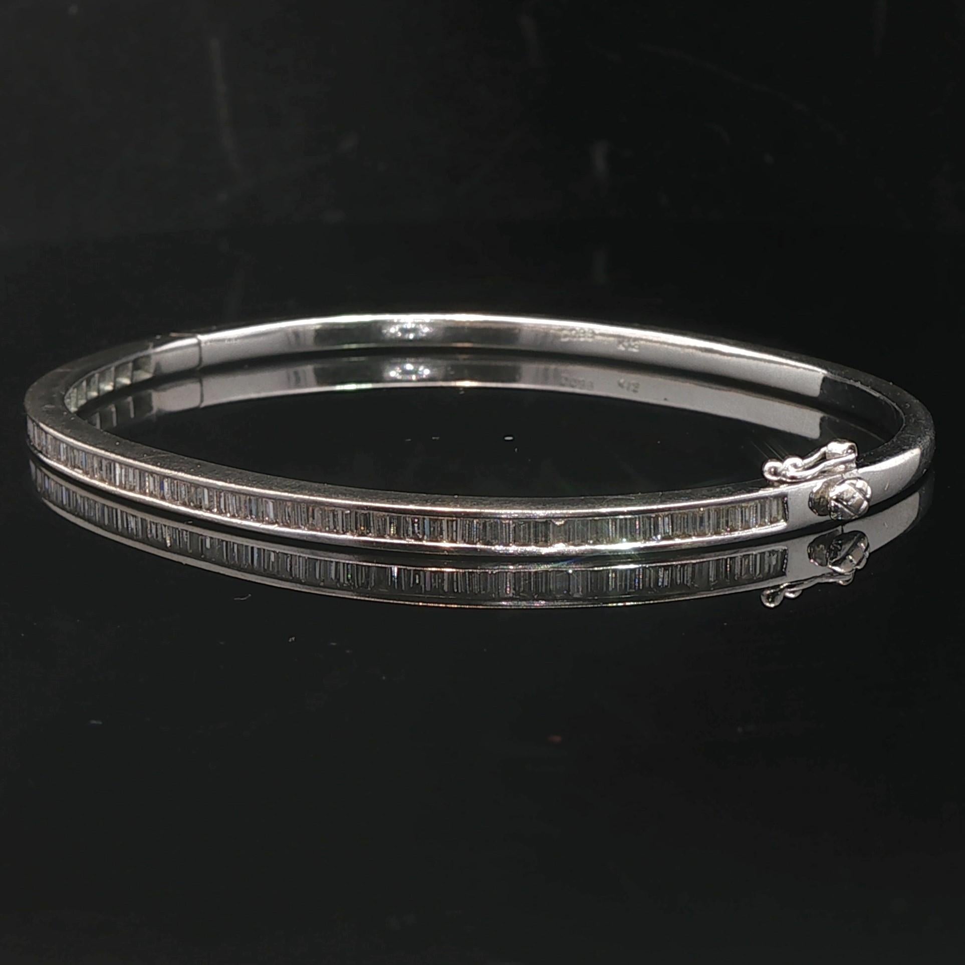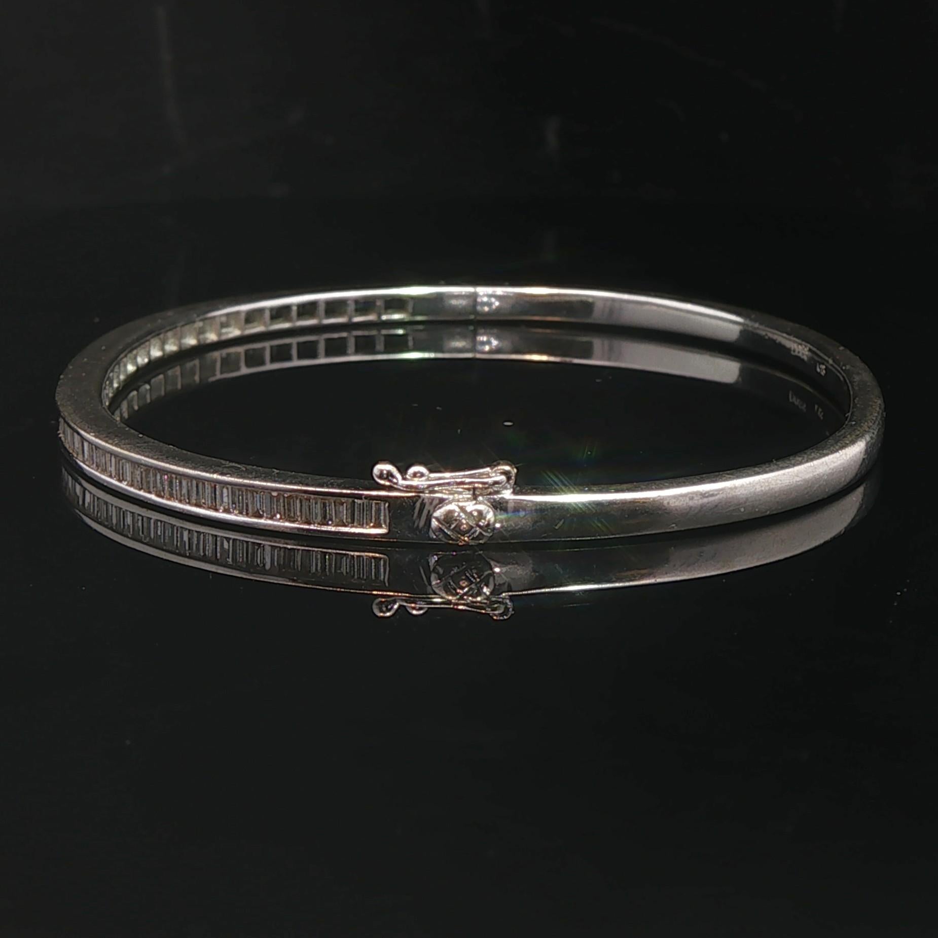 18k White Gold and 0.88cttw Baguette Diamonds Bangle Bracelet 6.5"