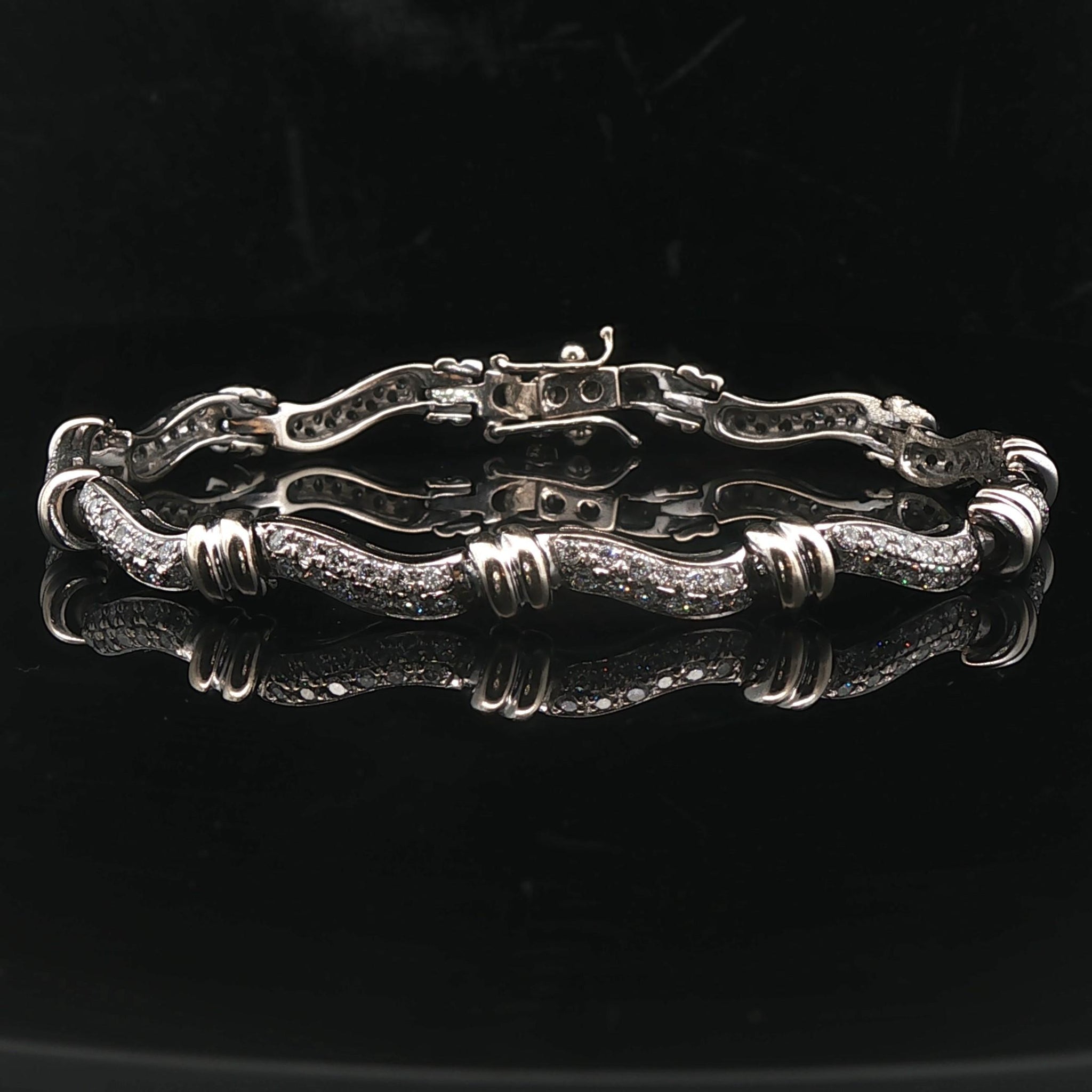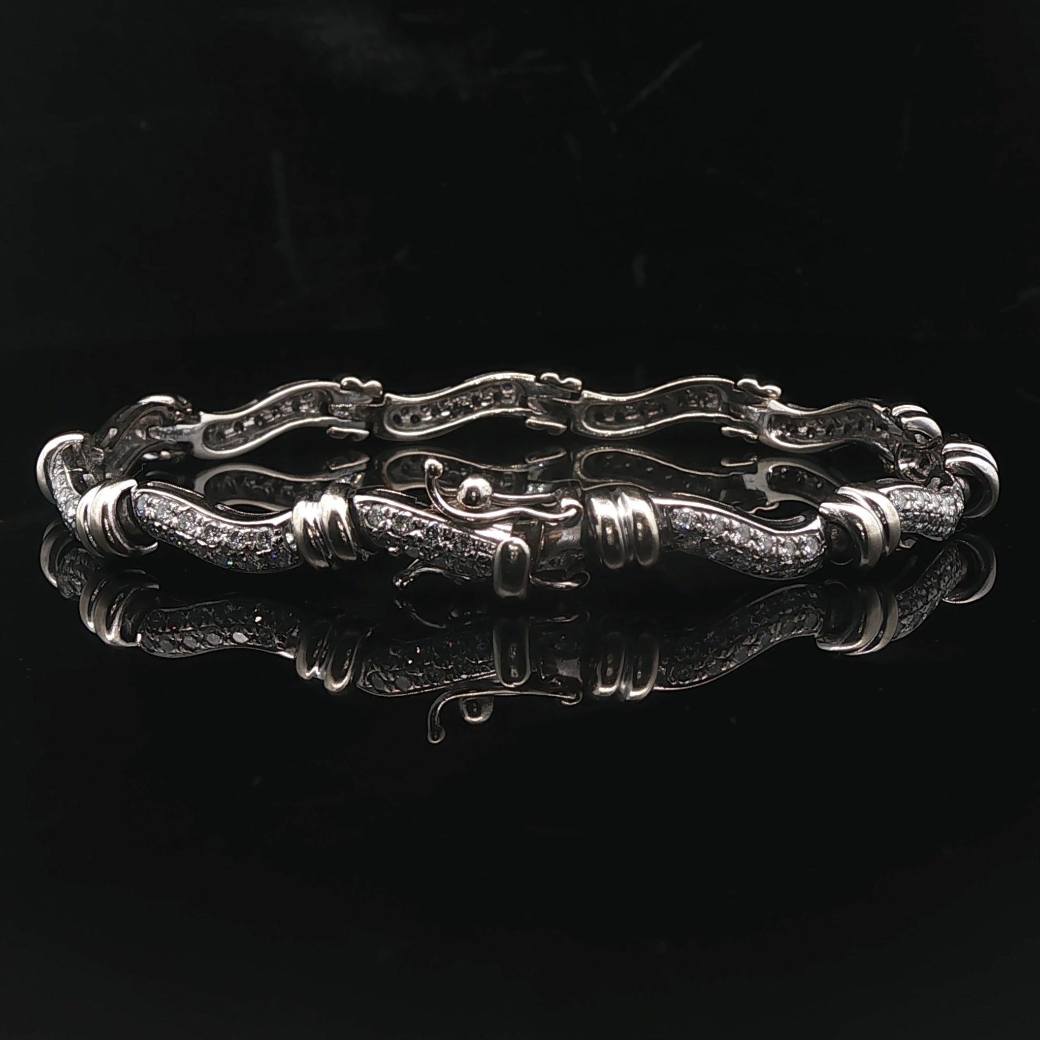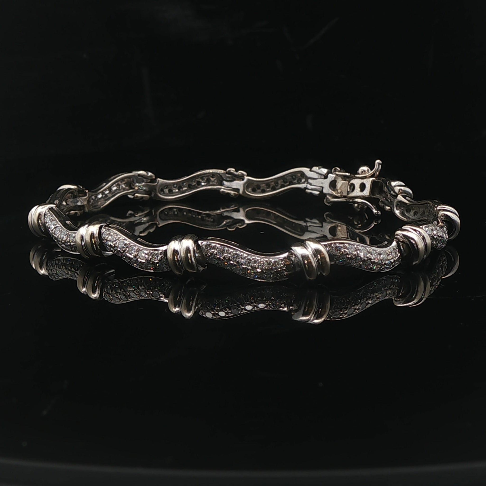 18k White Gold and 1.5cttw Diamond Curved Bar Link Bracelet 7"