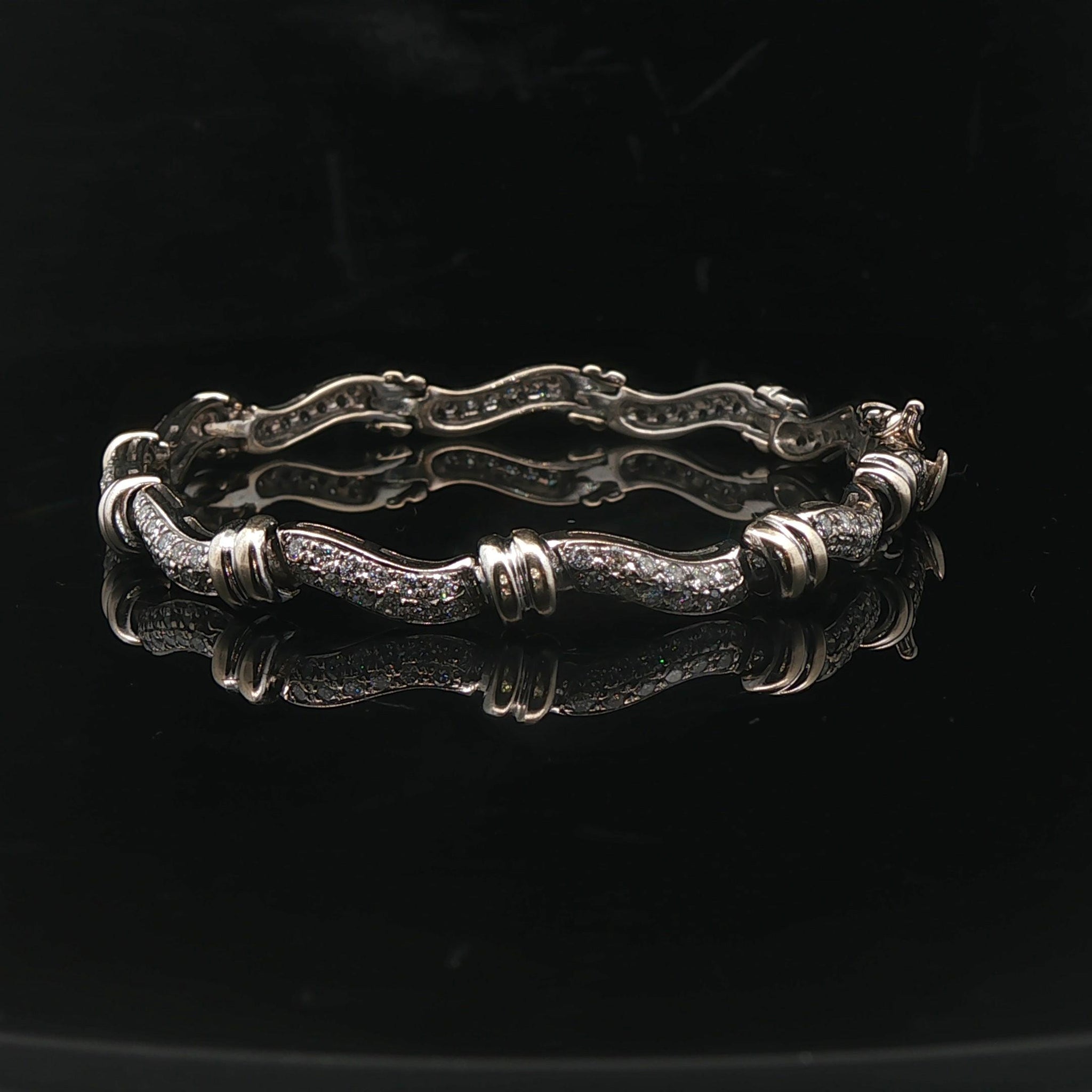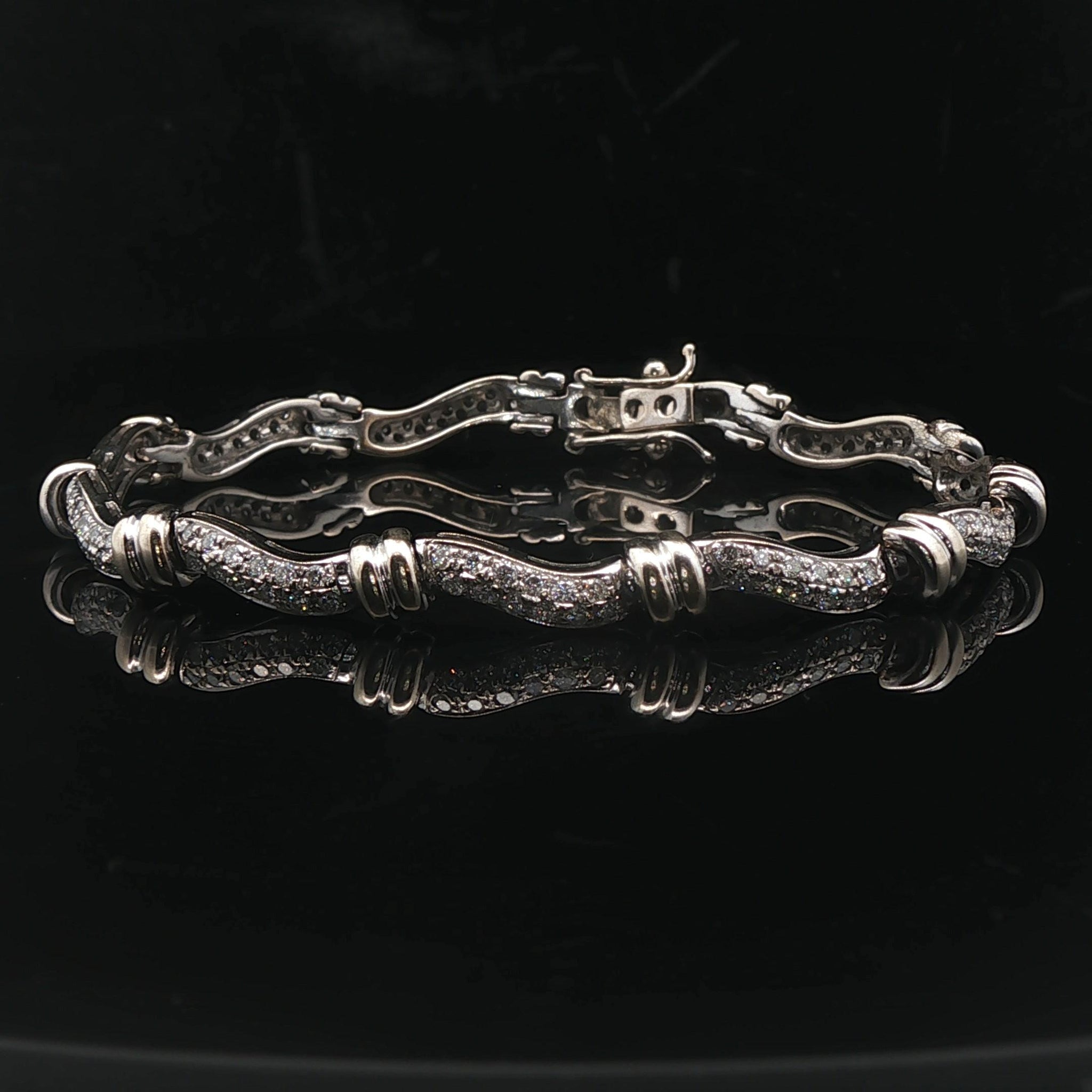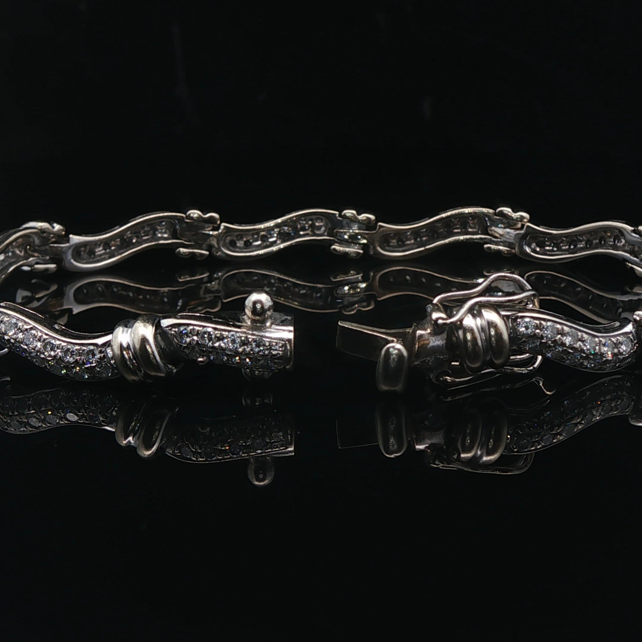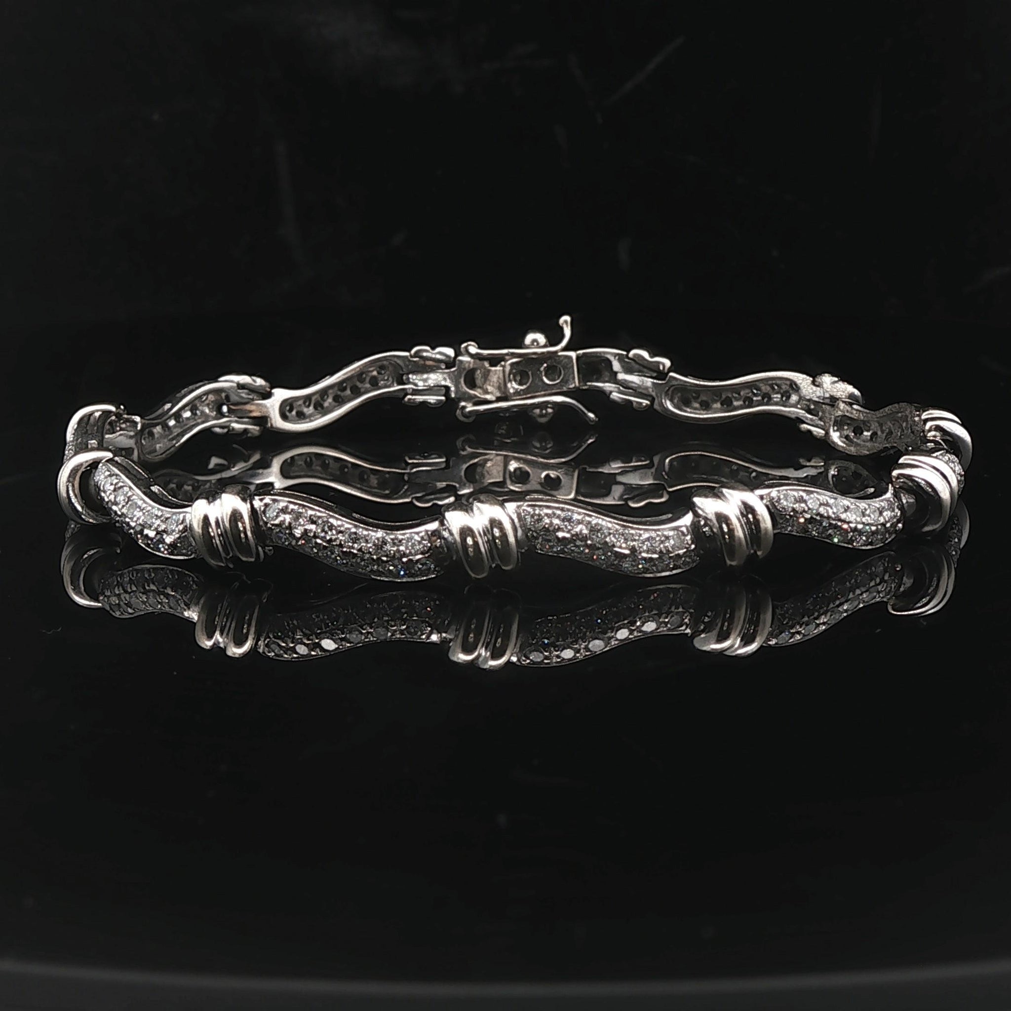 18k White Gold and 1.5cttw Diamond Curved Bar Link Bracelet 7"