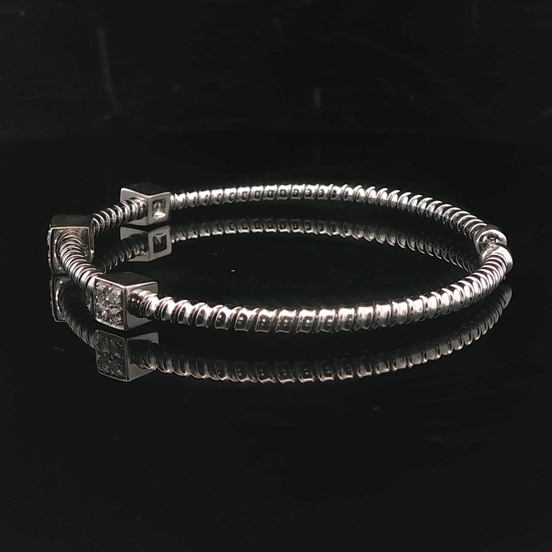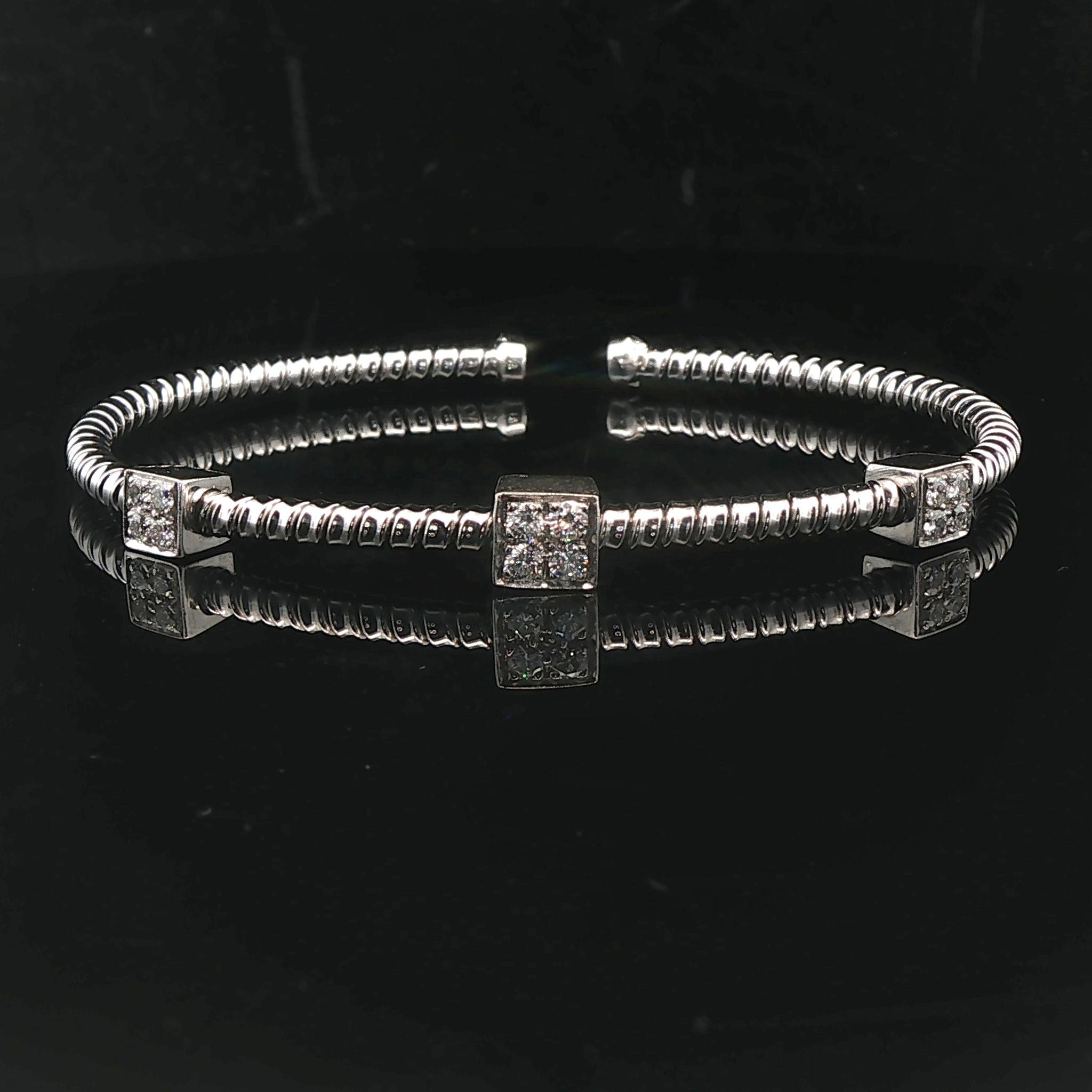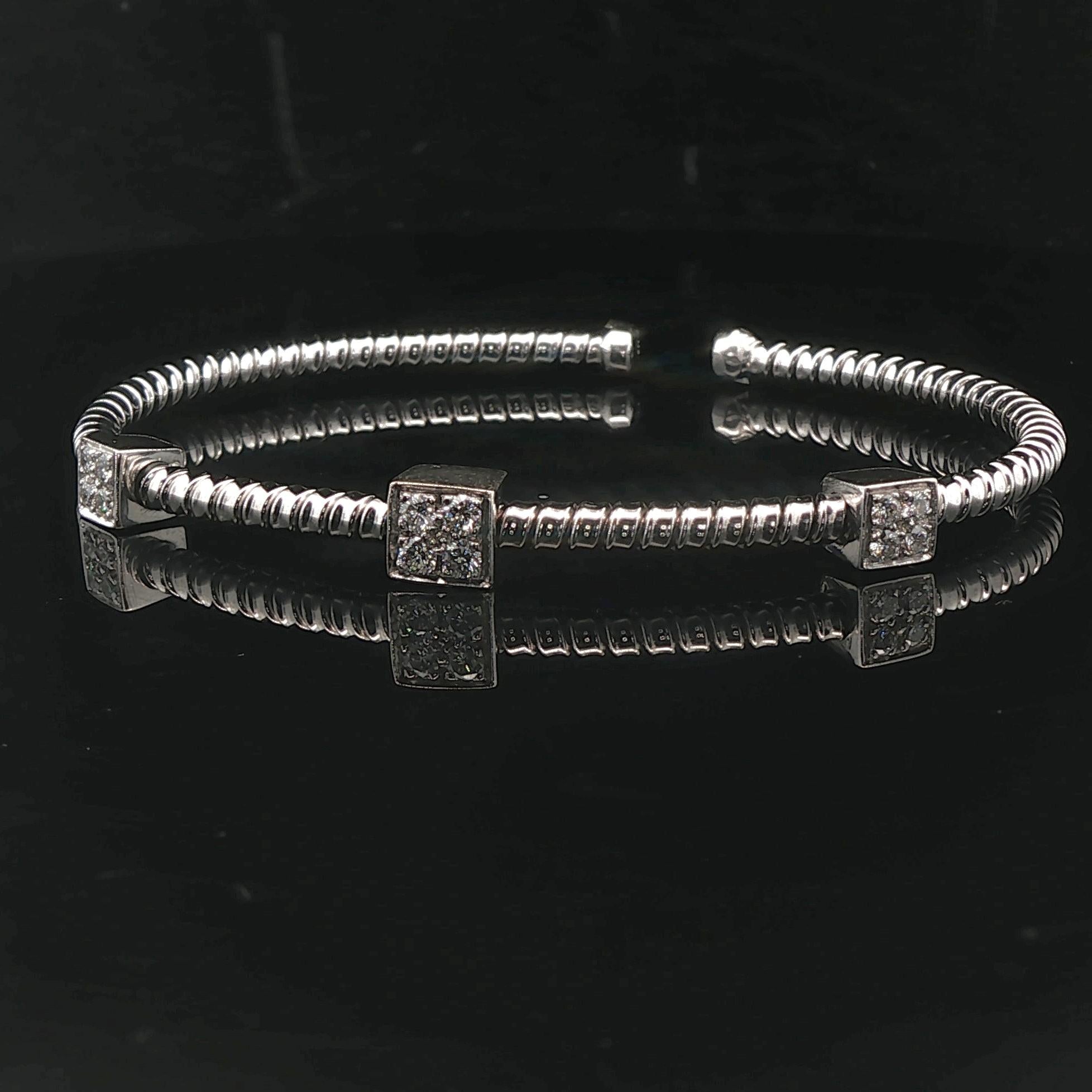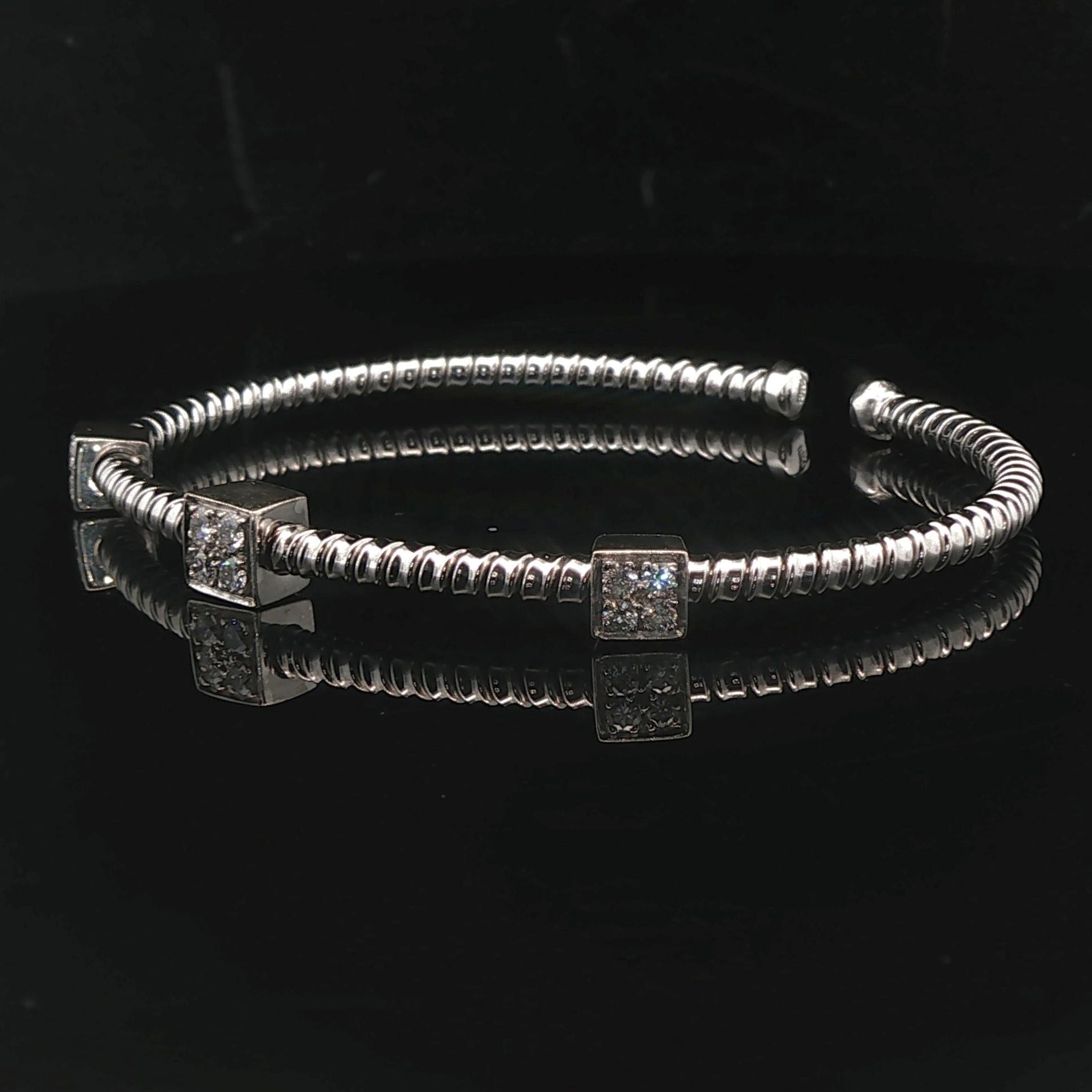 18k White Gold and Diamond Station Flex Cuff Bracelet 6.5"