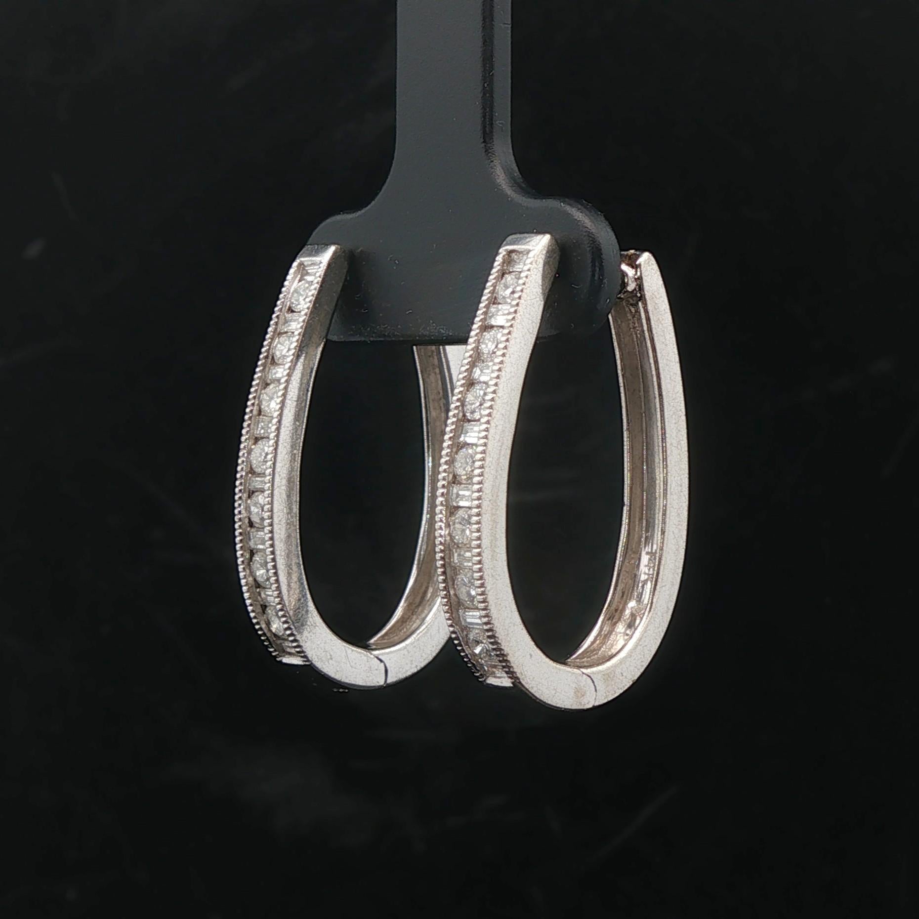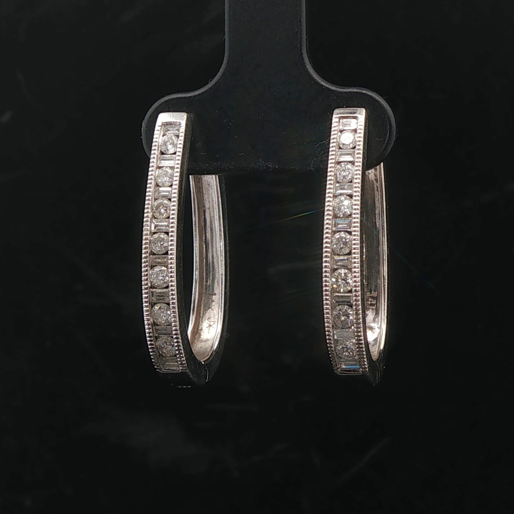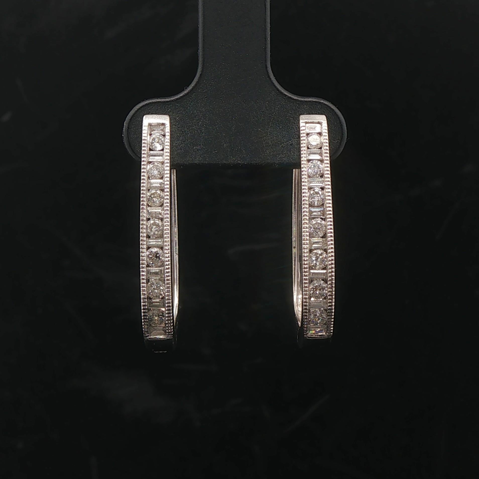 14k White Gold and 0.50cttw Diamond Vintage Milgrain Hoop Earrings 1"