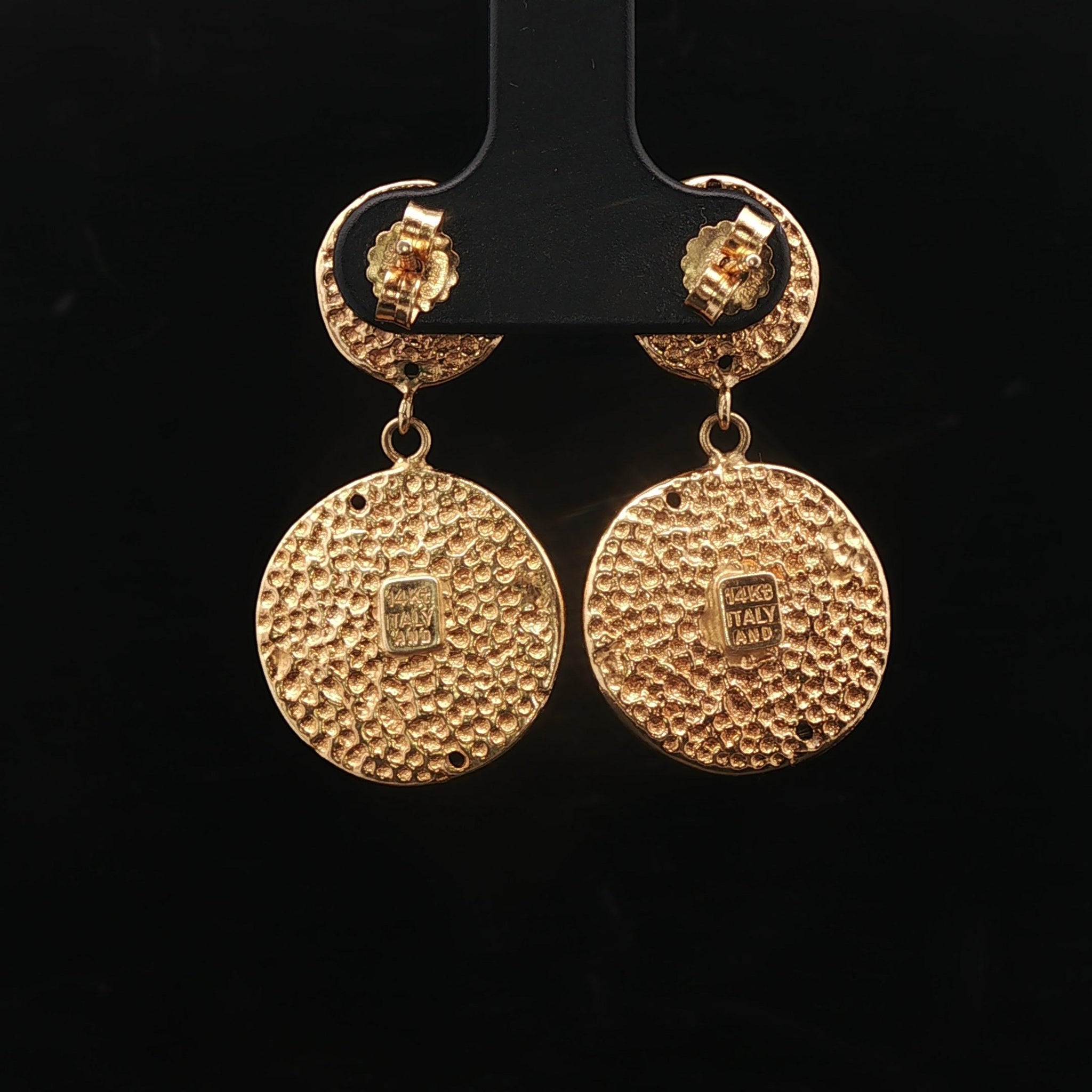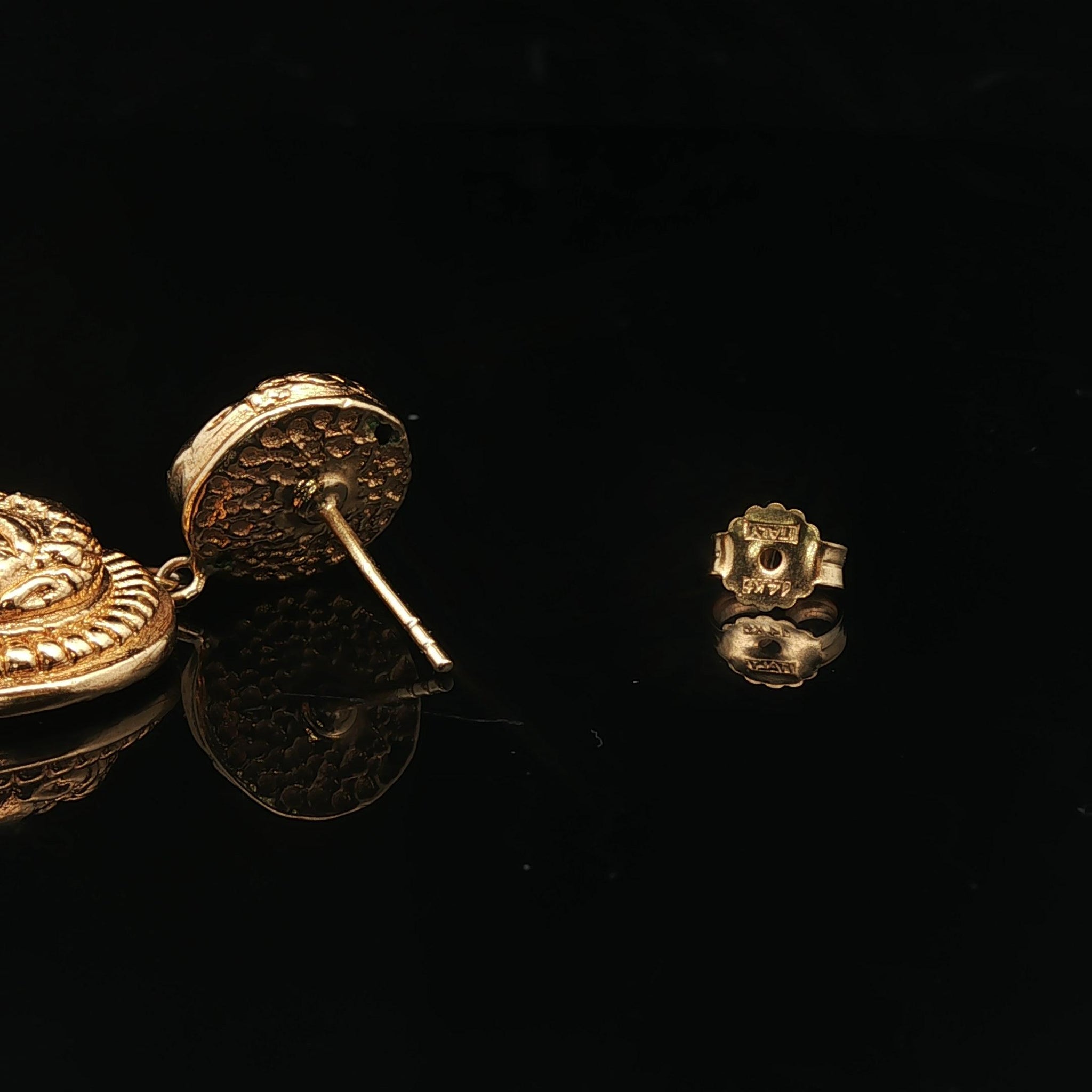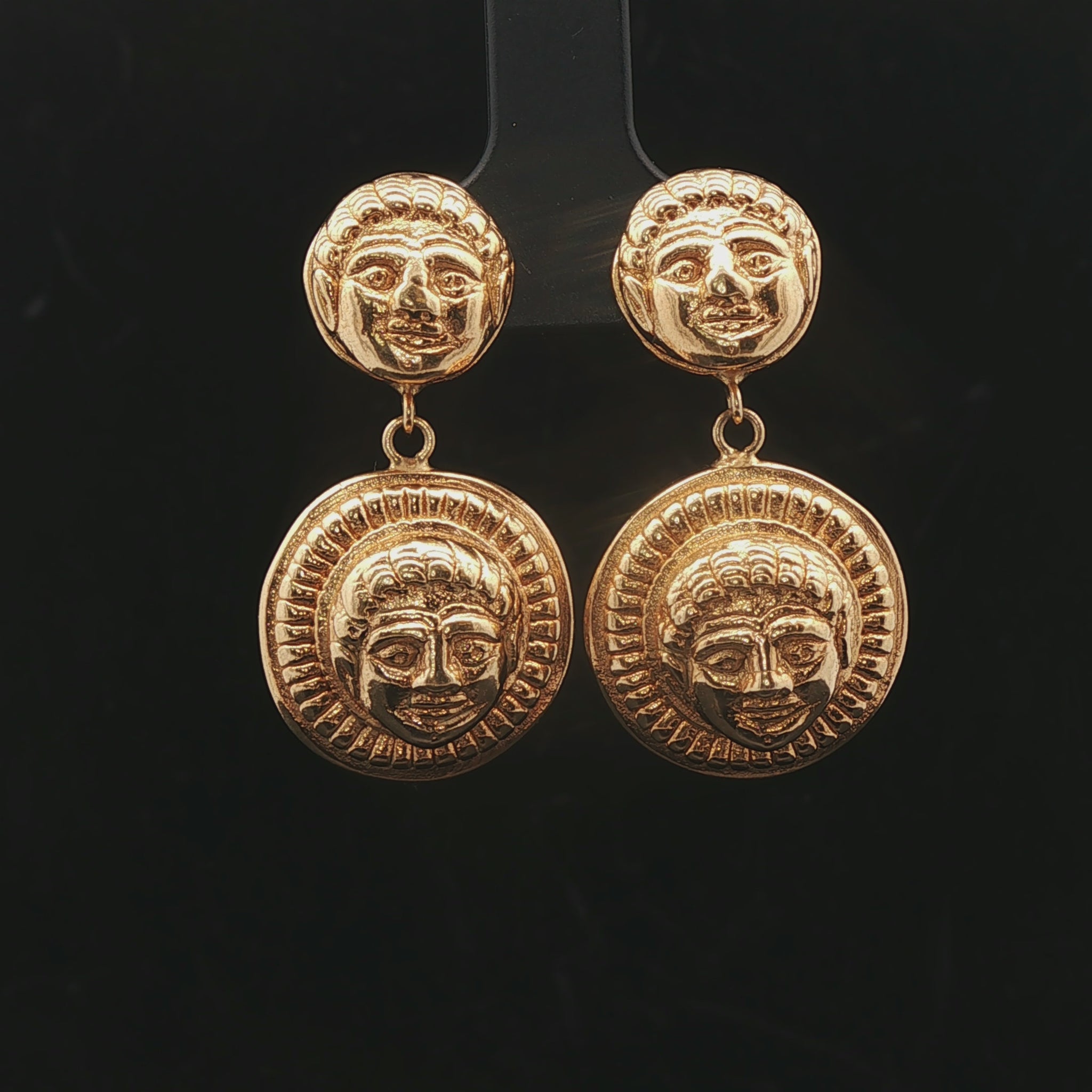 14k Yellow Gold 6.7g Ladies Face Motif Dangle Drop Earrings Italy 1.25"