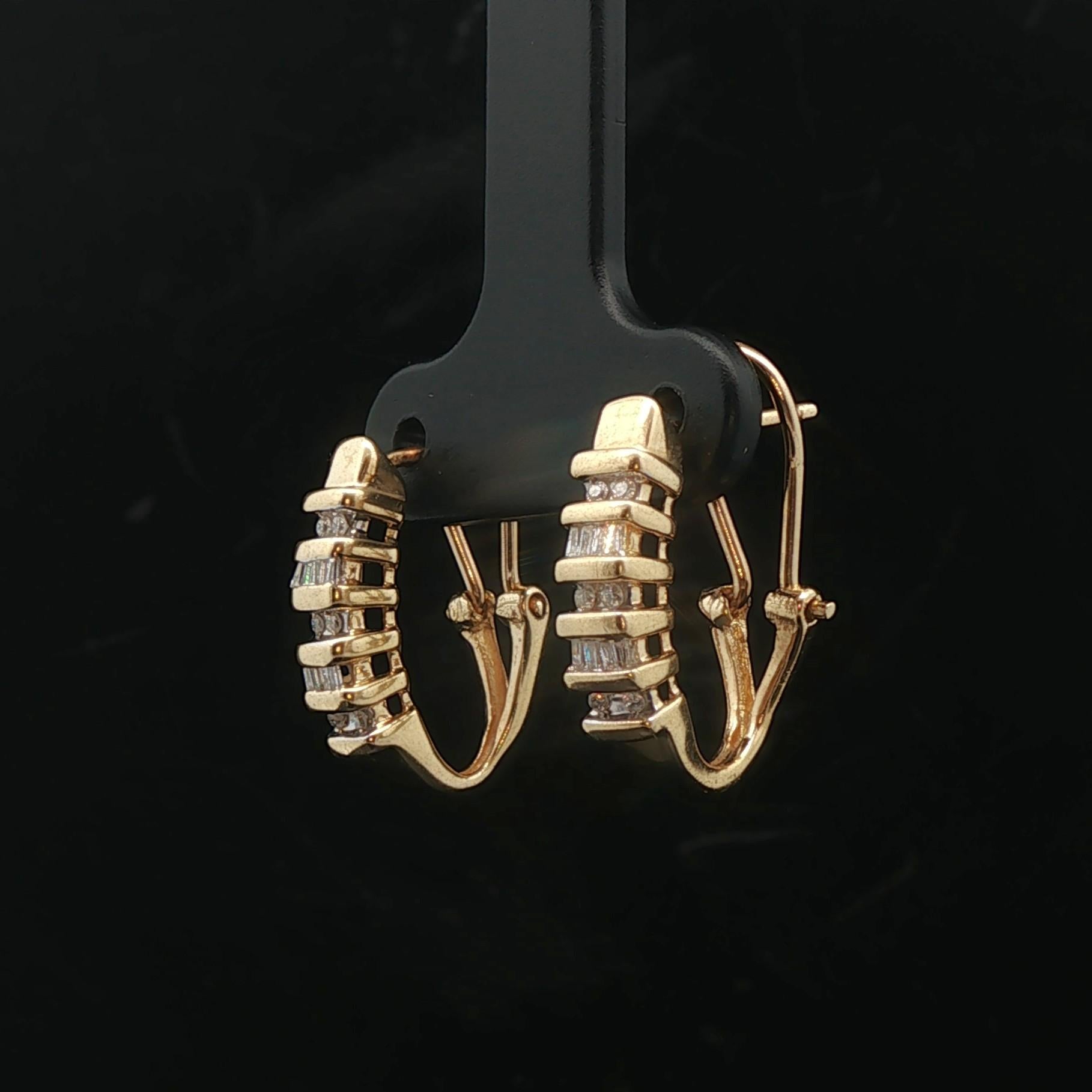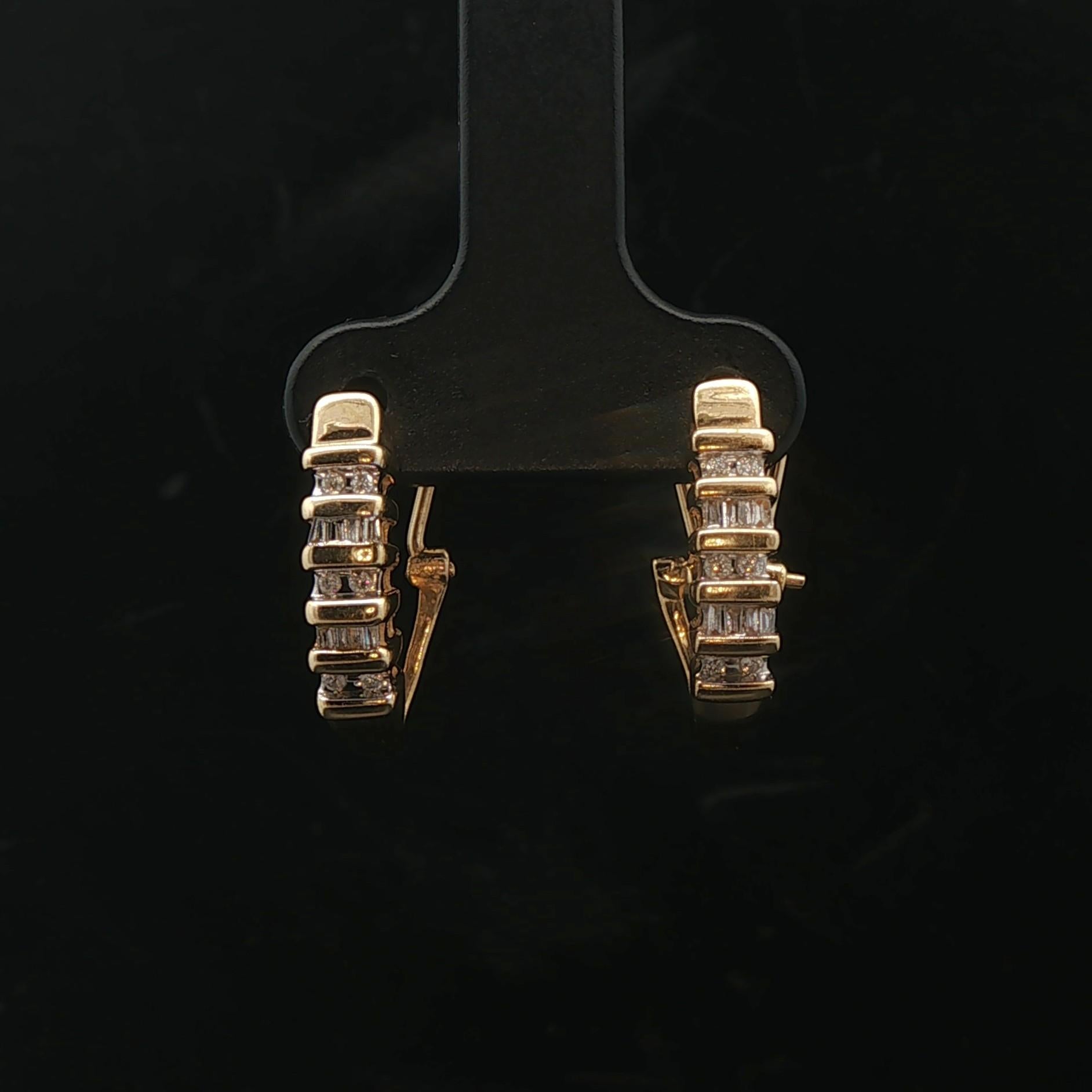14k Yellow Gold and 0.25cttw Round and Baguette Diamond Huggie Earrings