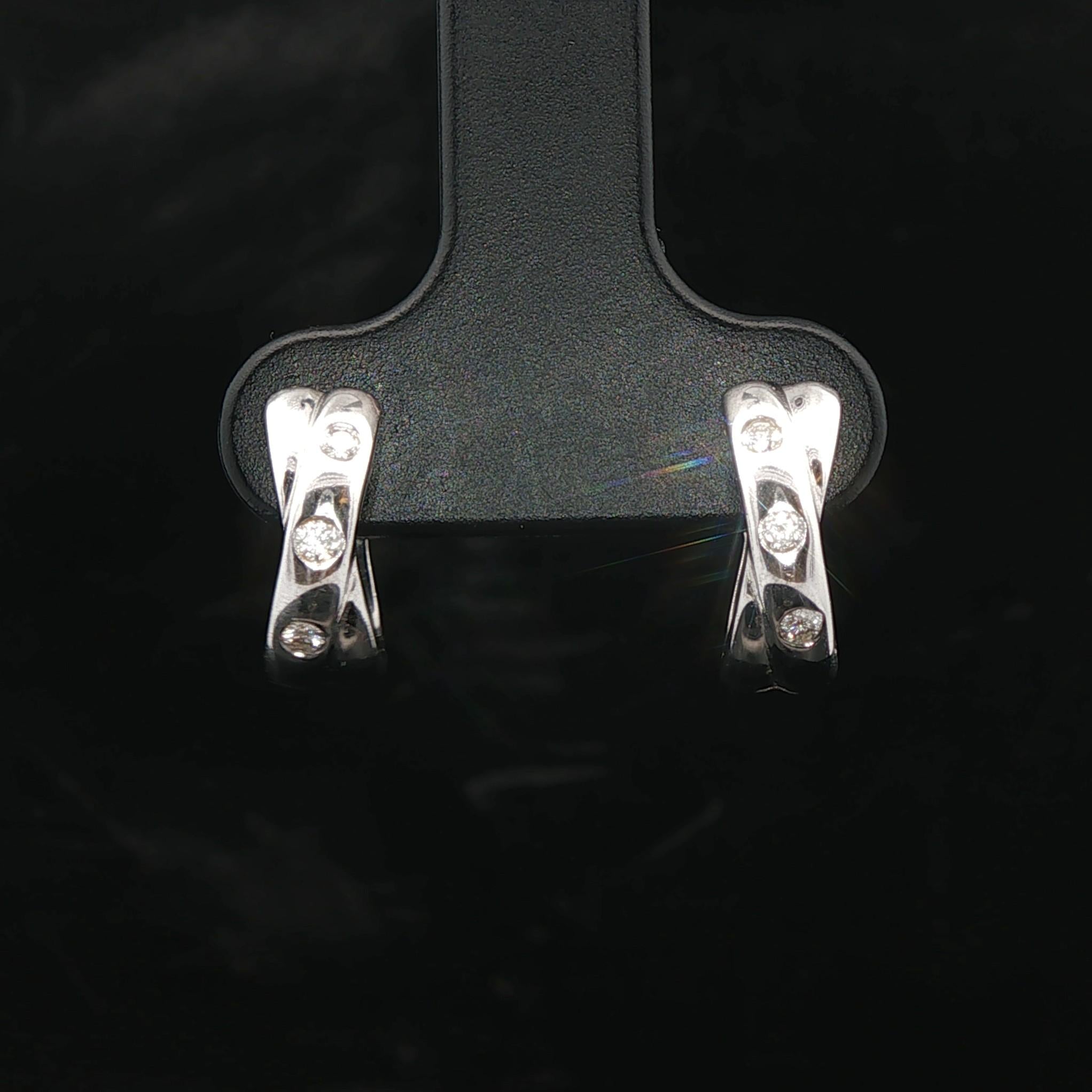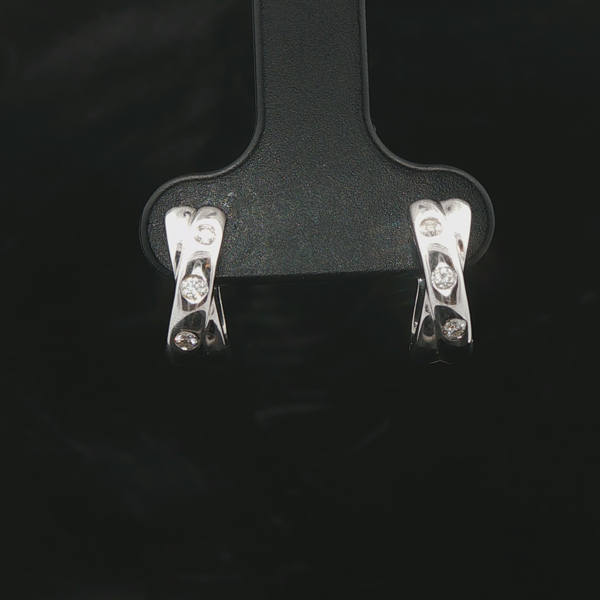 18k White Gold and Diamond Small Sold Crossover Huggie Earrings 0.50"