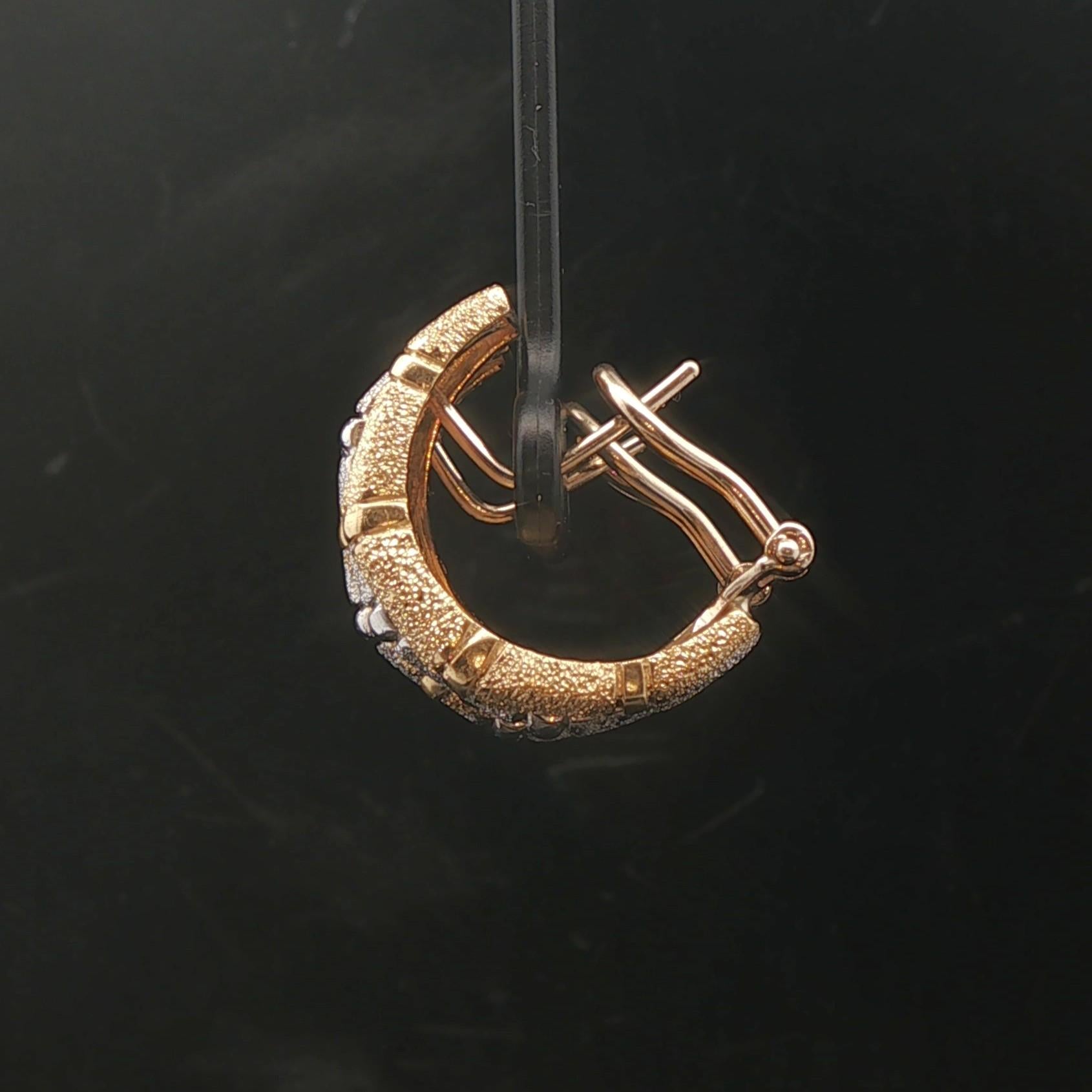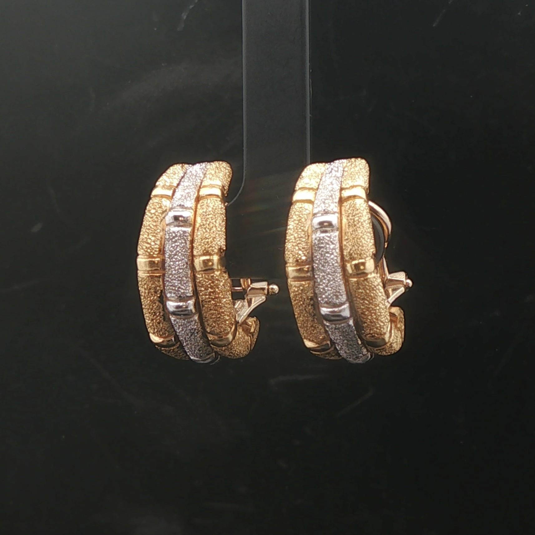 18k Yellow and White Gold 16g Solid Heavy Sparkling Huggie Earrings