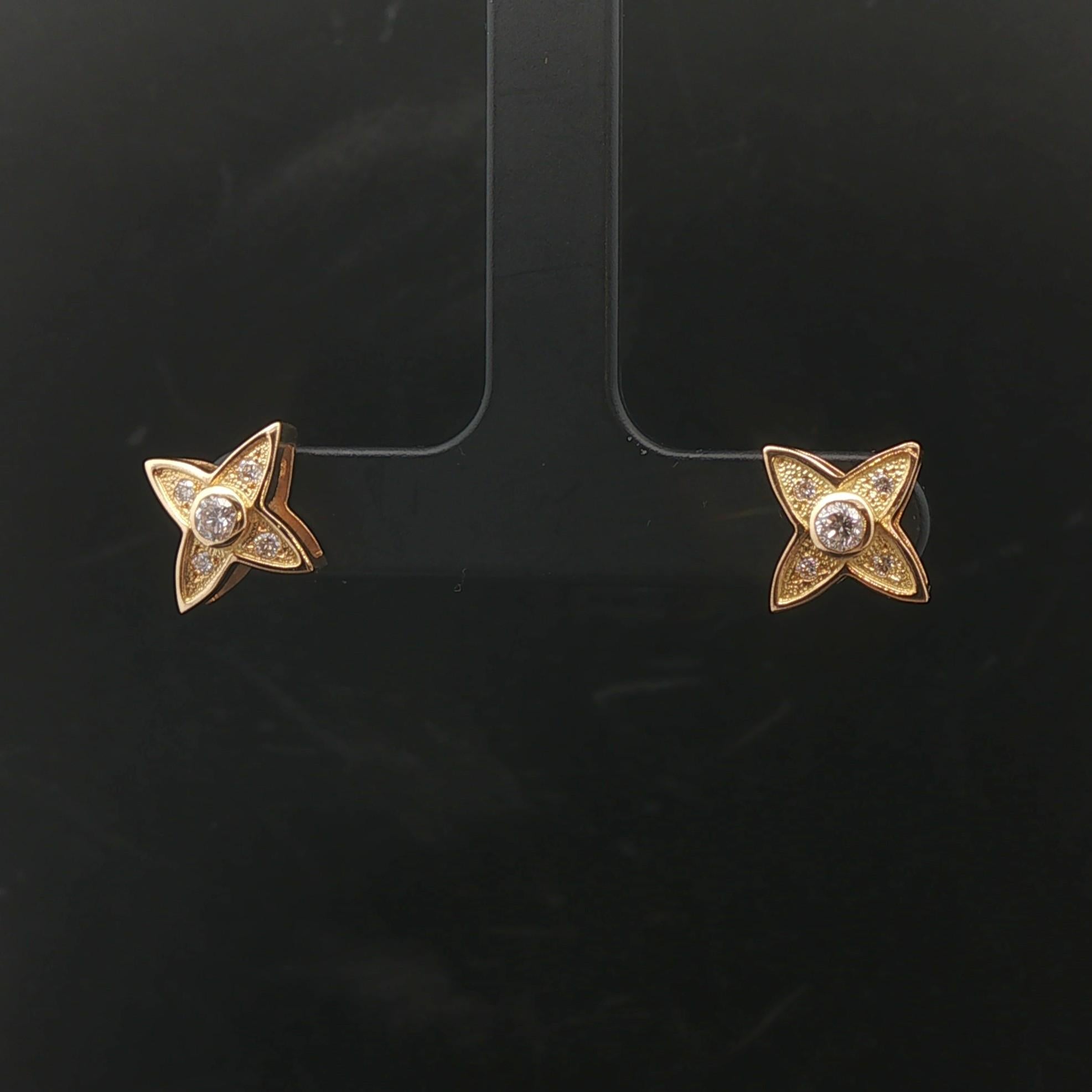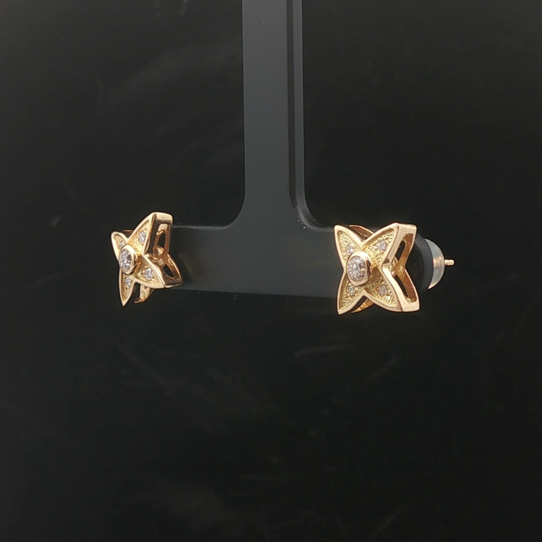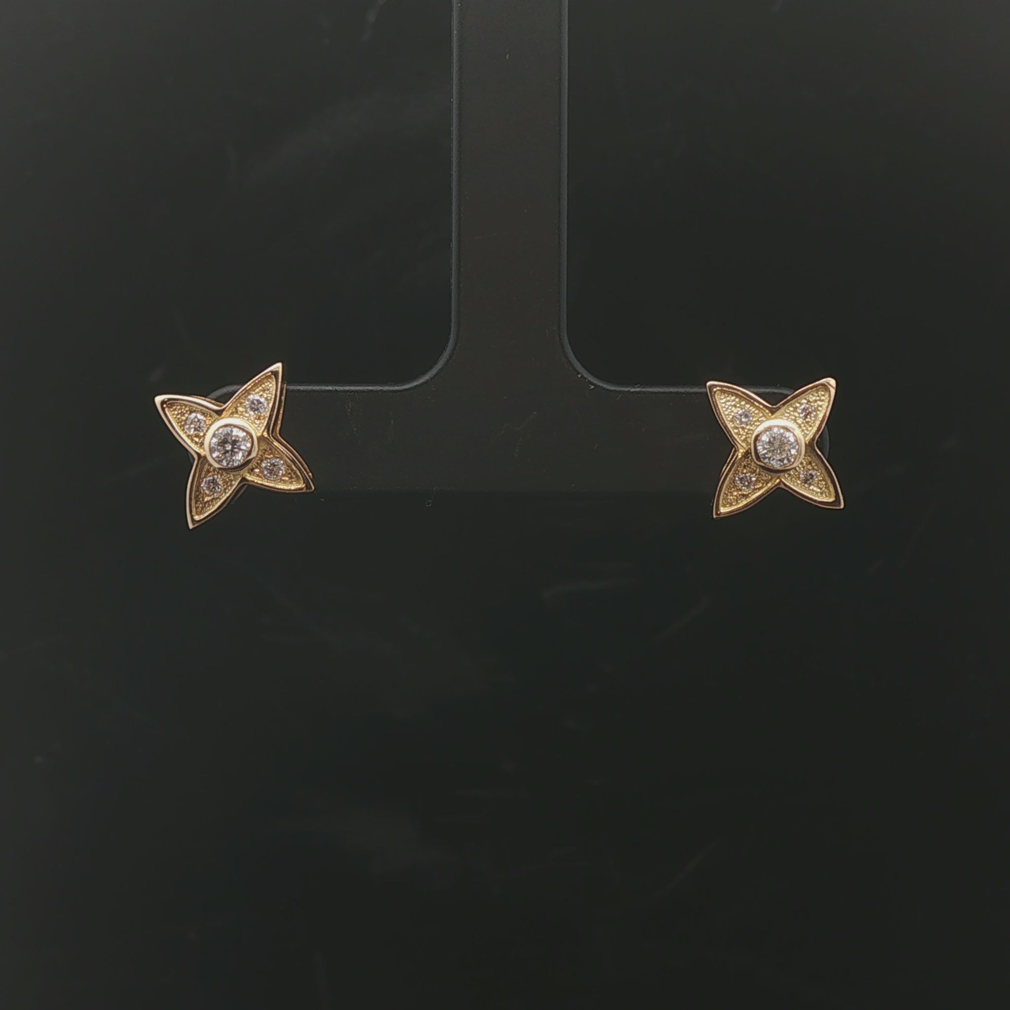 18k Yellow Gold and 0.30cttw Diamond Star Stud Earrings