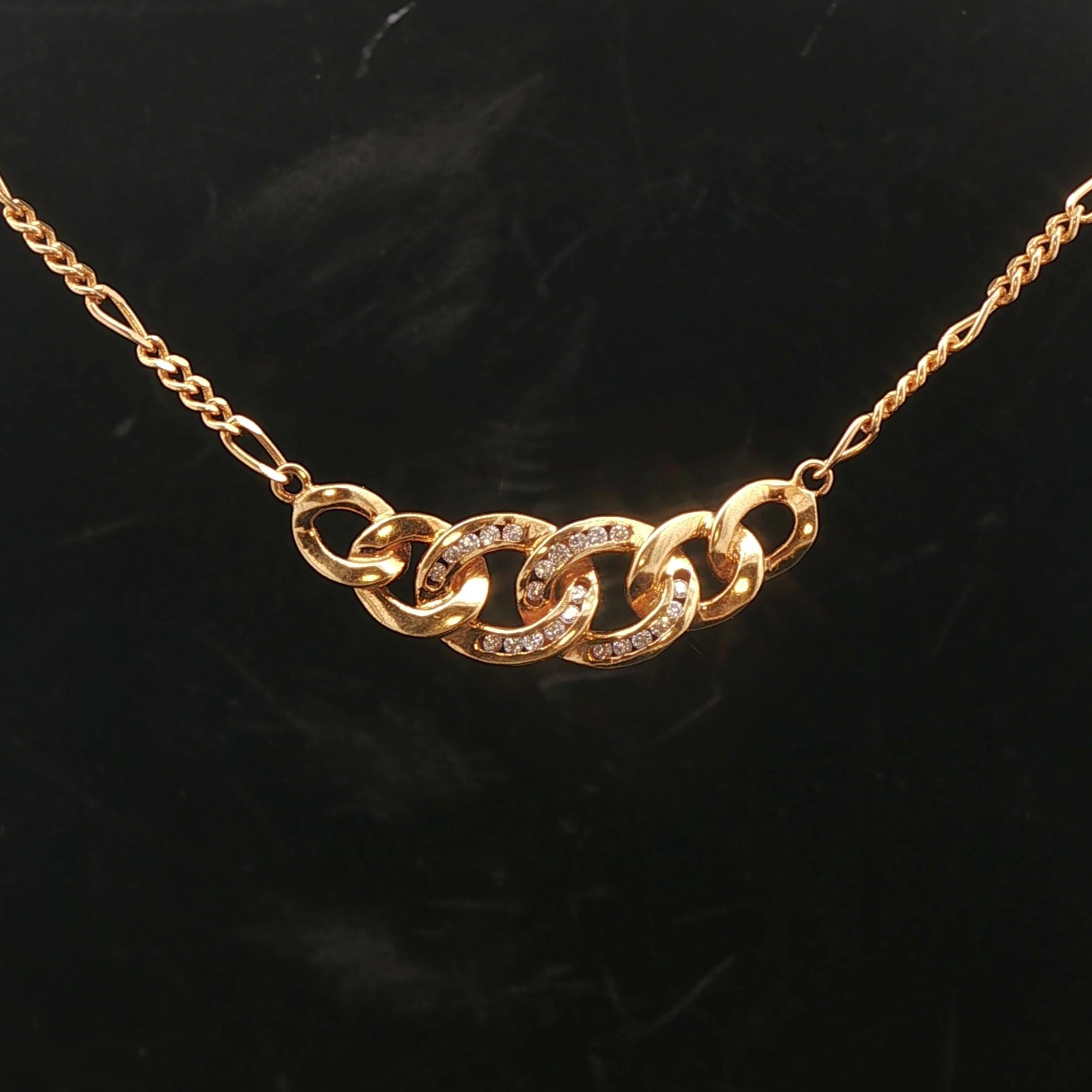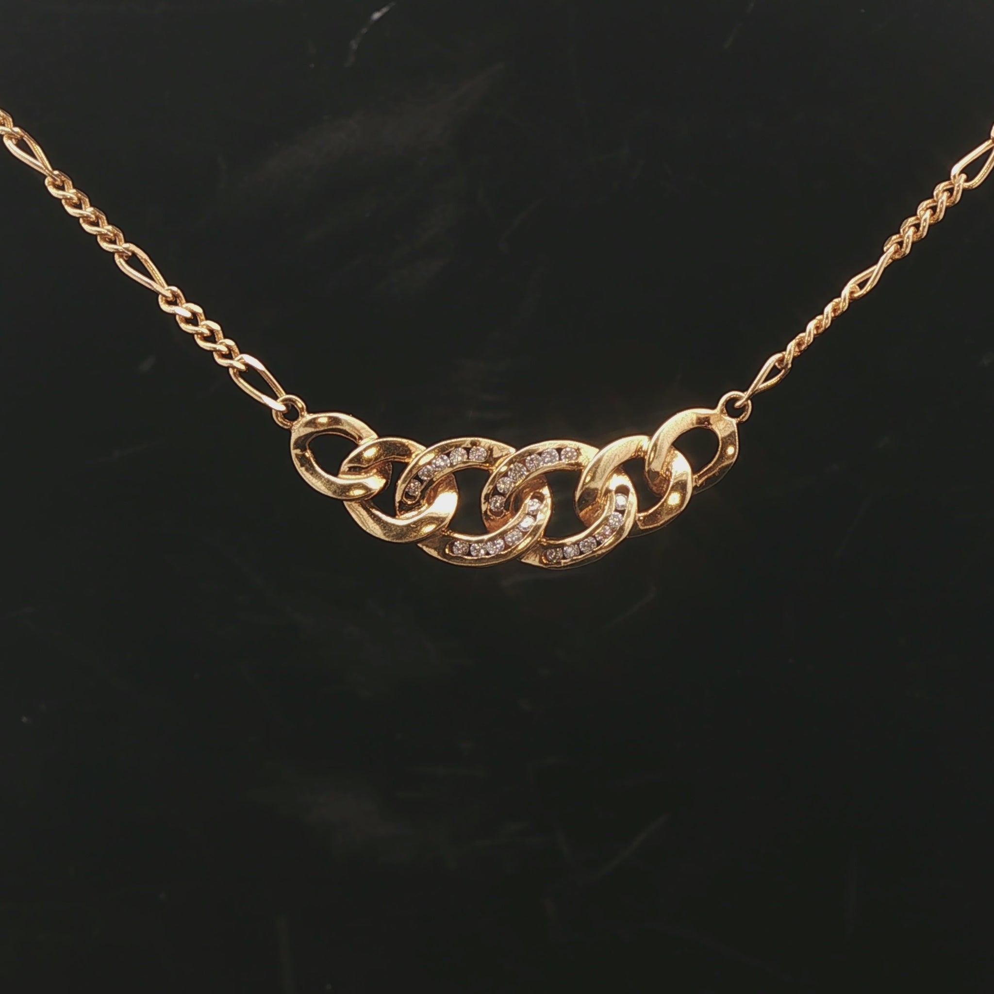 18k Yellow Gold and Diamond Figaro Chain and Curb Link Pendant Necklace 16"