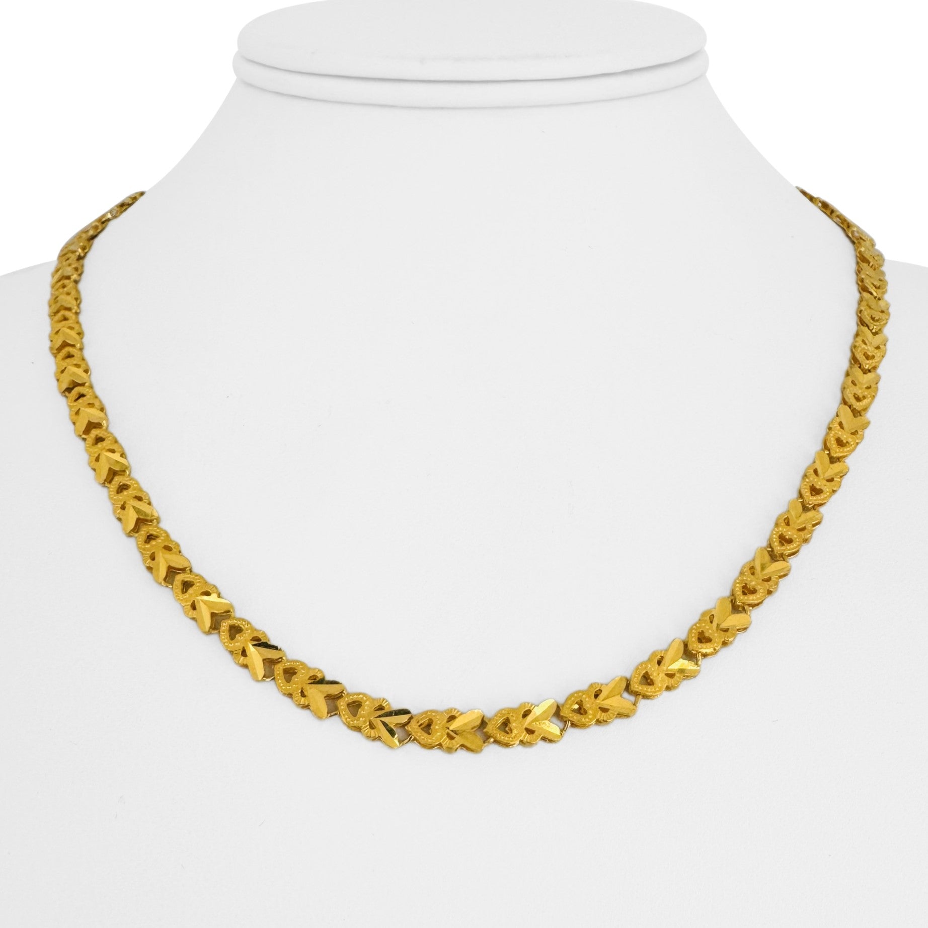 24k Pure Yellow Gold 23.6g Solid Diamond Cut Fancy Heart Link Necklace 18"