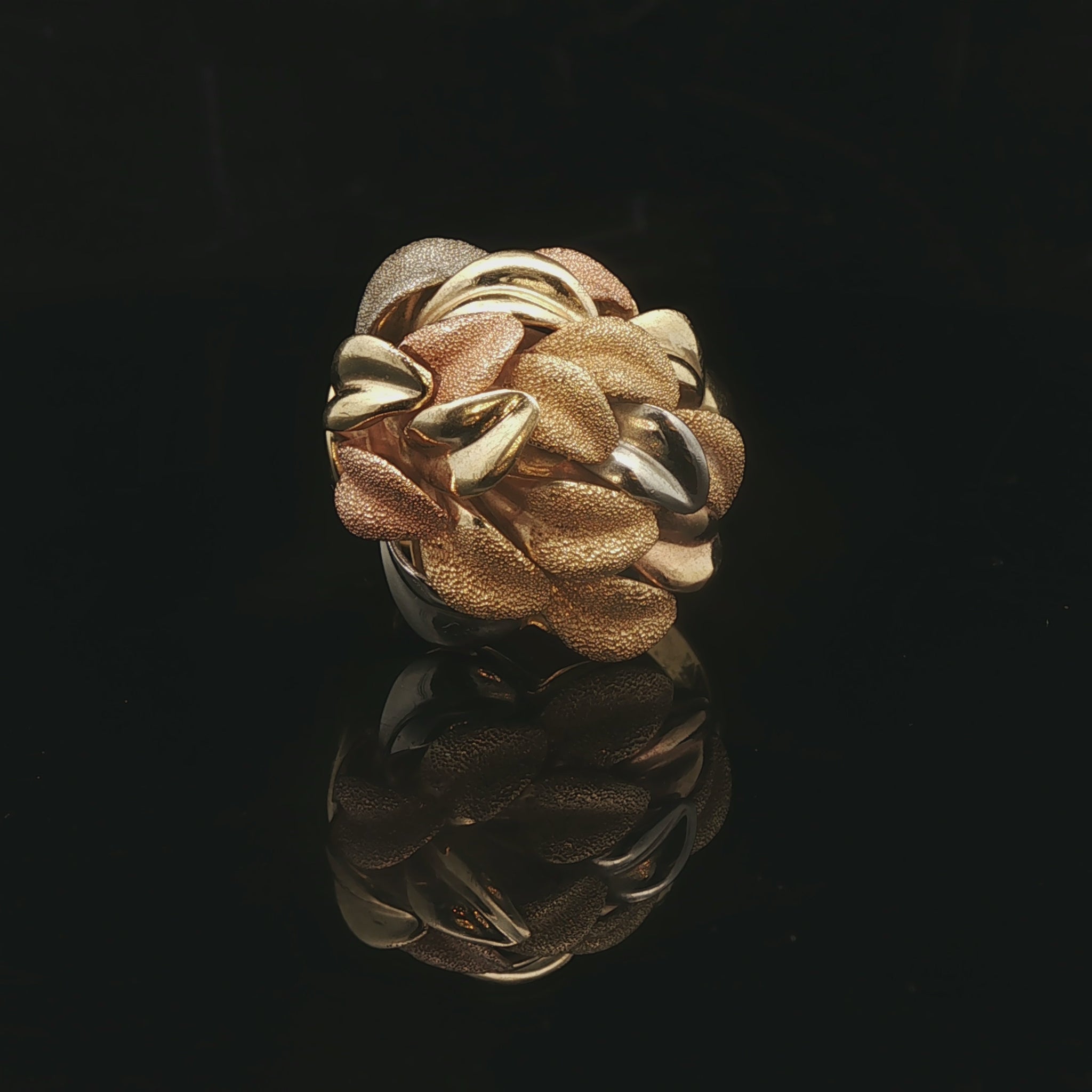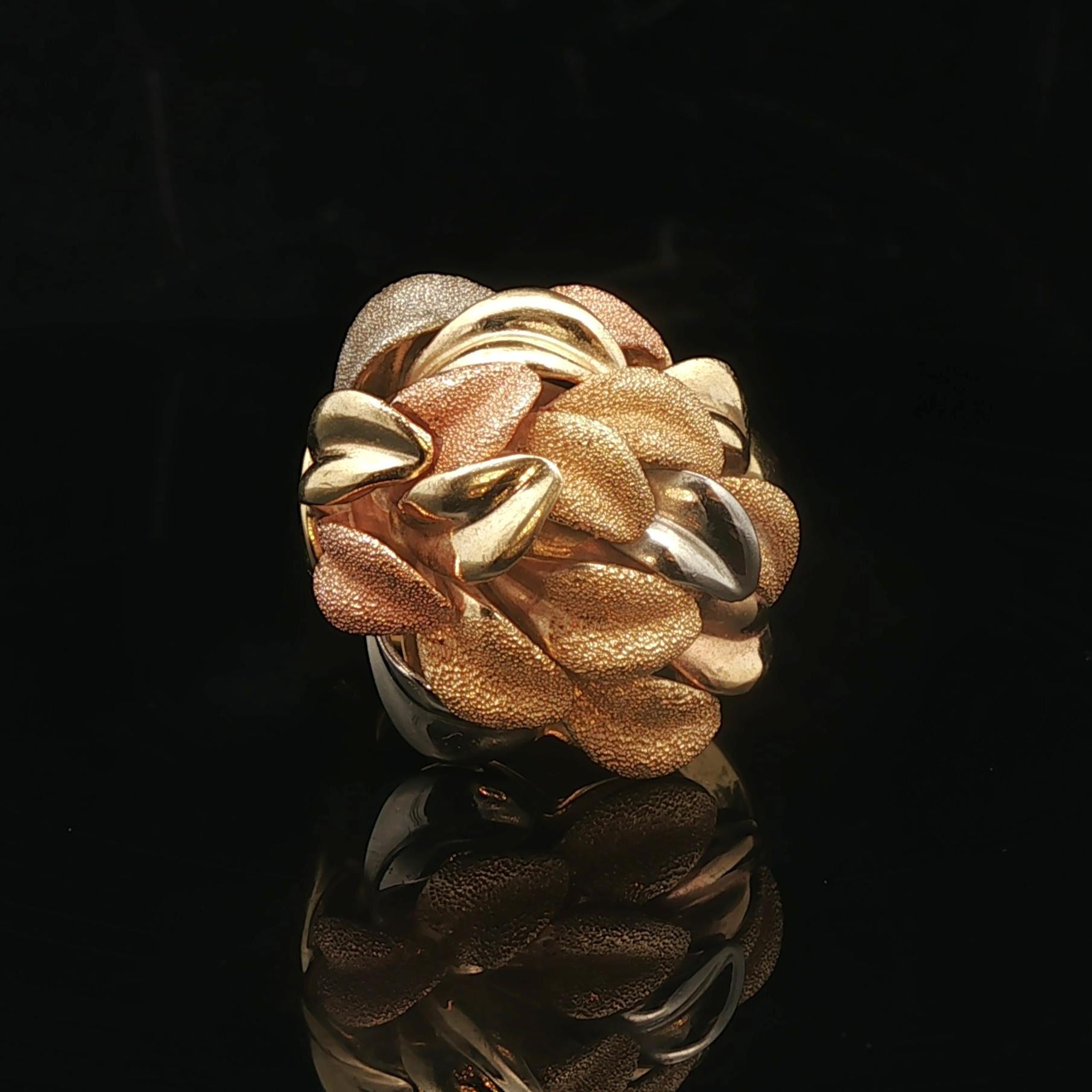 18k Yellow White and Rose Gold 11.3g Solid Large Floral Ring Italy Size 7