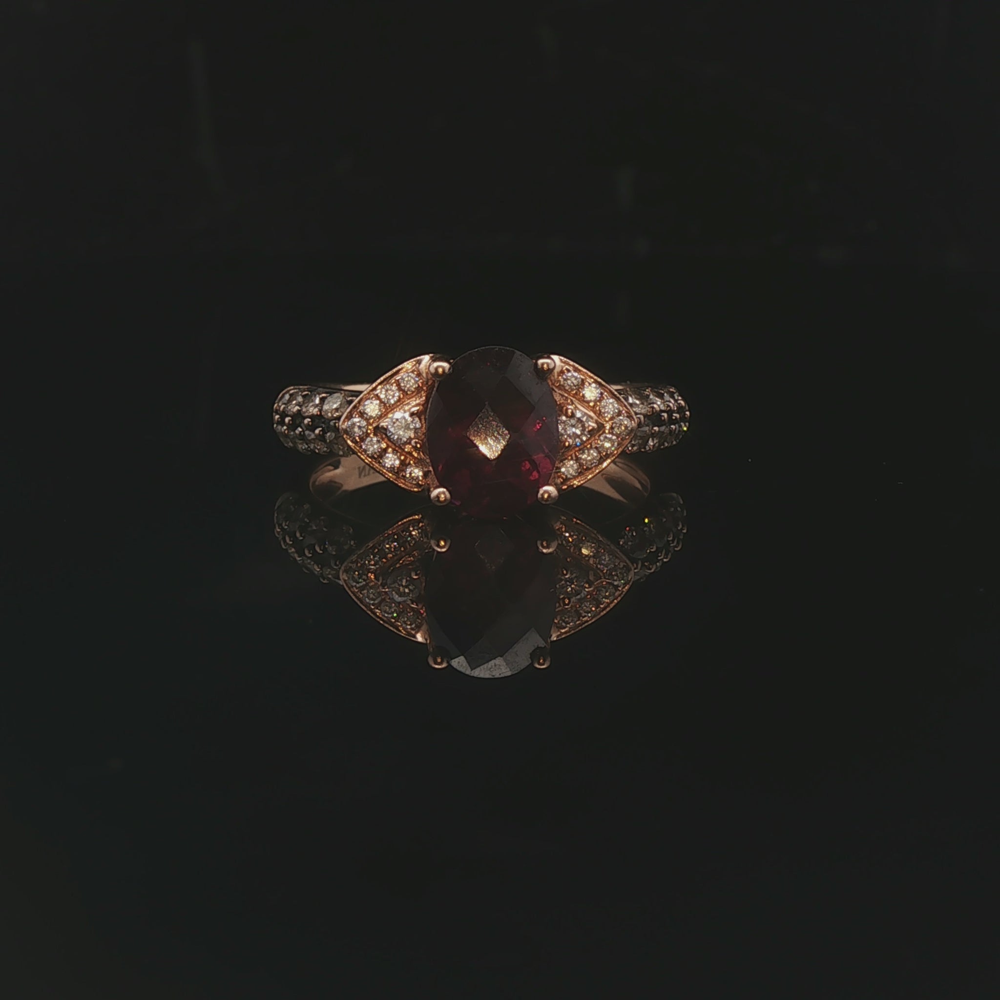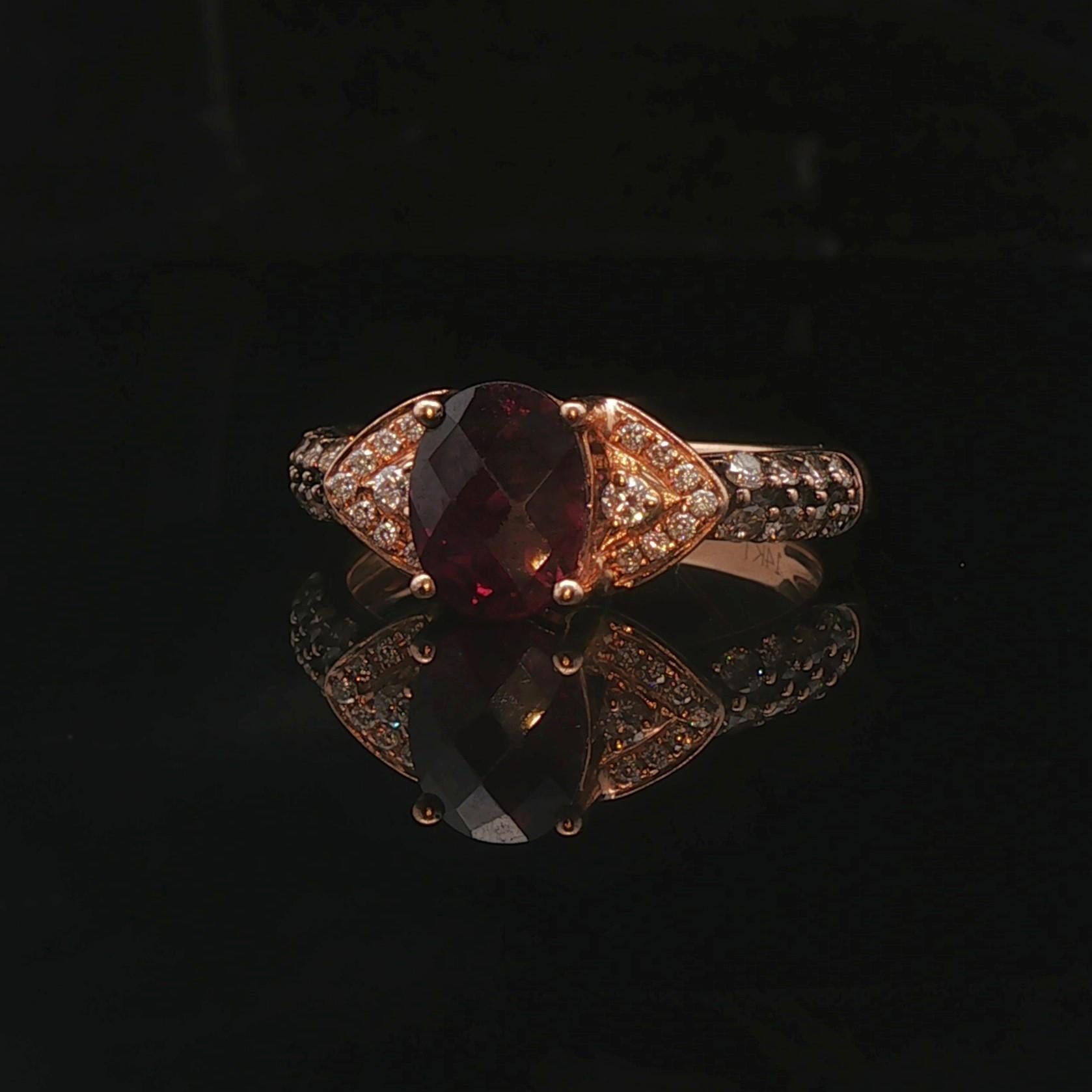 LeVian 14k Rose Gold 1ct Oval Cut Rhodolite and Diamond Ring Size 6.75