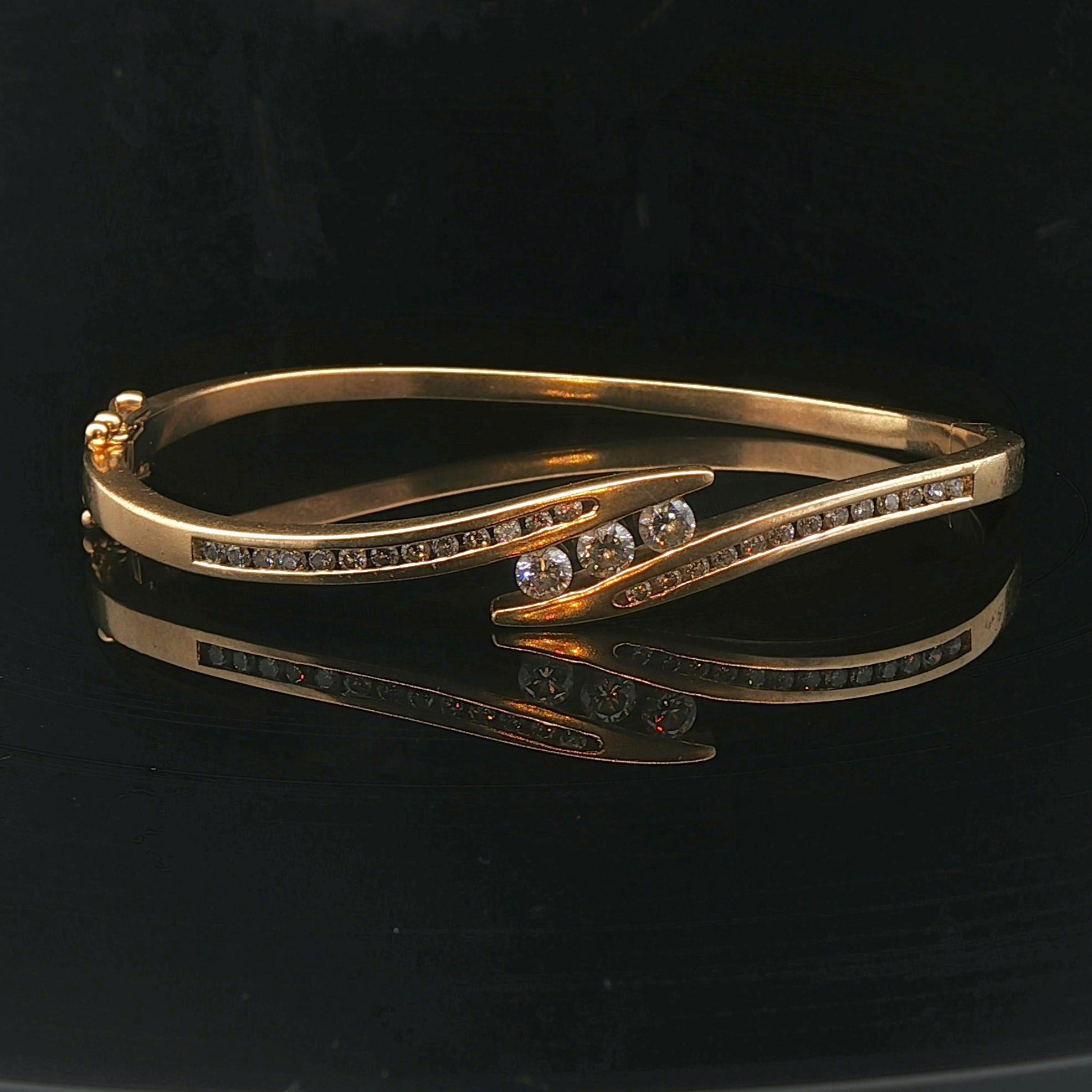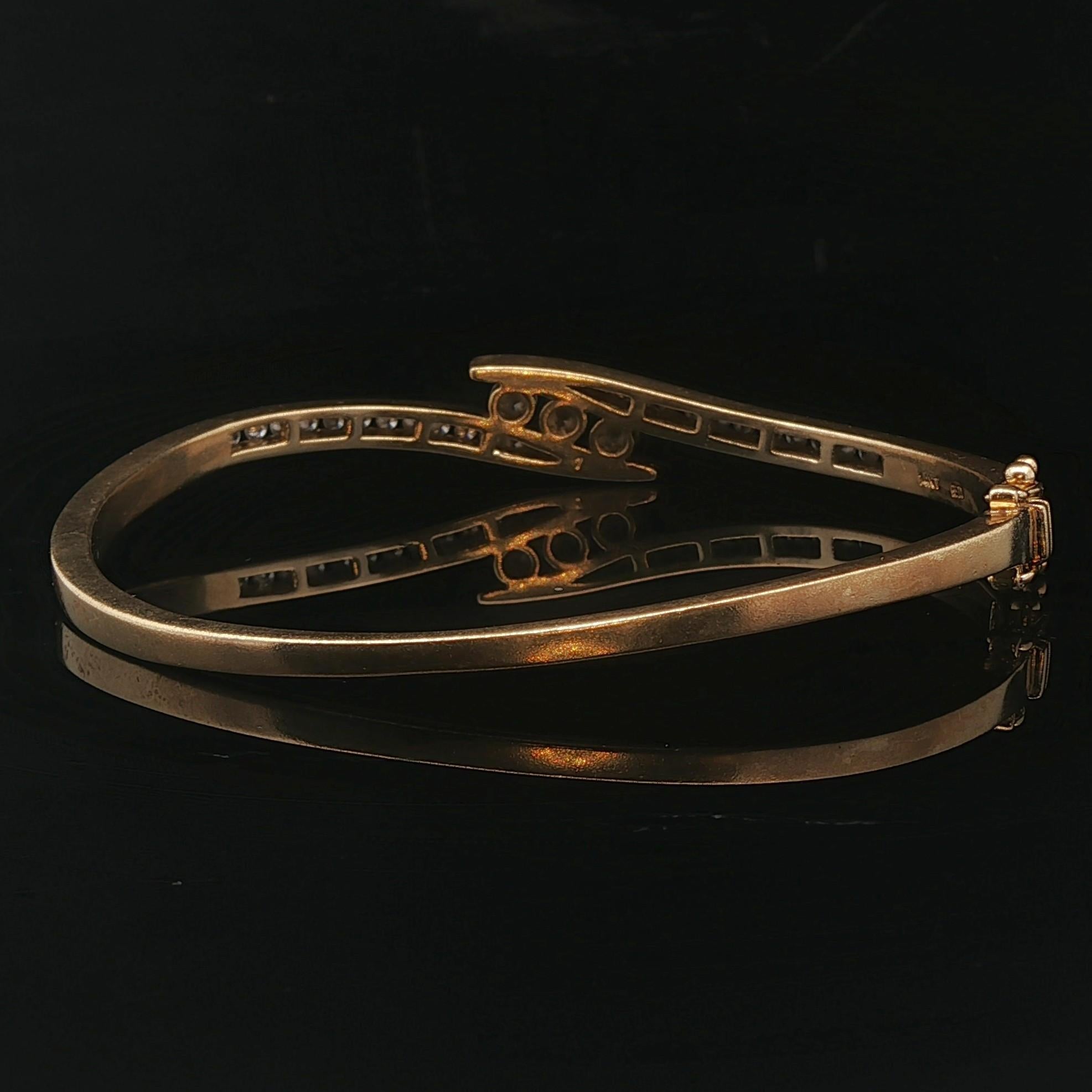14k Yellow Gold 16.7g and 1cttw Diamond Vintage Bypass Bangle Bracelet 6.75"