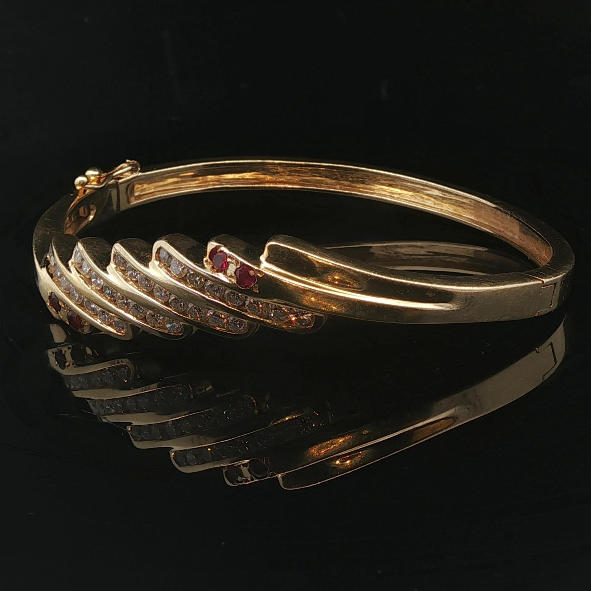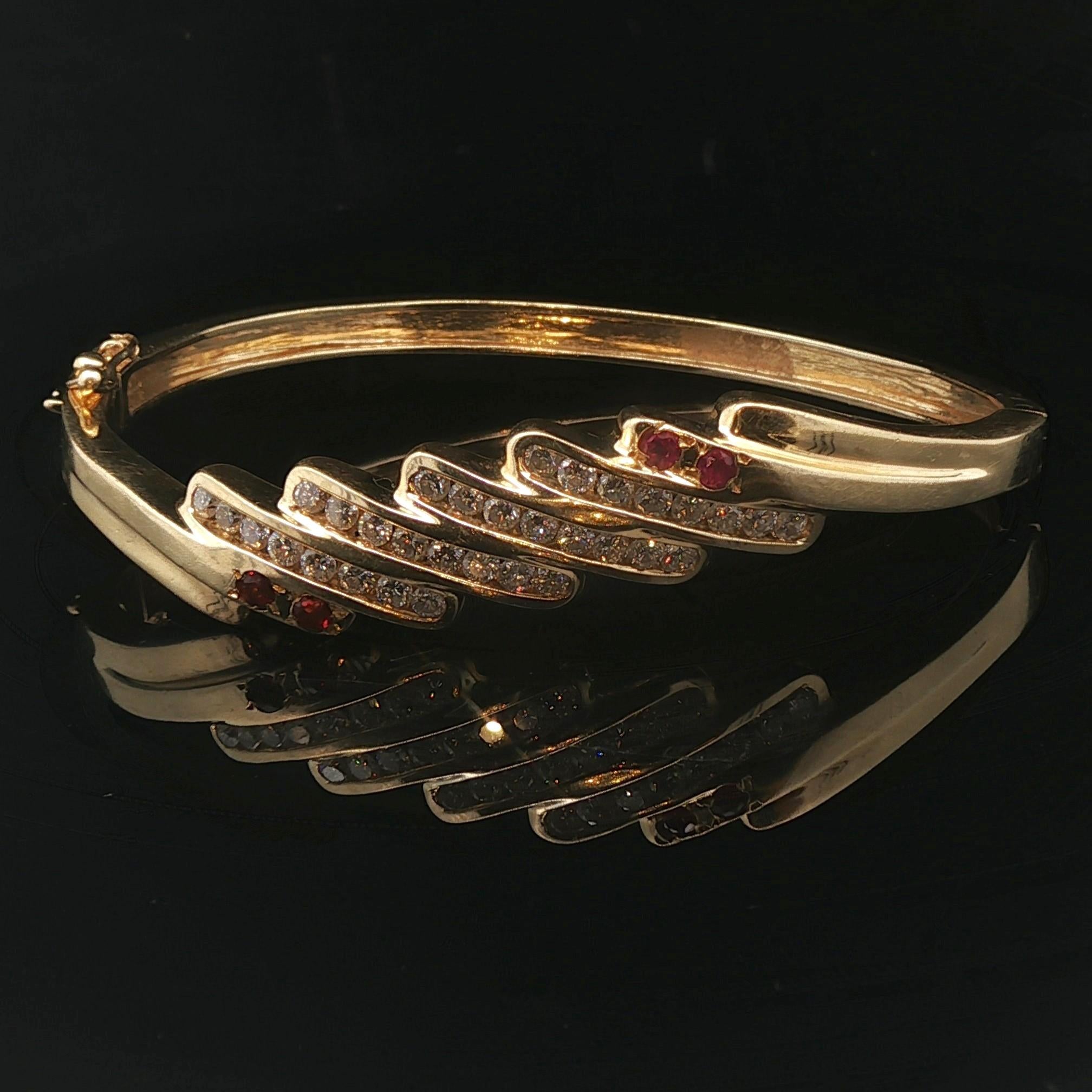 14k Yellow Gold 22g Ruby and 1cttw Diamond Fancy Bangle Bracelet 7"