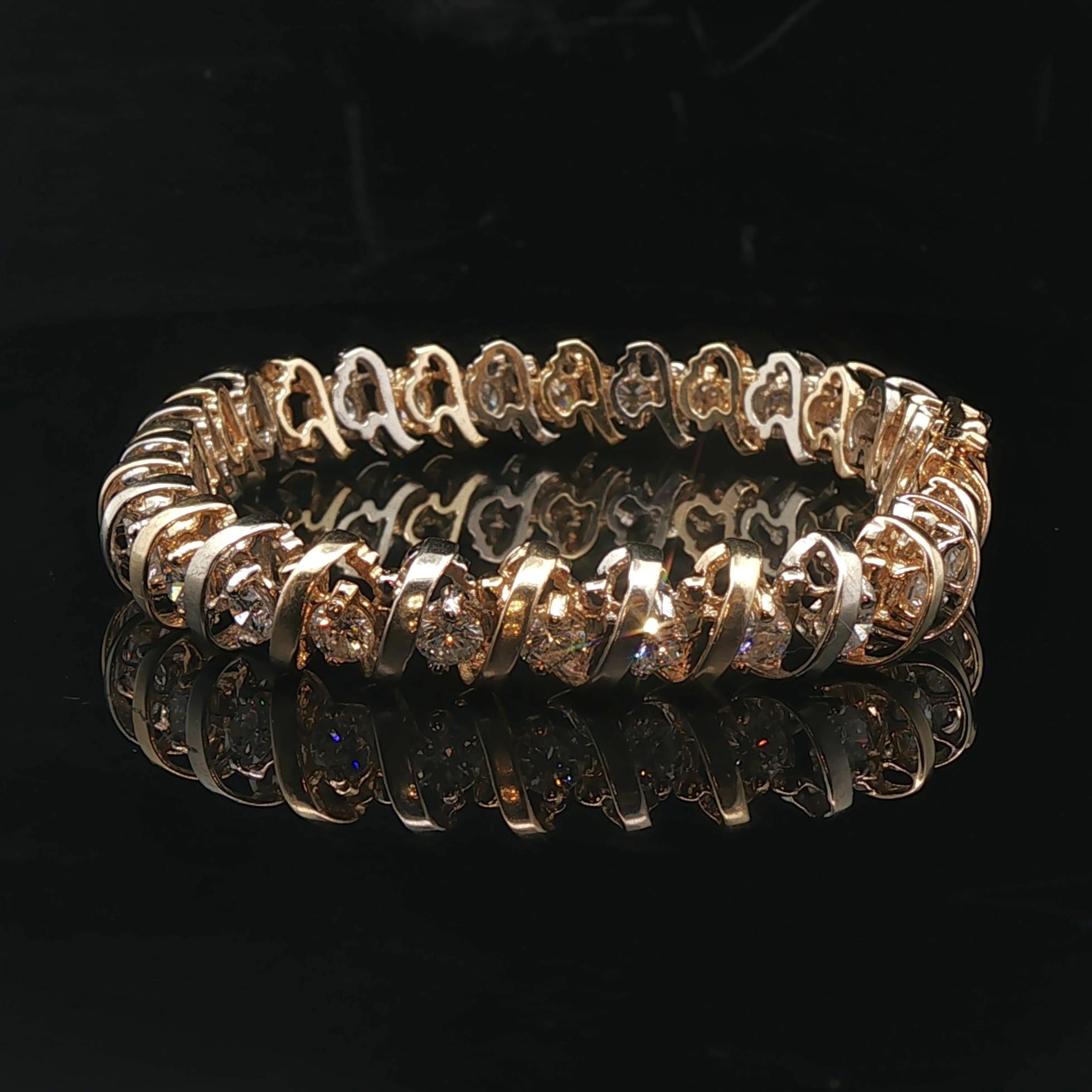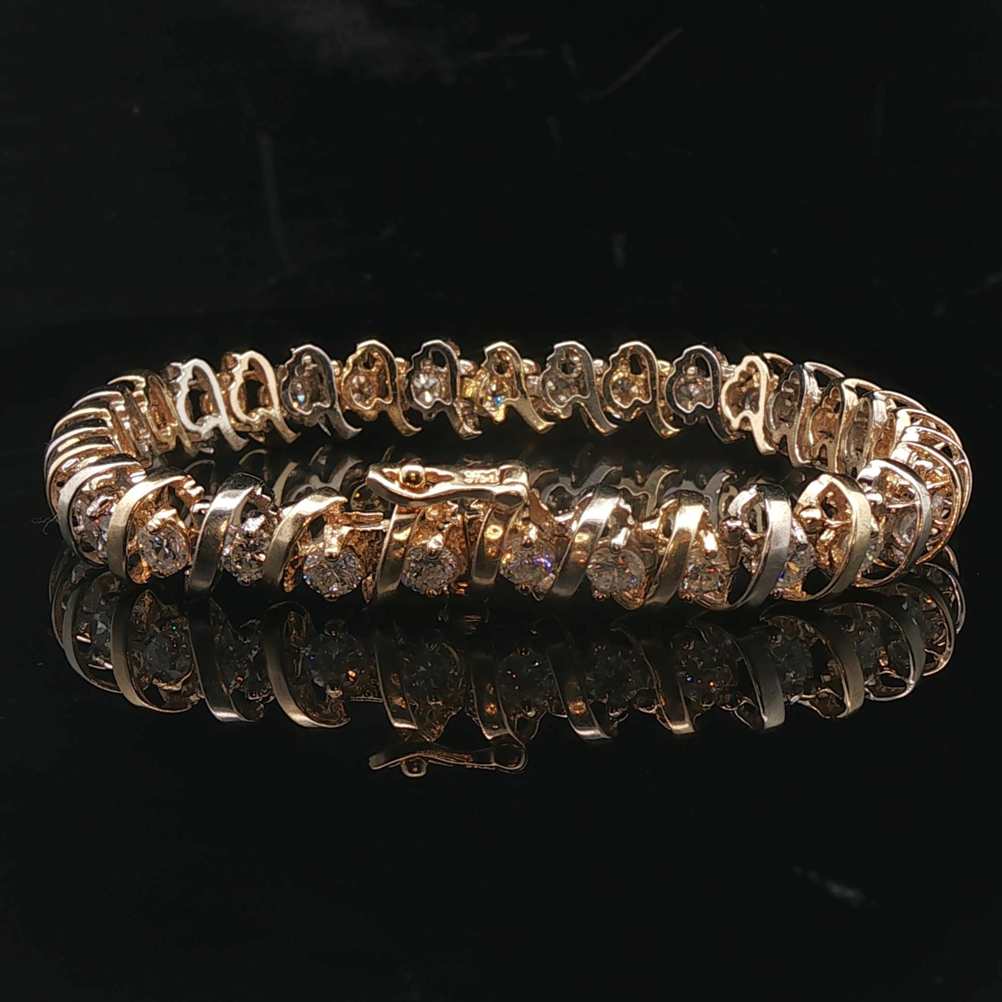 14k Yellow Gold and White Gold 5.5cttw Heavy Vintage Tennis Bracelet 7"