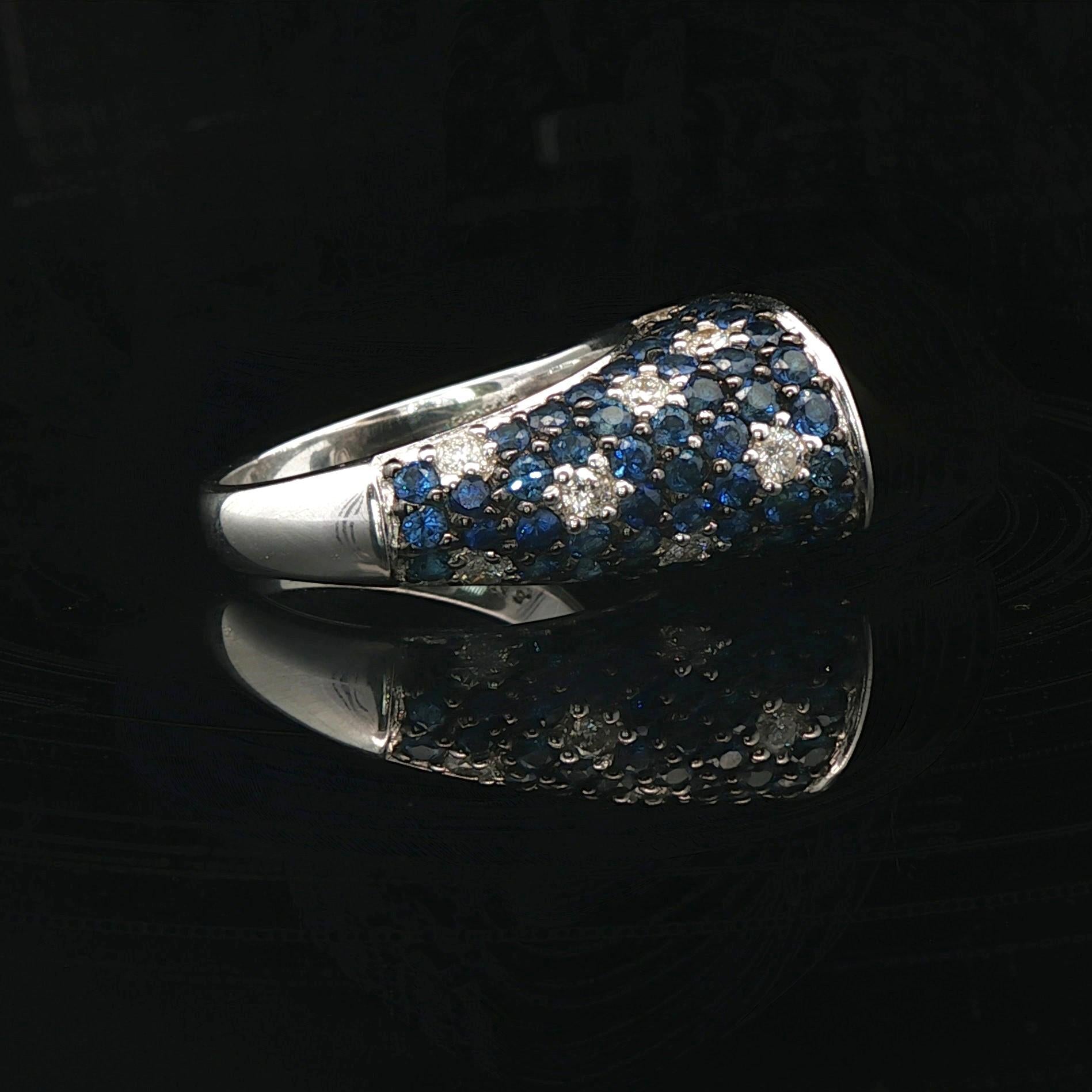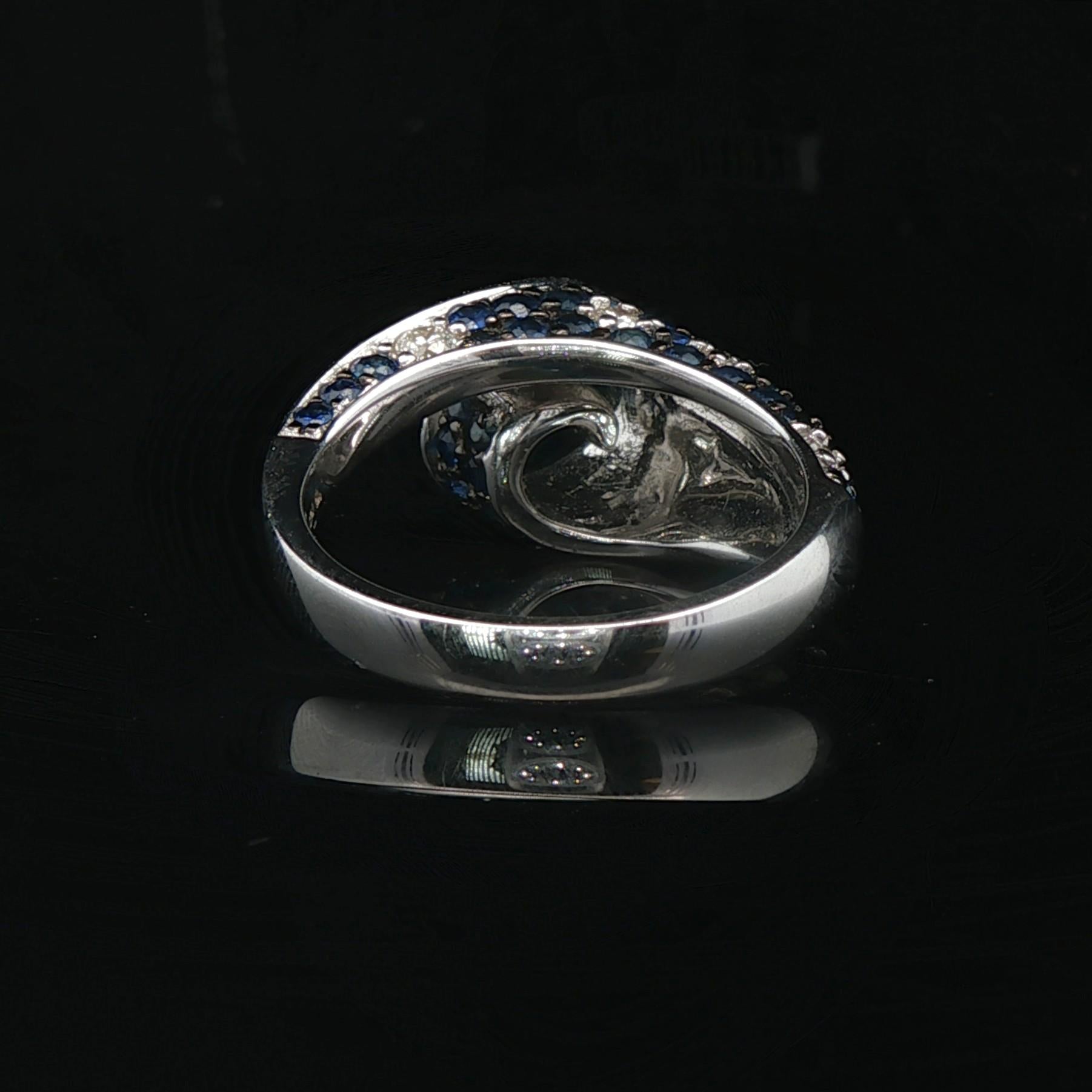 Sonia B 18k White Gold Blue Sapphire and Diamond Ladies Swirl Ring Size 7