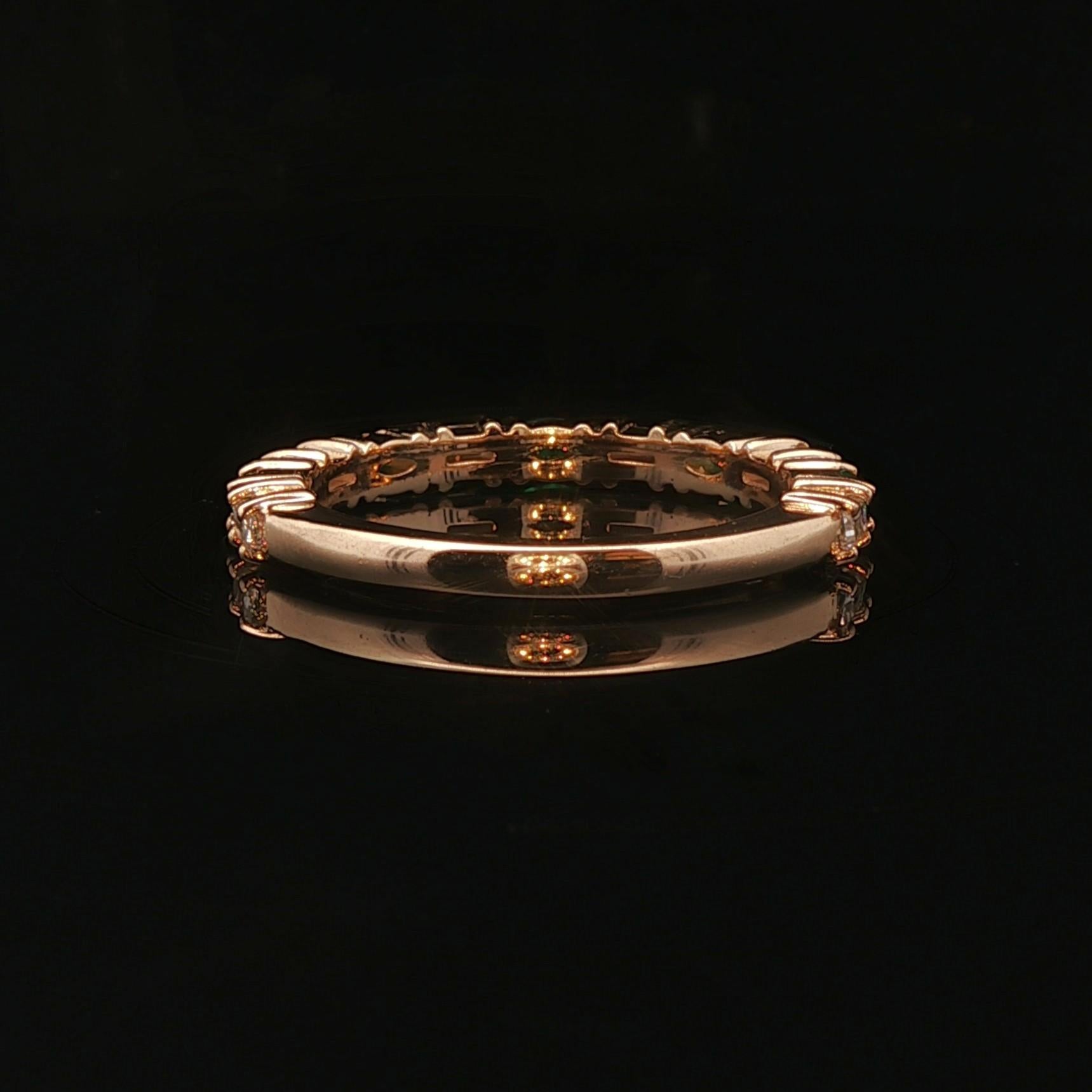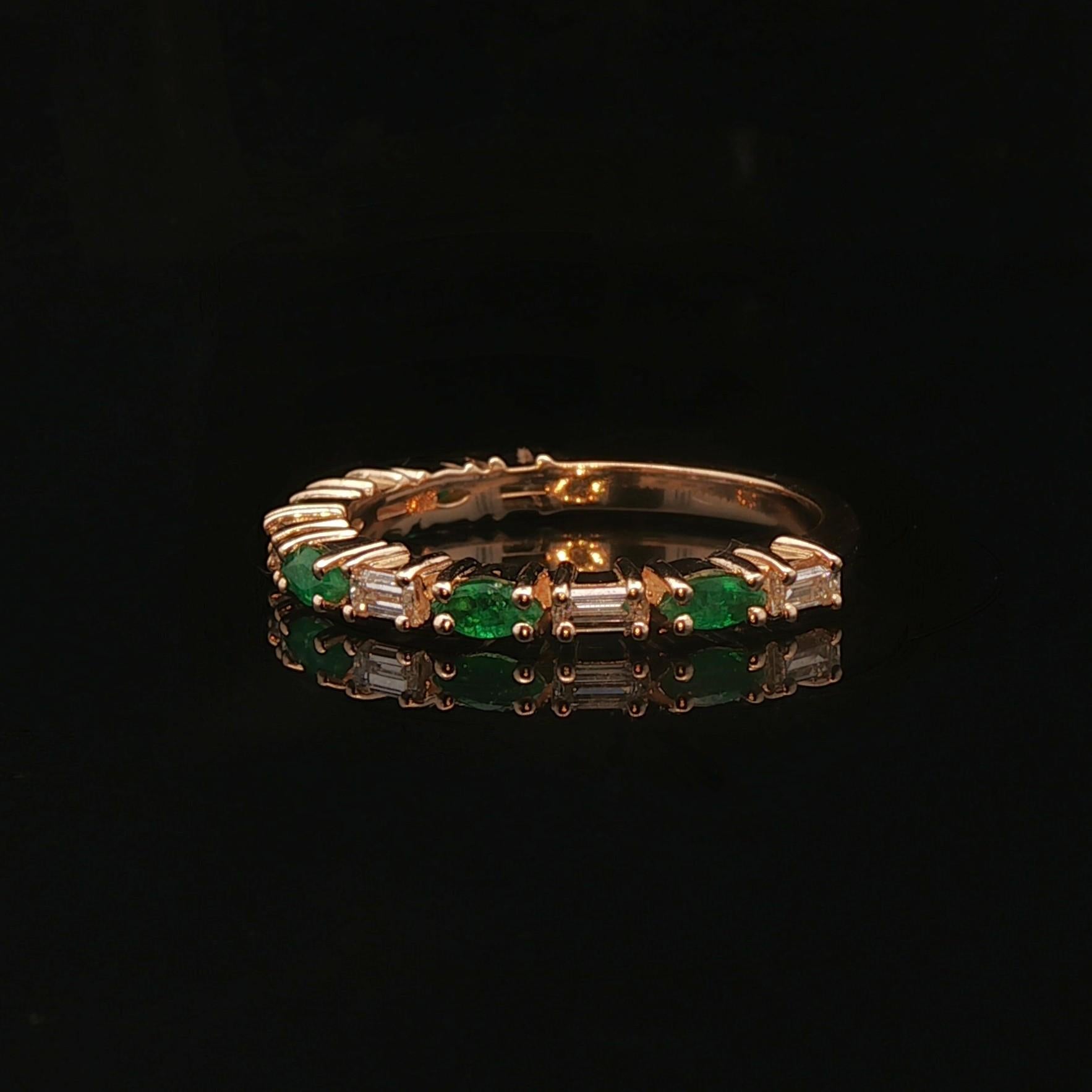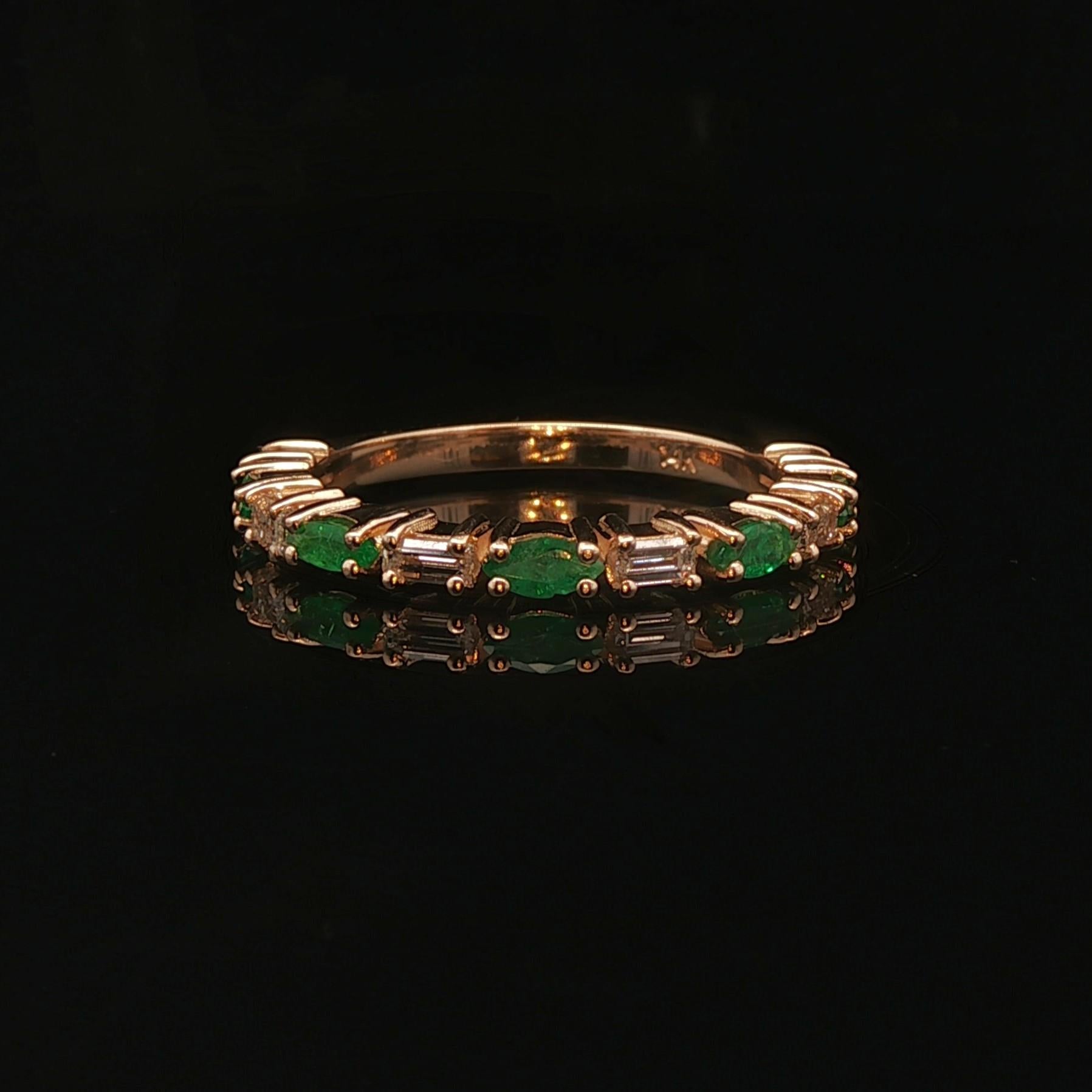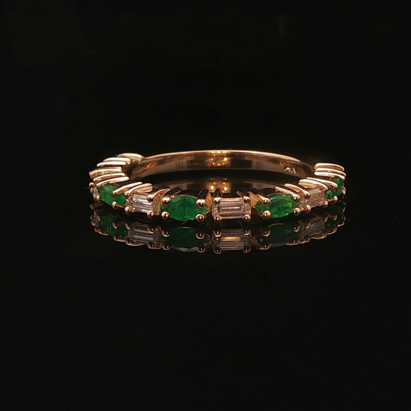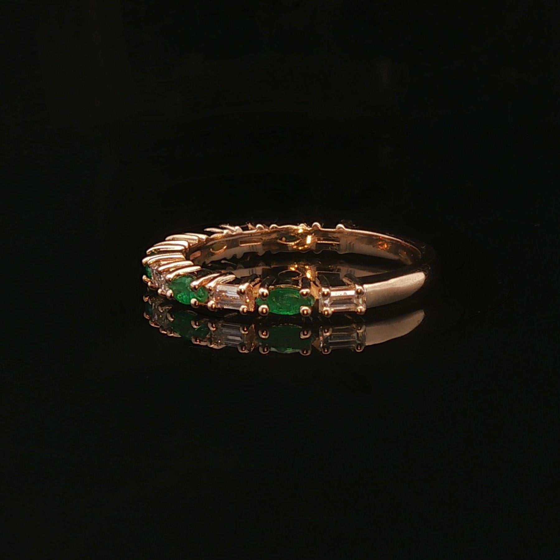 14k Yellow Gold Emerald and Baguette Diamond Band Ring Size 7.5