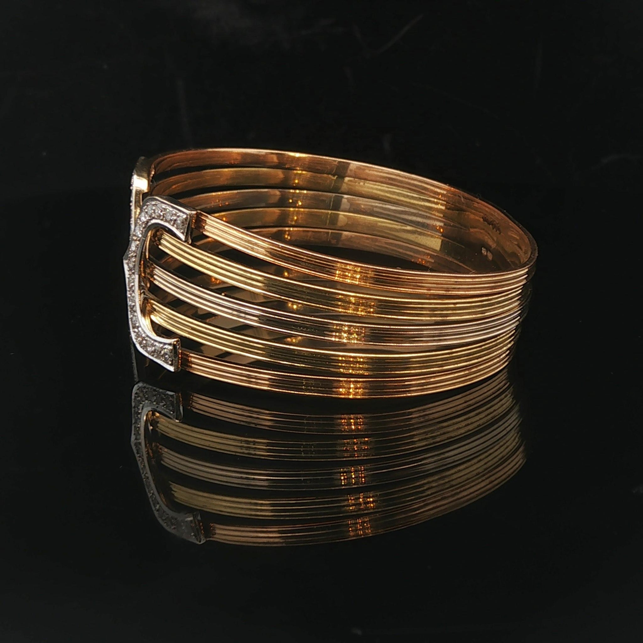 18k Yellow White and Rose Gold 0.90cttw Diamond Vintage Cuff Bracelet 7"