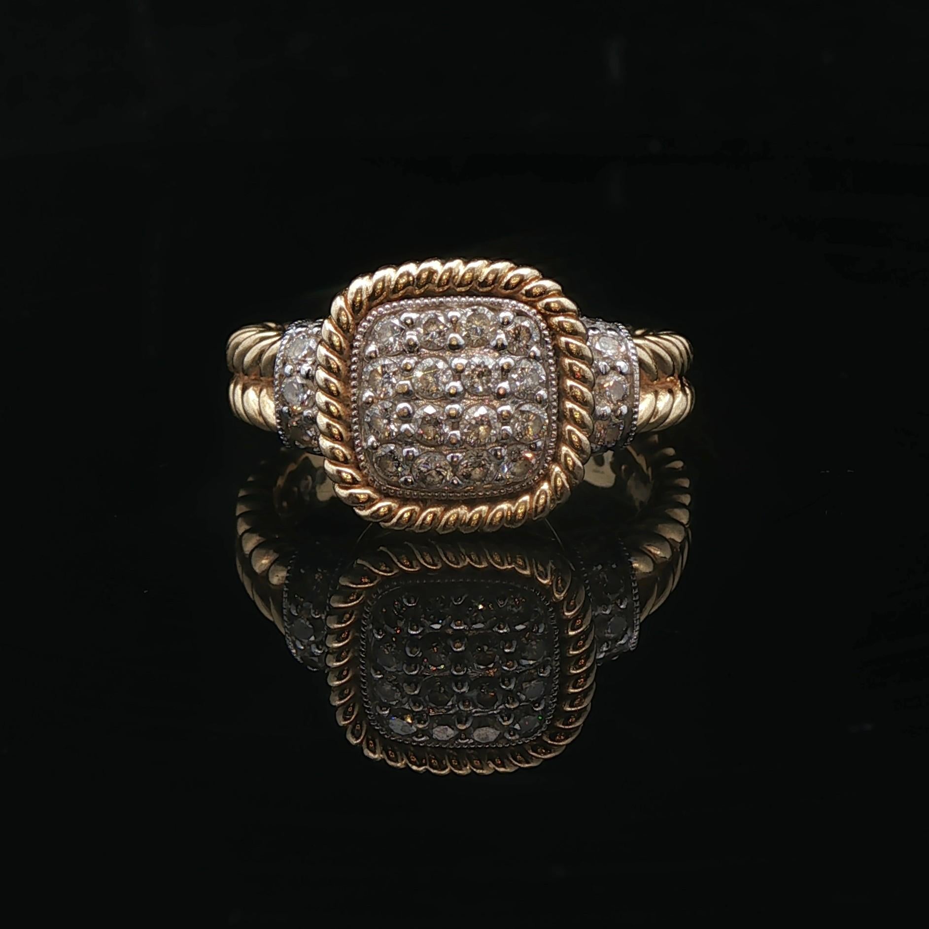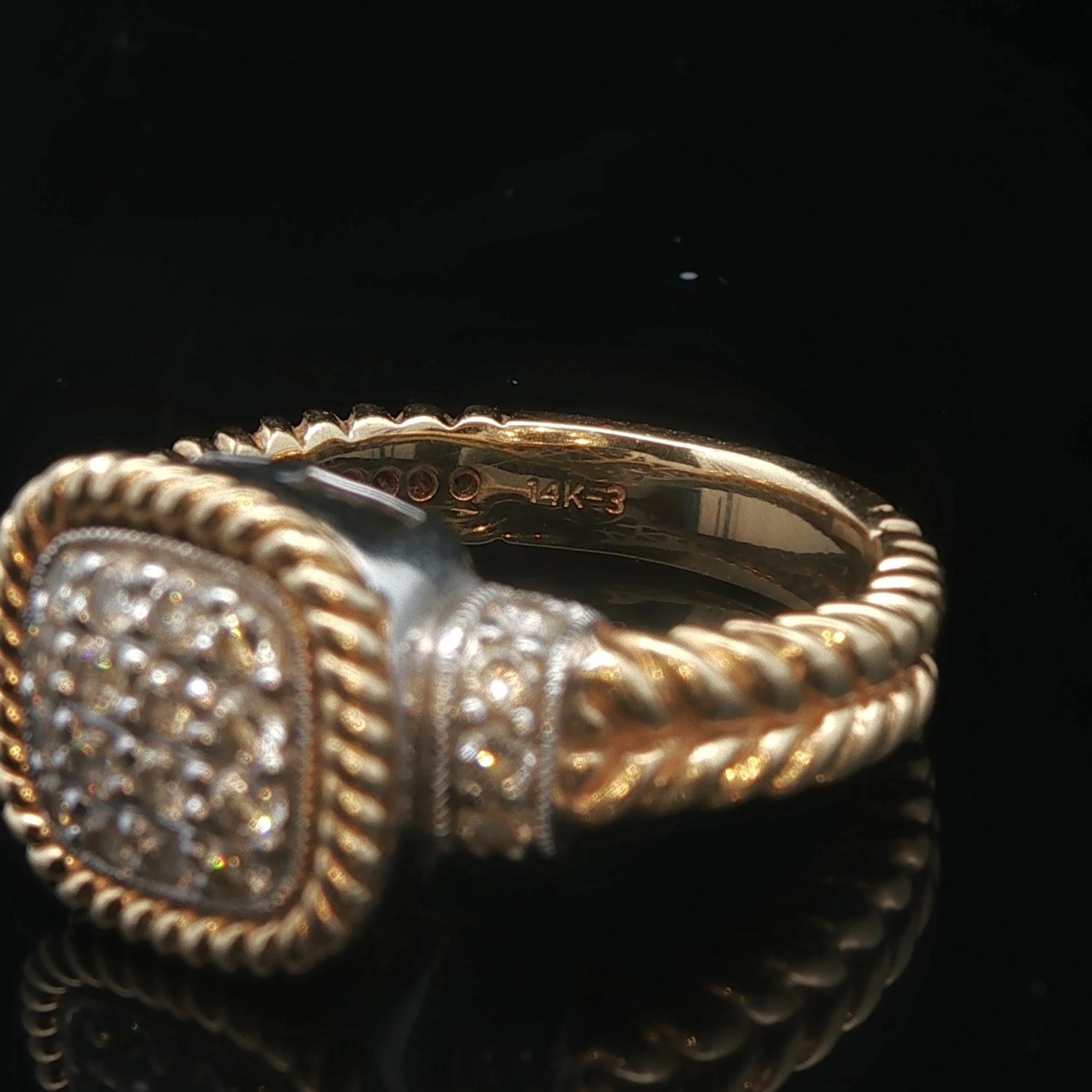 14k Yellow and White Gold Diamond Ladies Cluster Ring Size 6.75