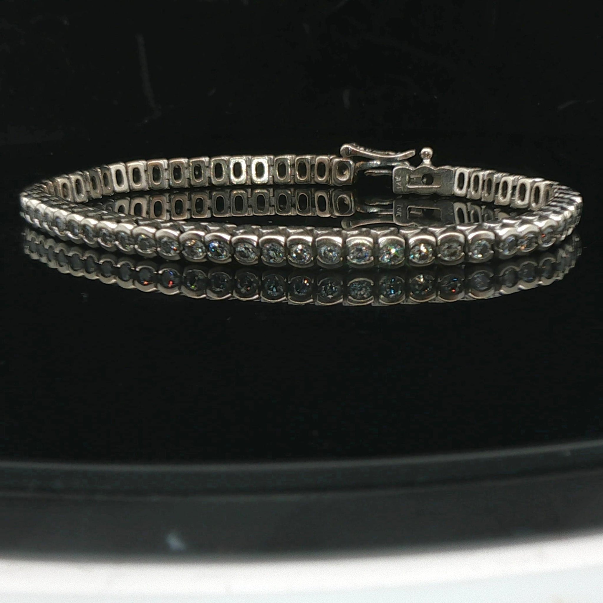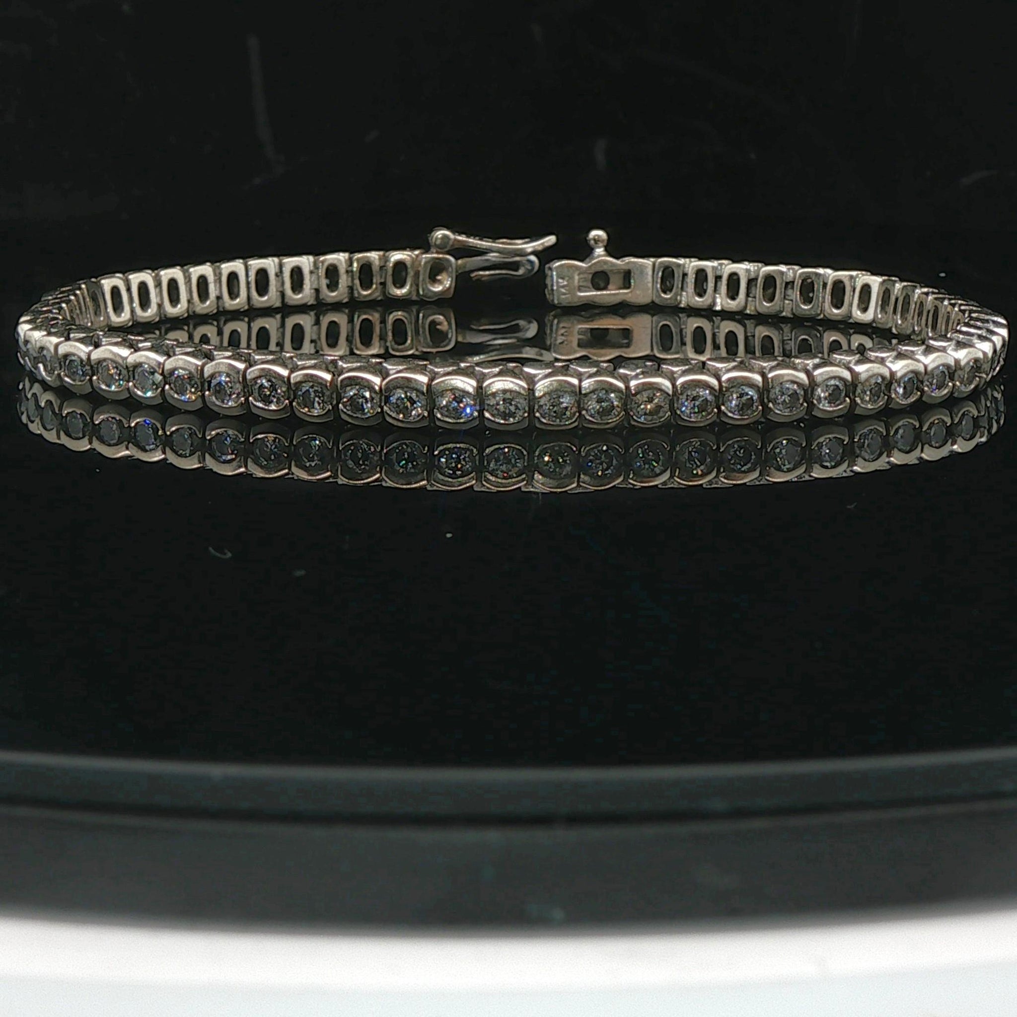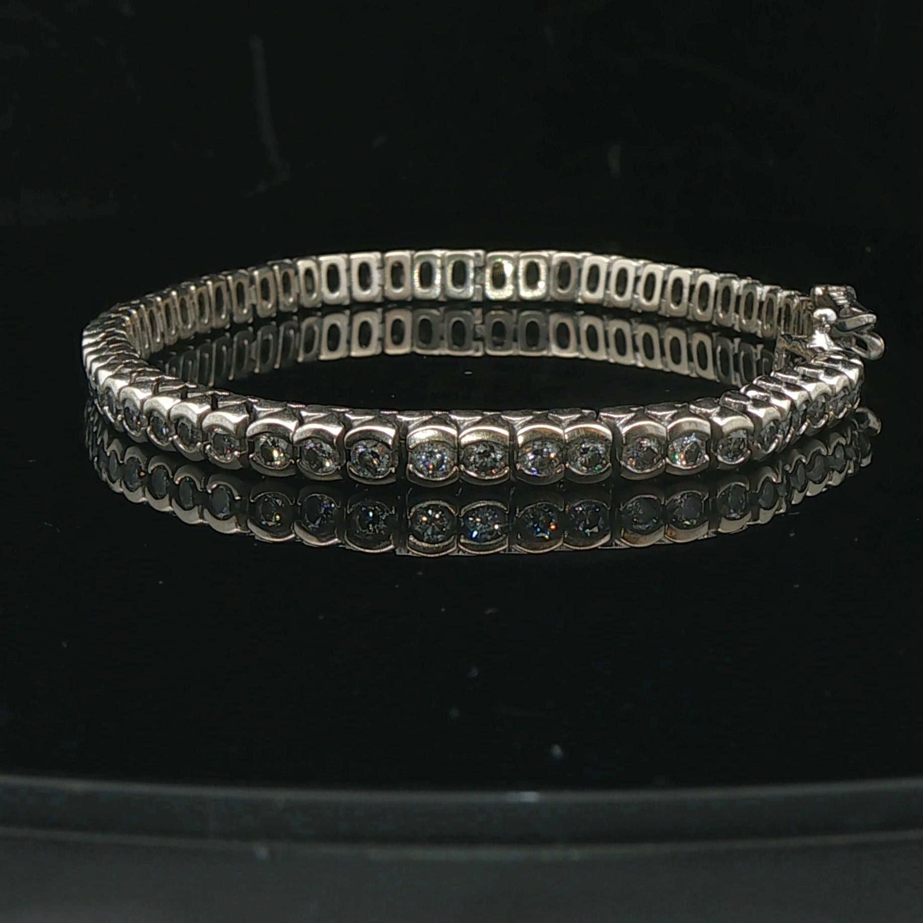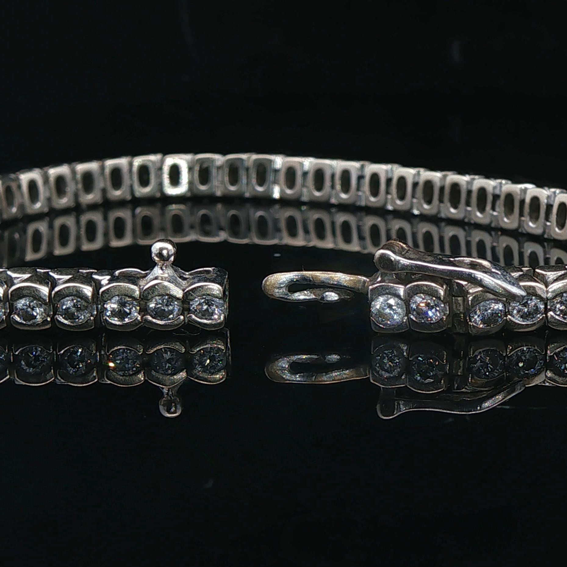 14k White Gold and 3cttw Diamond Half Bezel Set Heavy Vintage Tennis Bracelet 7"