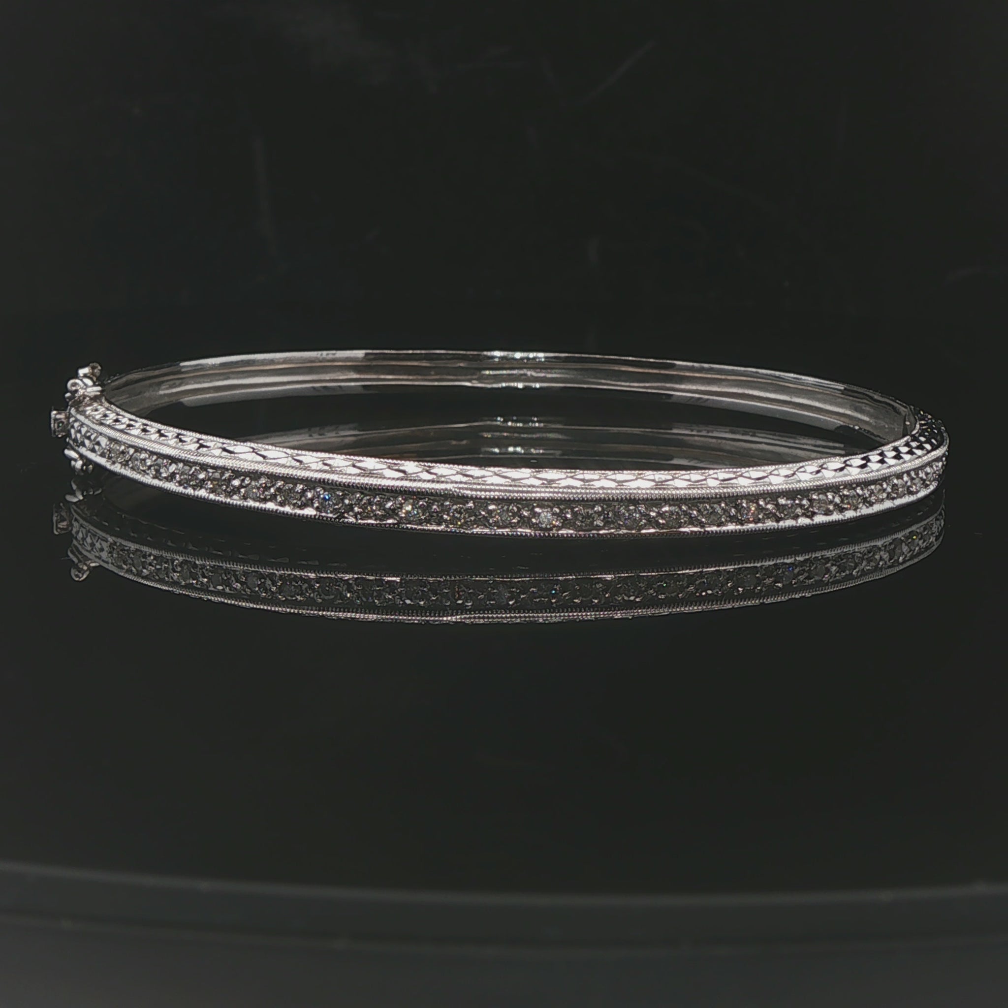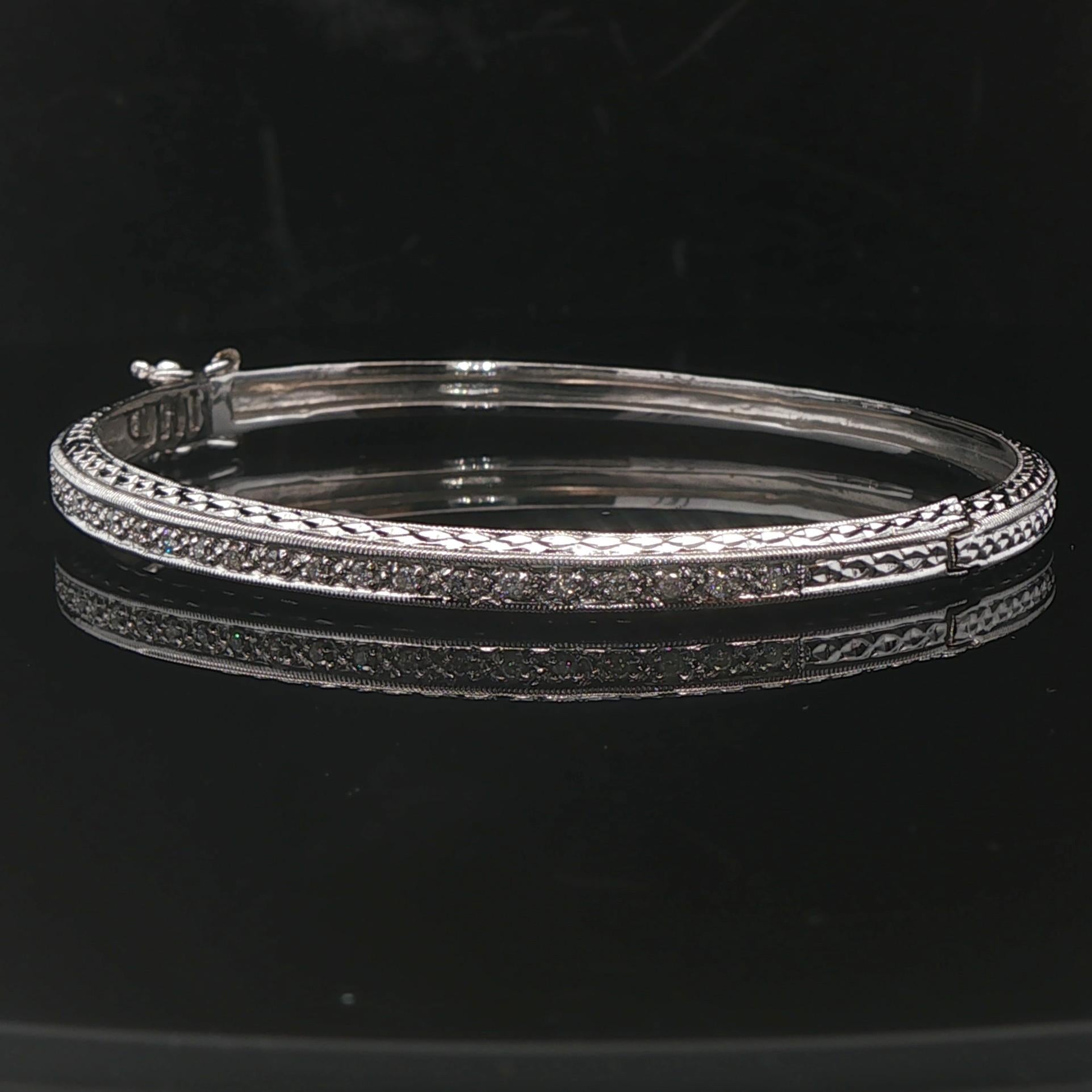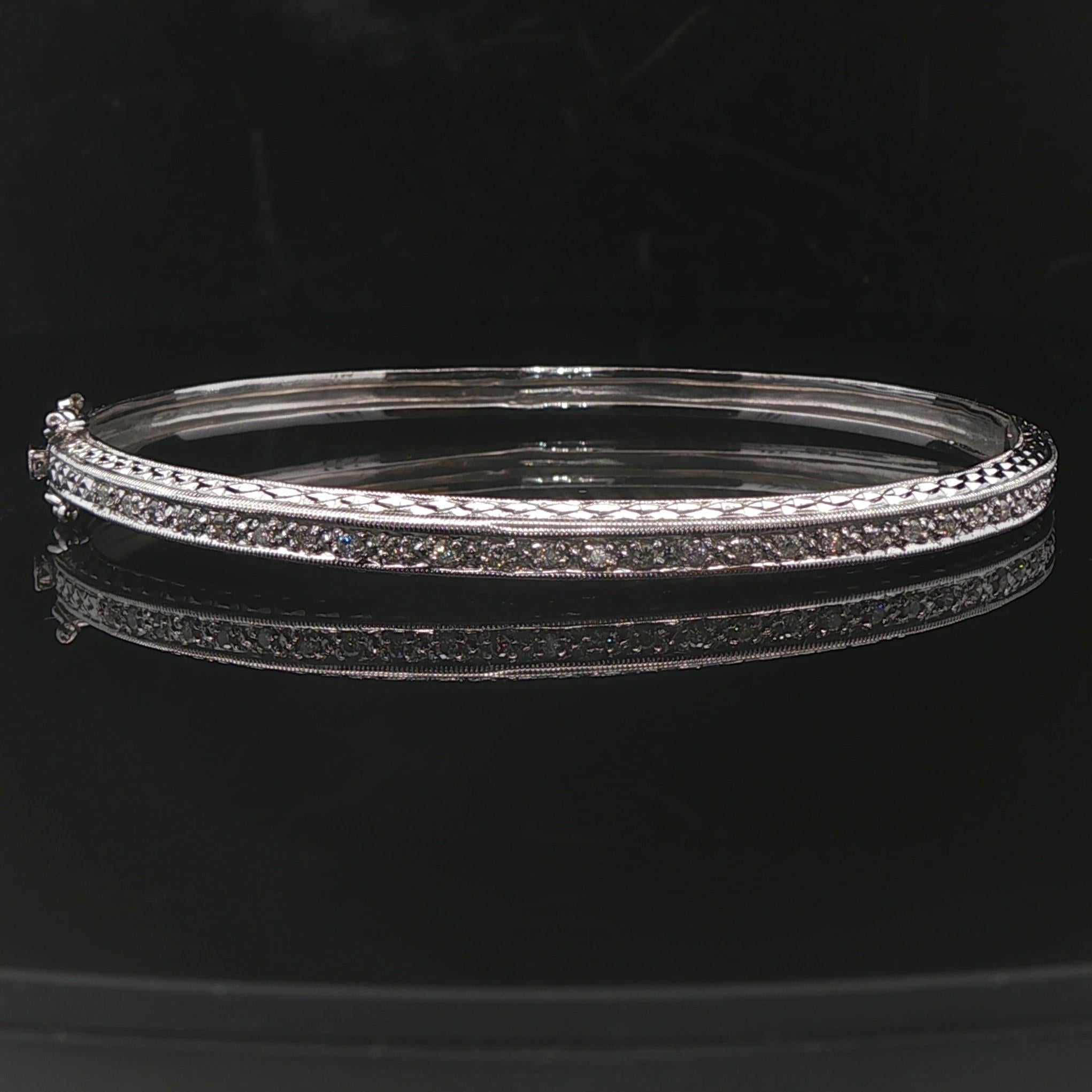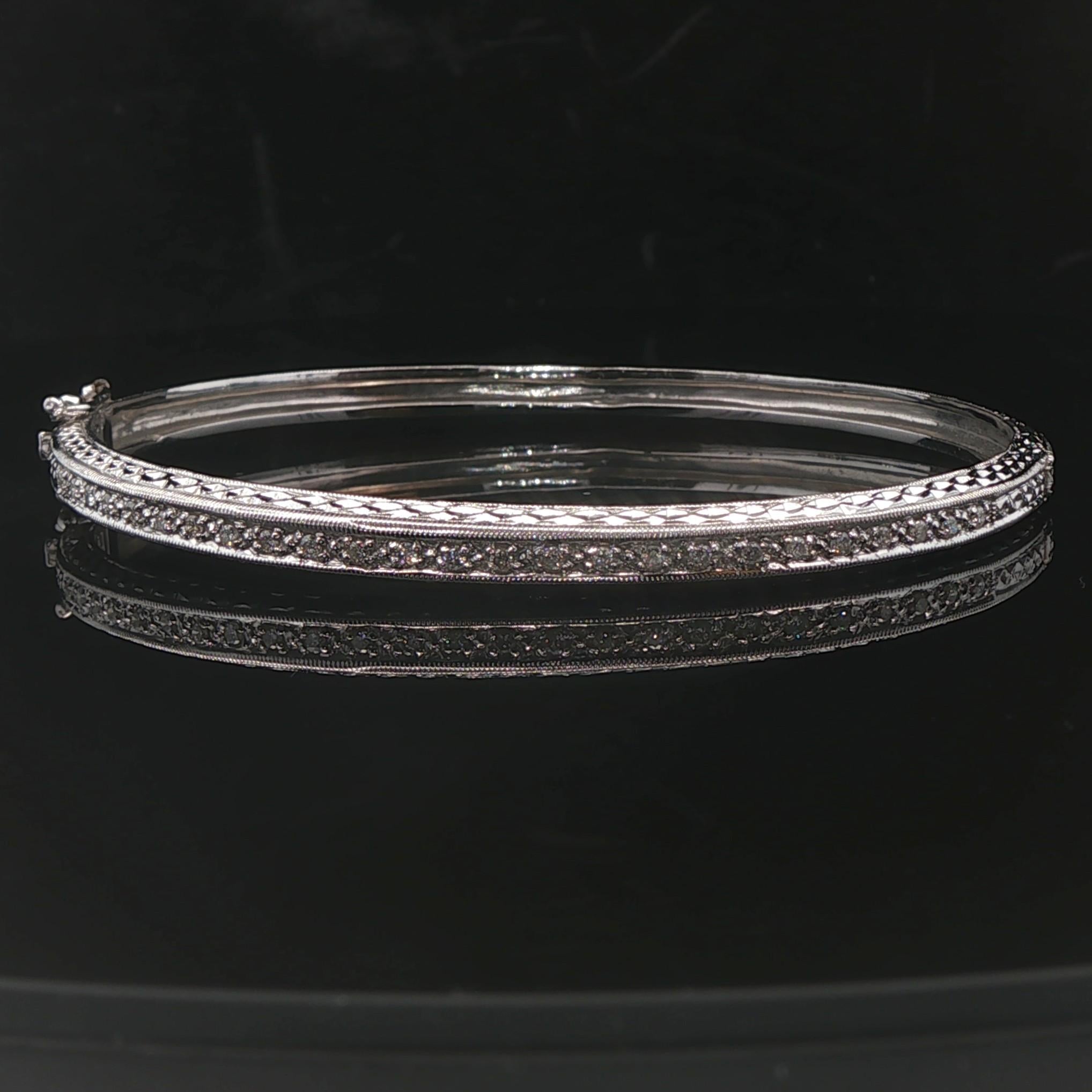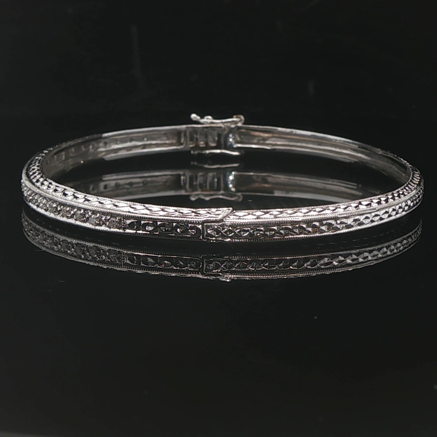 14k White Gold and Diamond 12.7g Solid Vintage Bangle Bracelet 7"