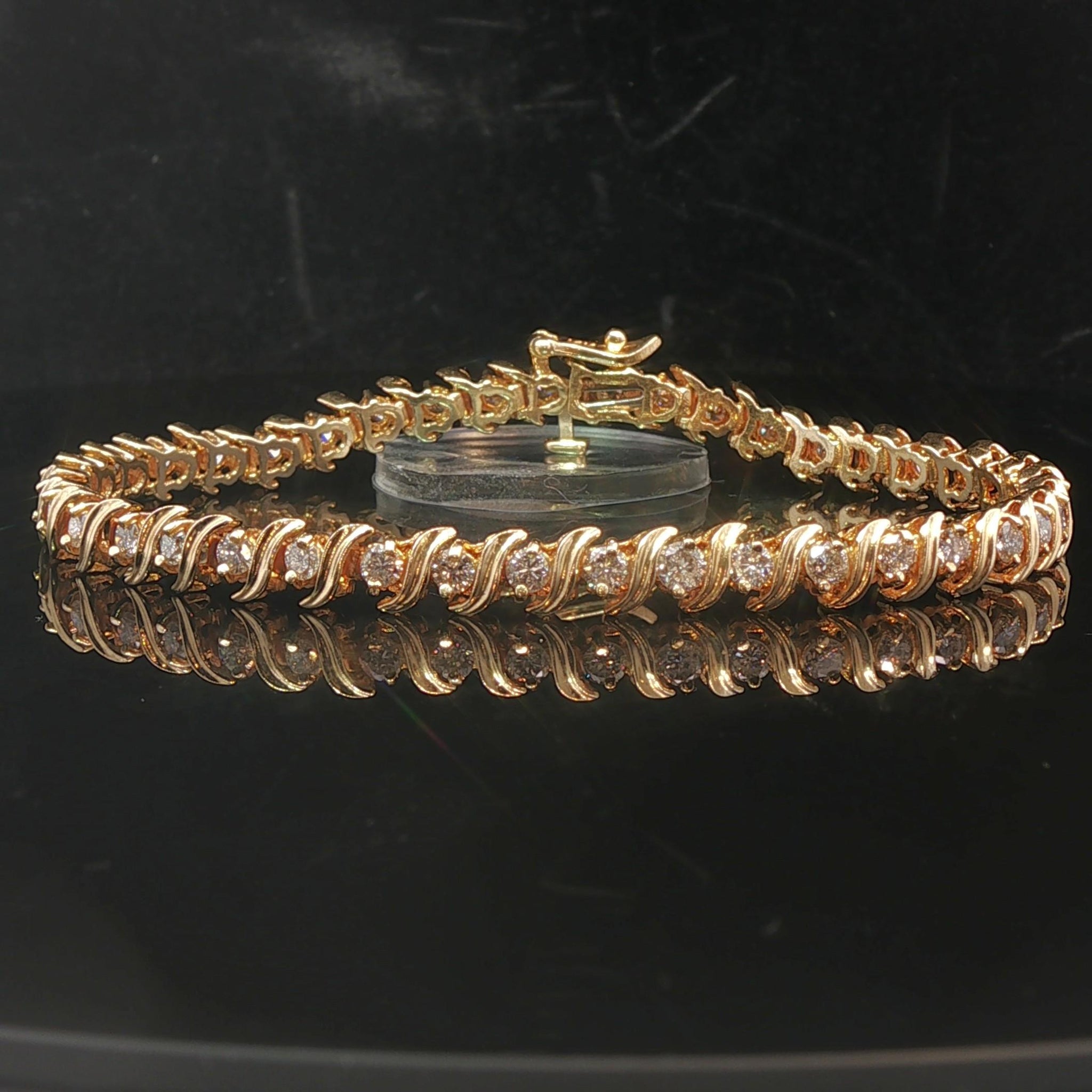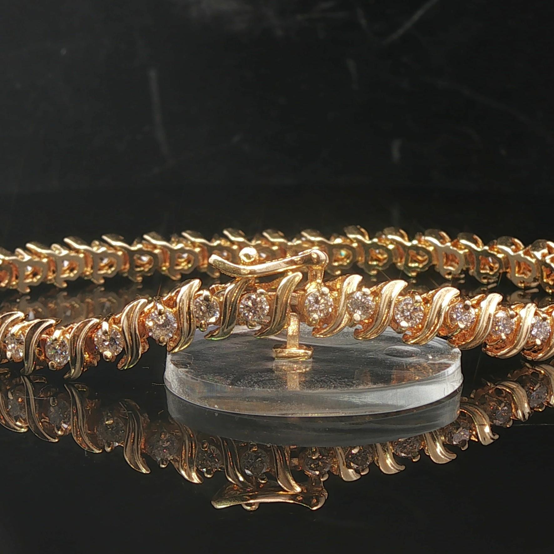 14k Yellow Gold and 2cttw Diamond Vintage S Link Tennis Bracelet 7"