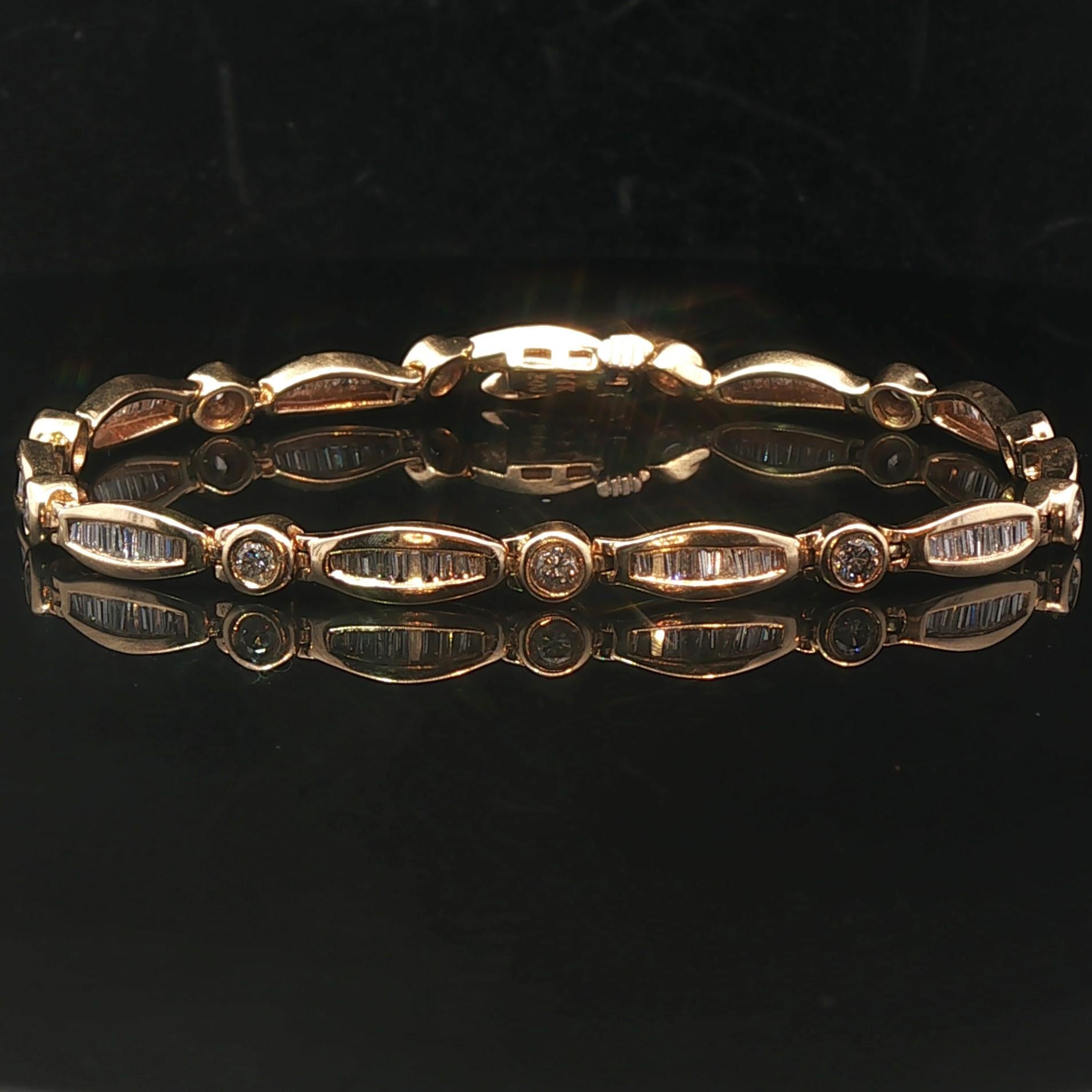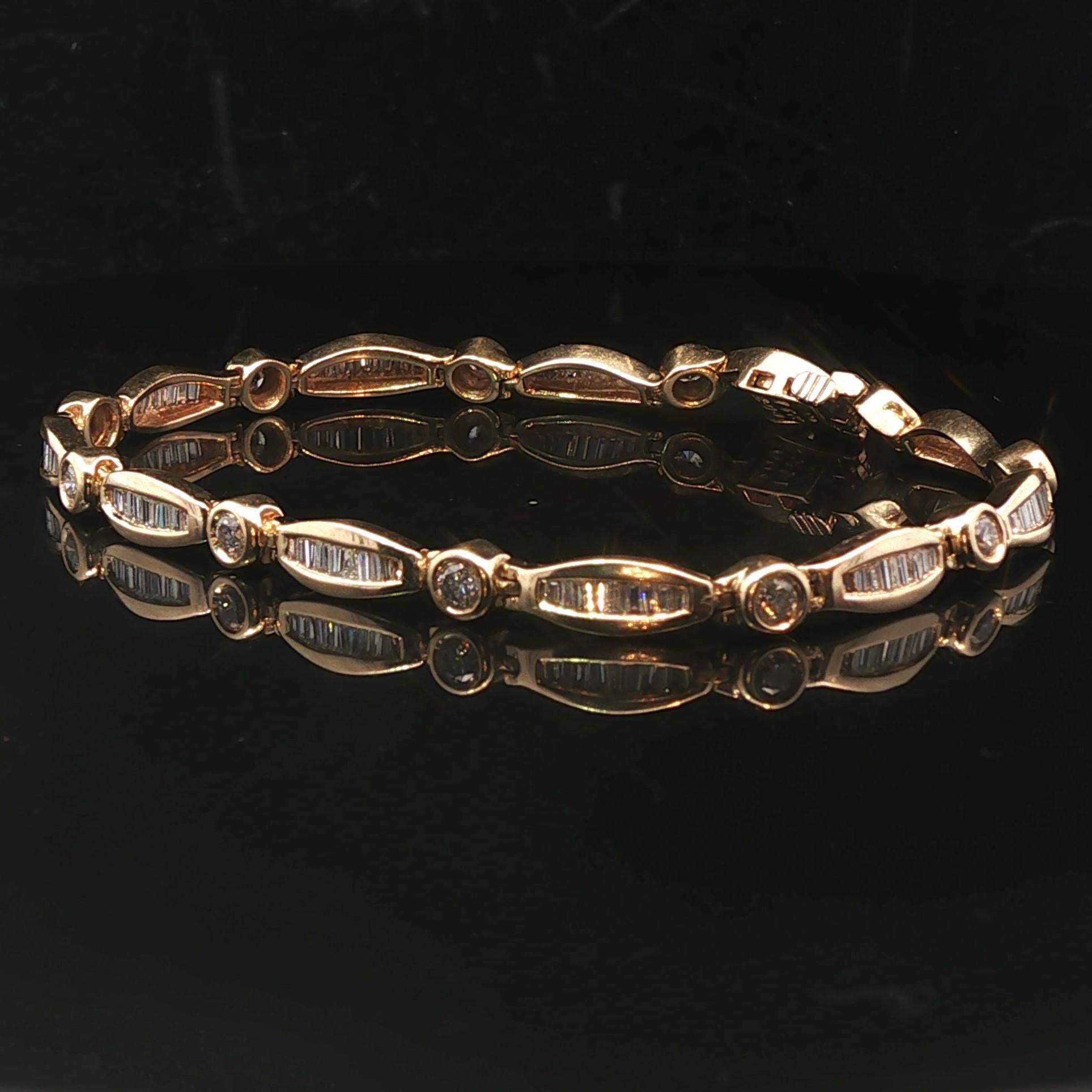 14k Yellow Gold and 2cttw Round and Baguette Diamond Link Bracelet 7.25"