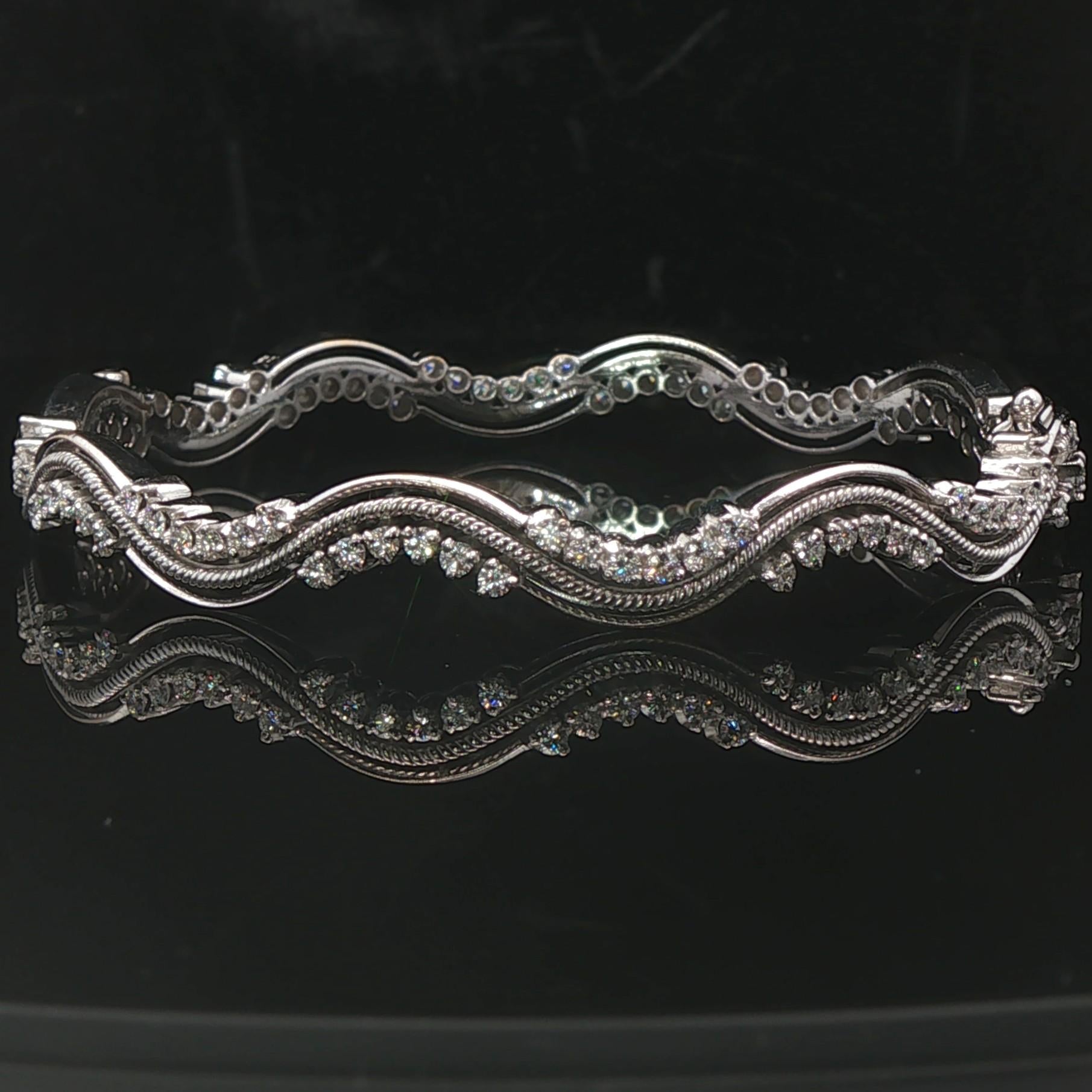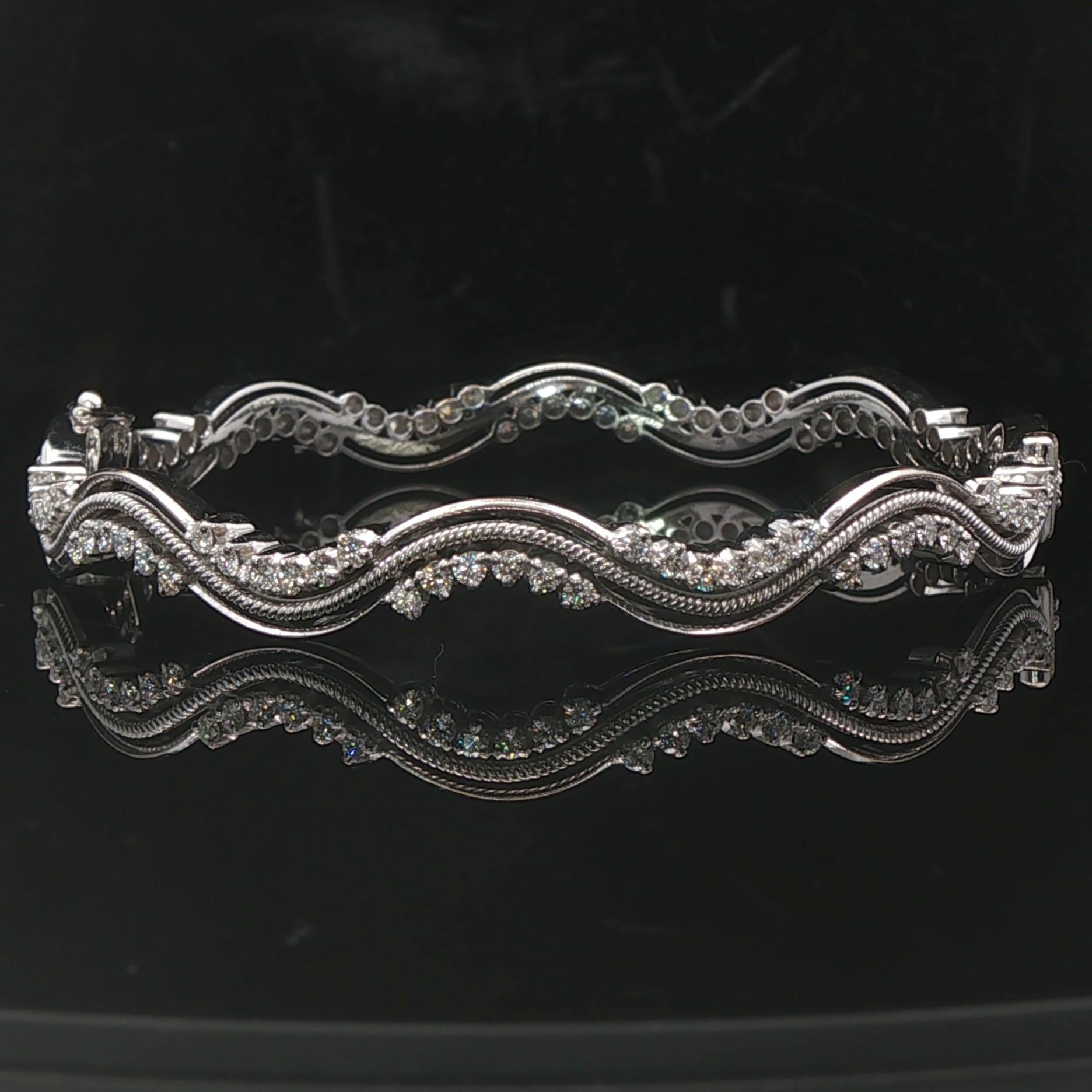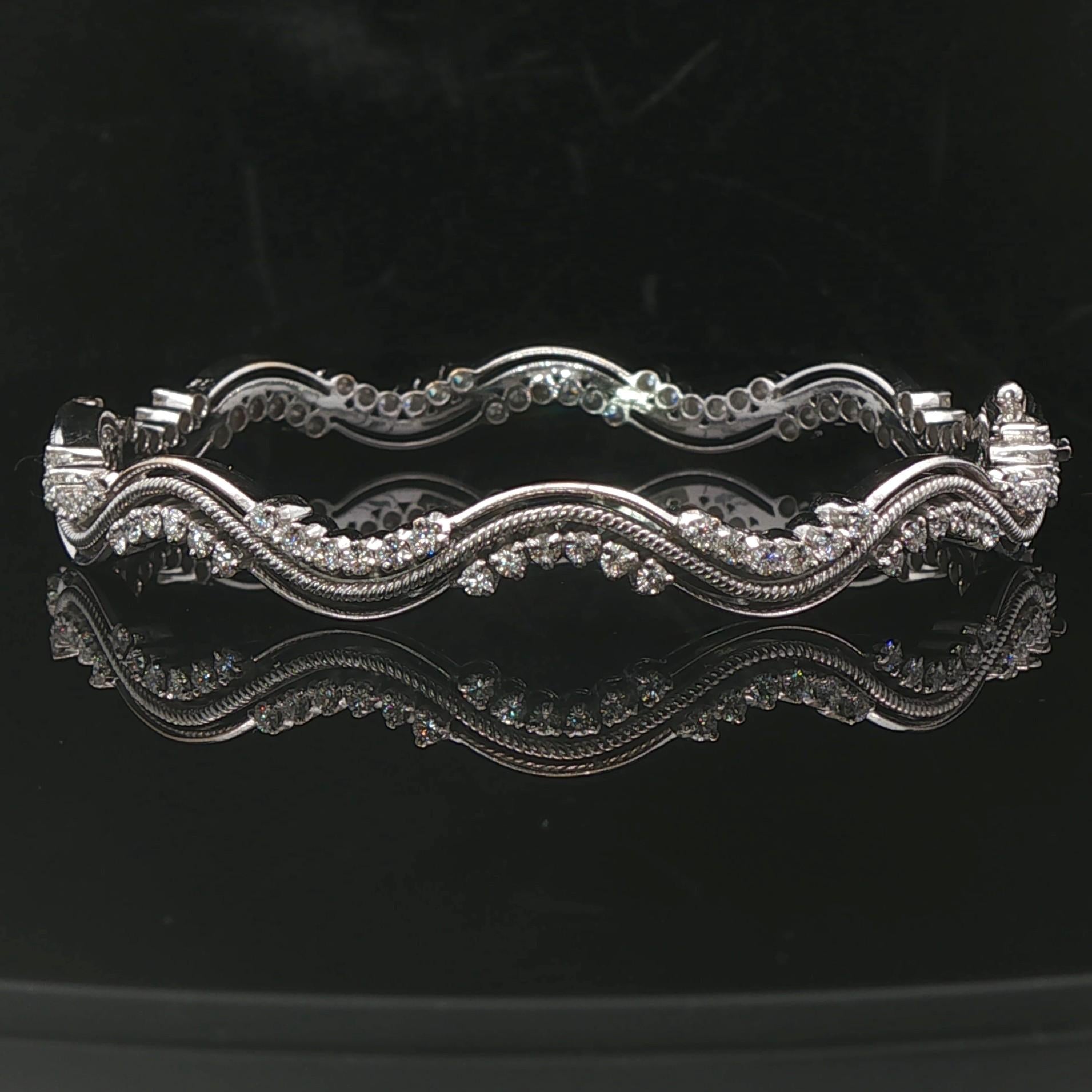 18k White Gold and 2.7cttw Diamond Heavy 25.7g Wave Bangle Bracelet 7"