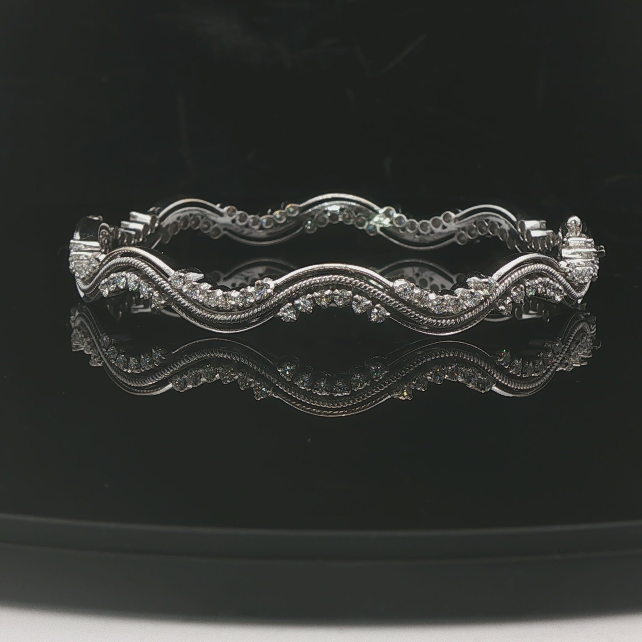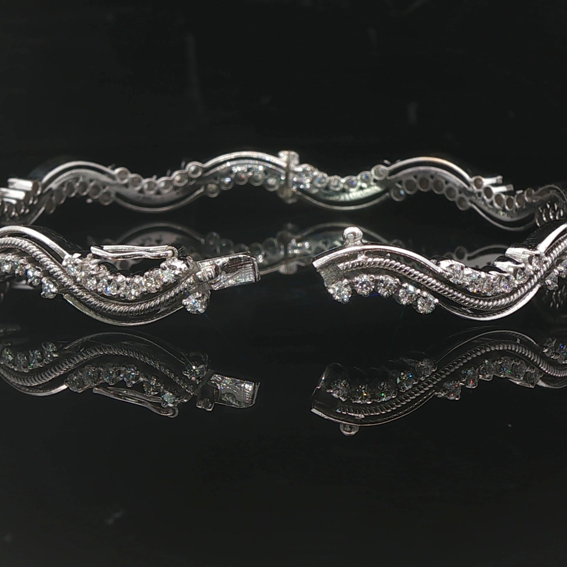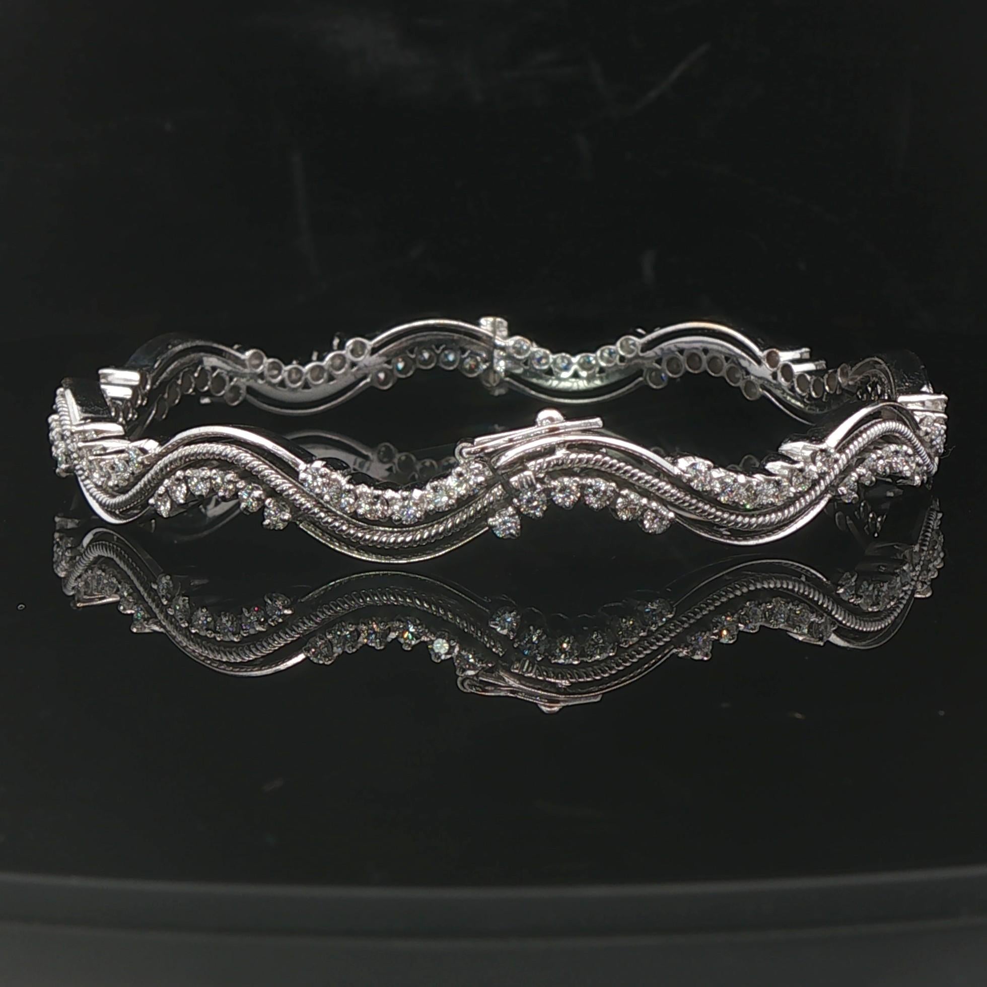 18k White Gold and 2.7cttw Diamond Heavy 25.7g Wave Bangle Bracelet 7"