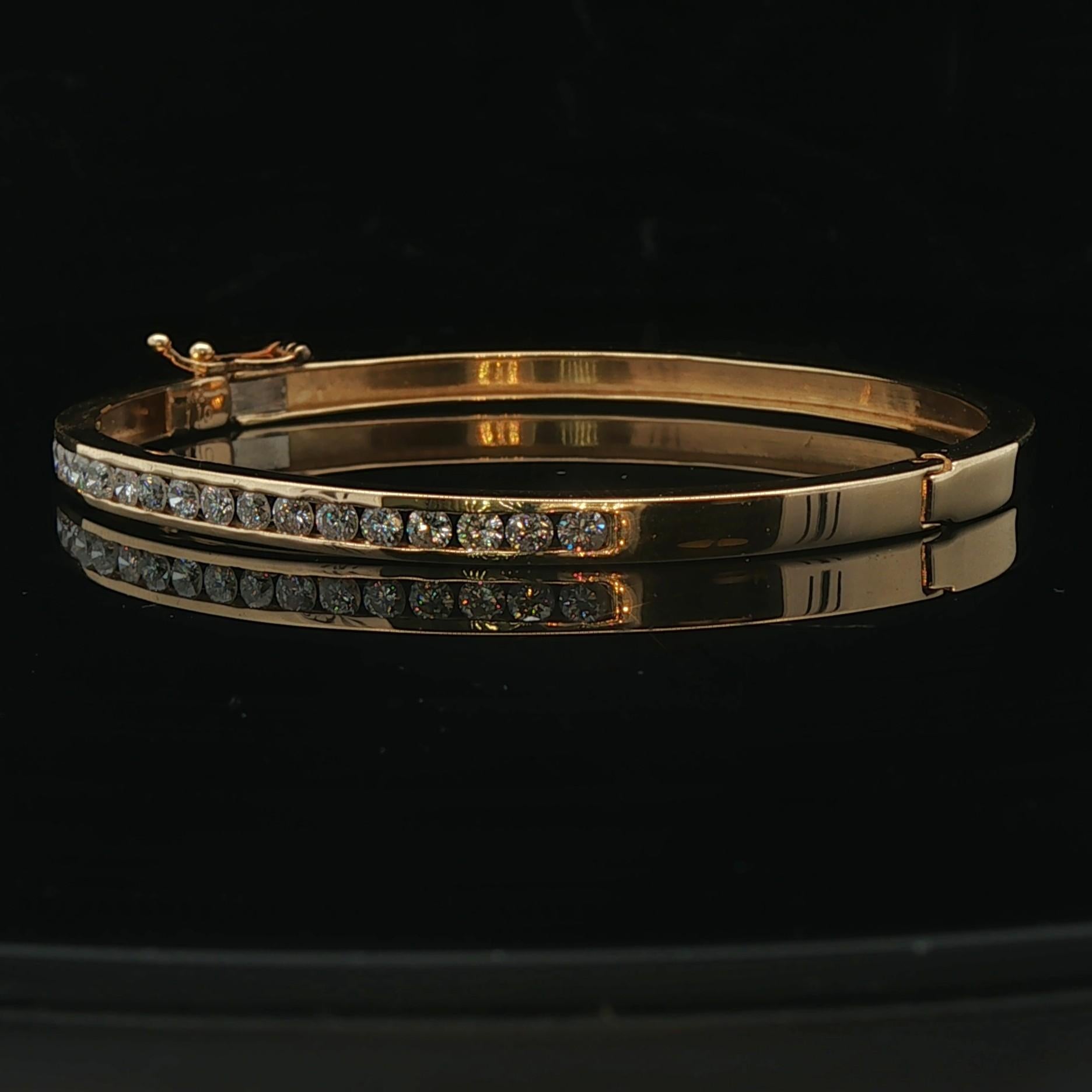 18k Yellow Gold and 1.10cttw Diamond Solid Bangle Bracelet 6.5"