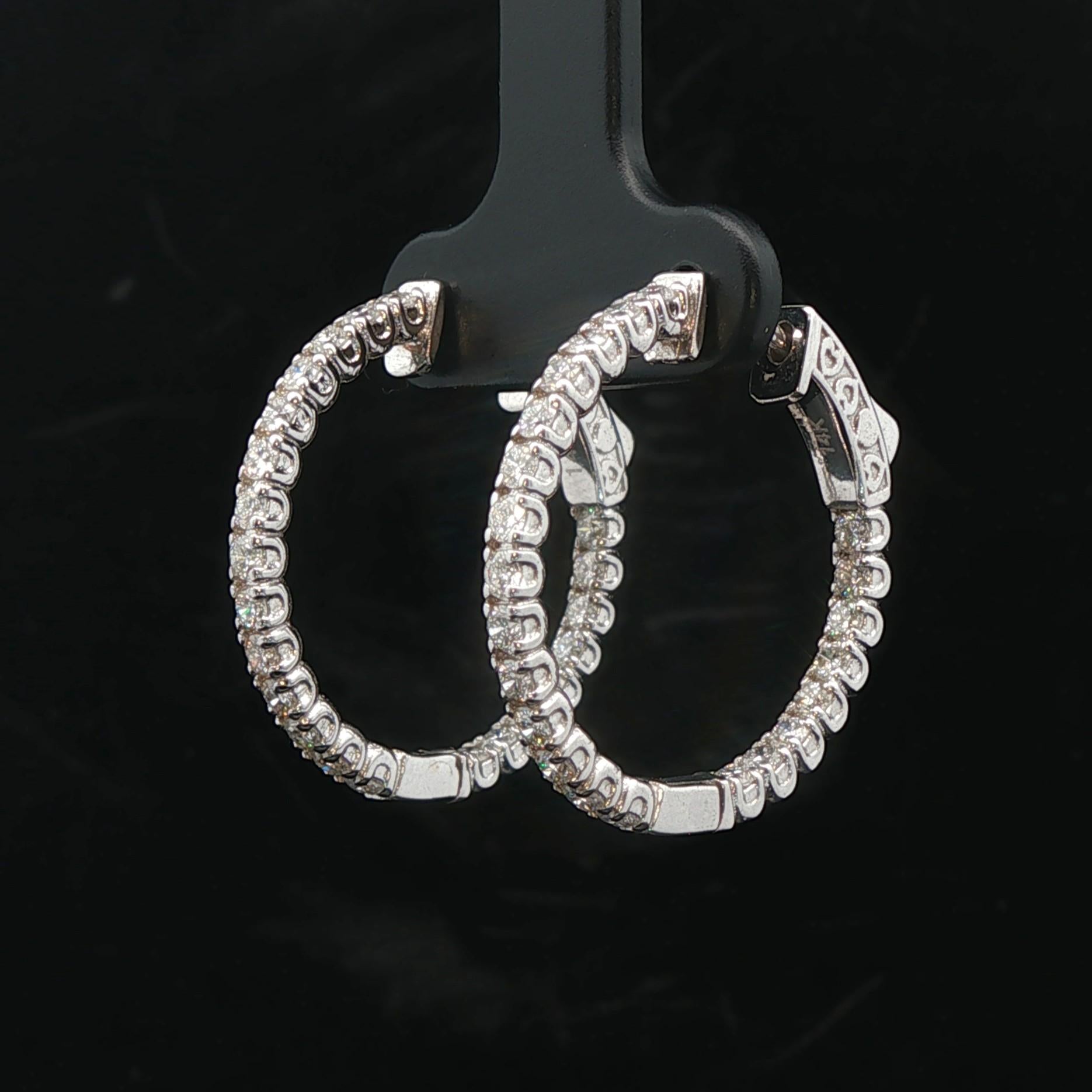 Brand New 1.50cttw Natural Diamond Hoop Earrings in 14k White Gold
