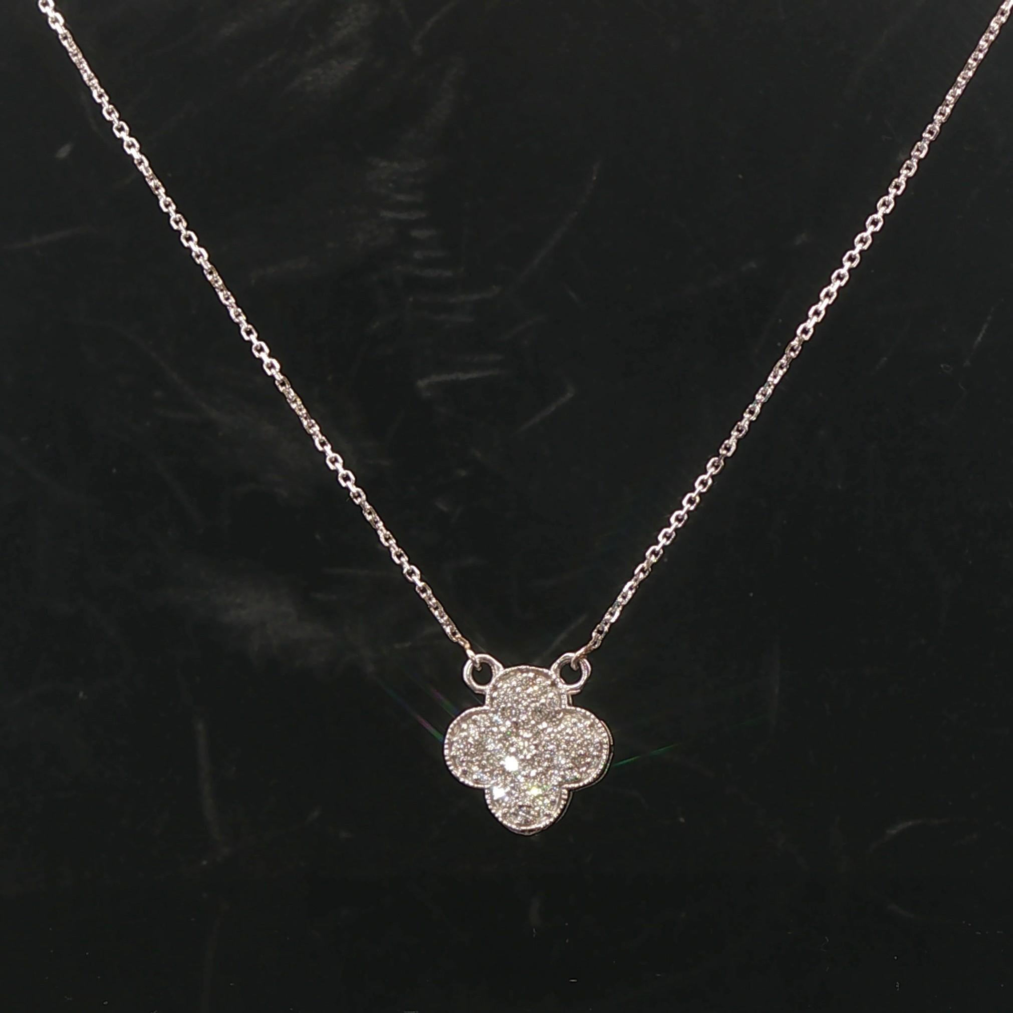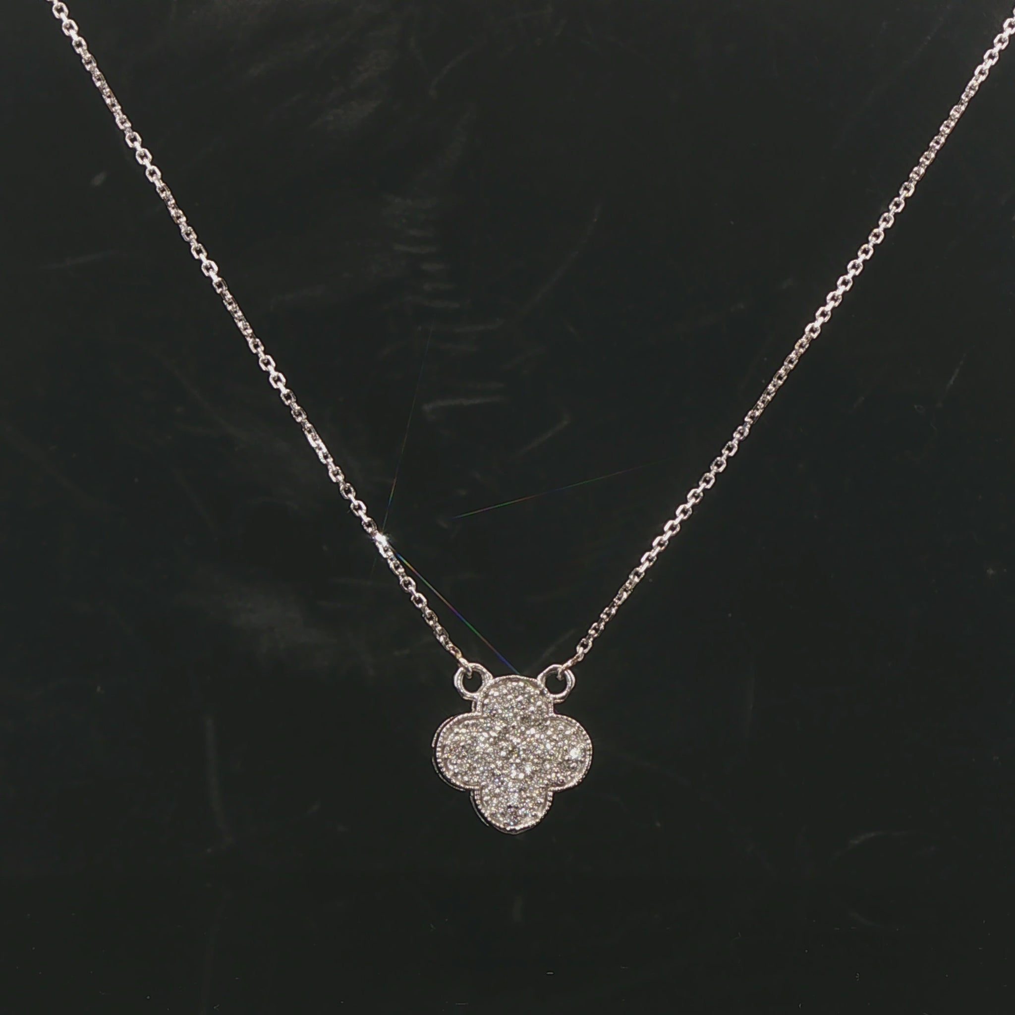 Brand New 0.50cttw Natural Diamonds Clover Pendant Necklace in 14k White Gold