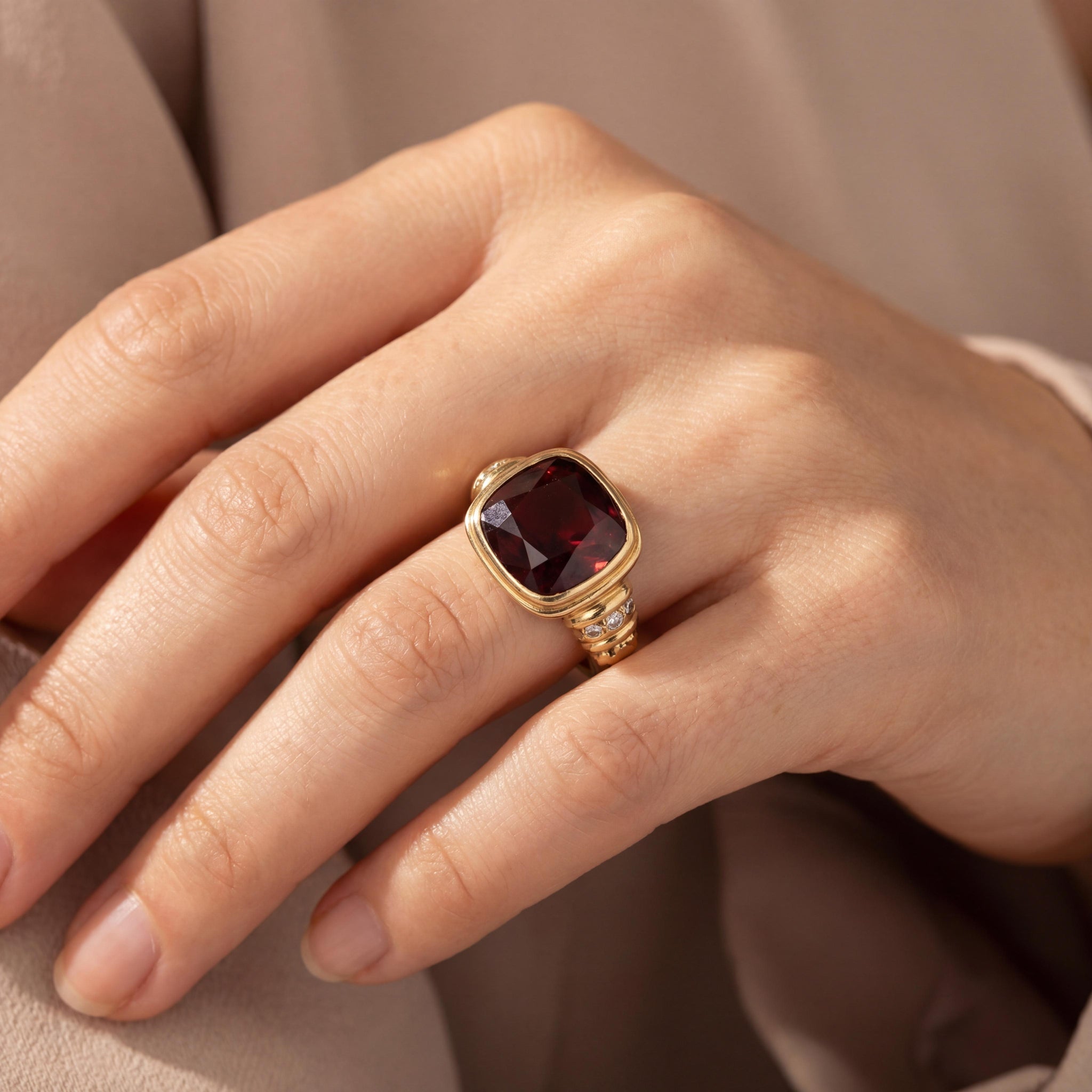 Gemstone:  11.5mm by 11.5mm Red Garnet