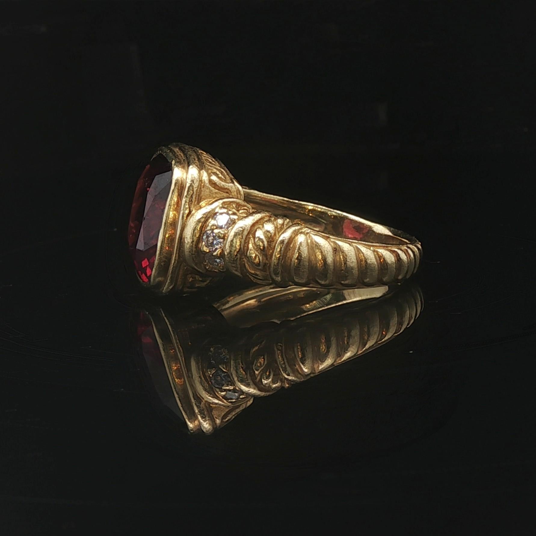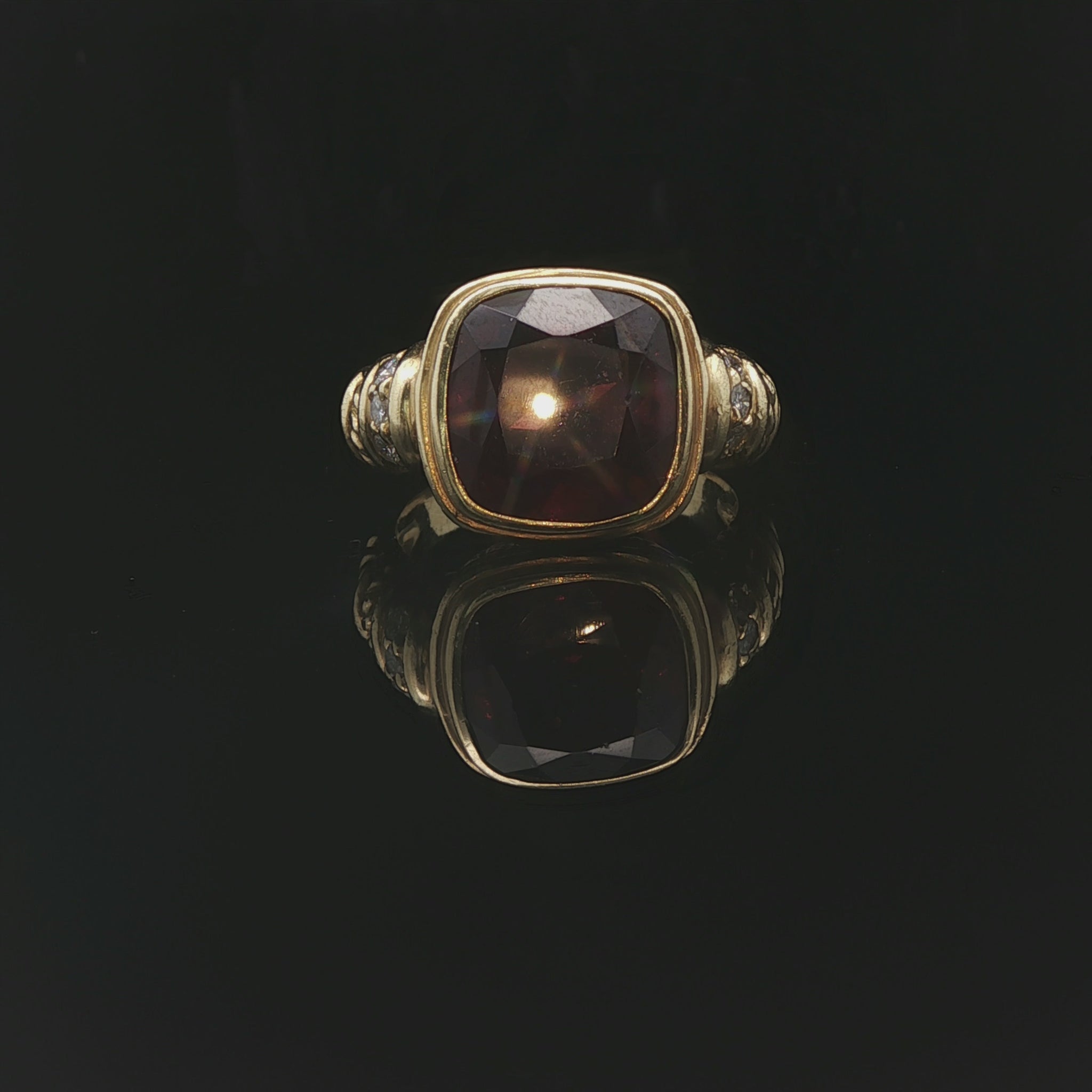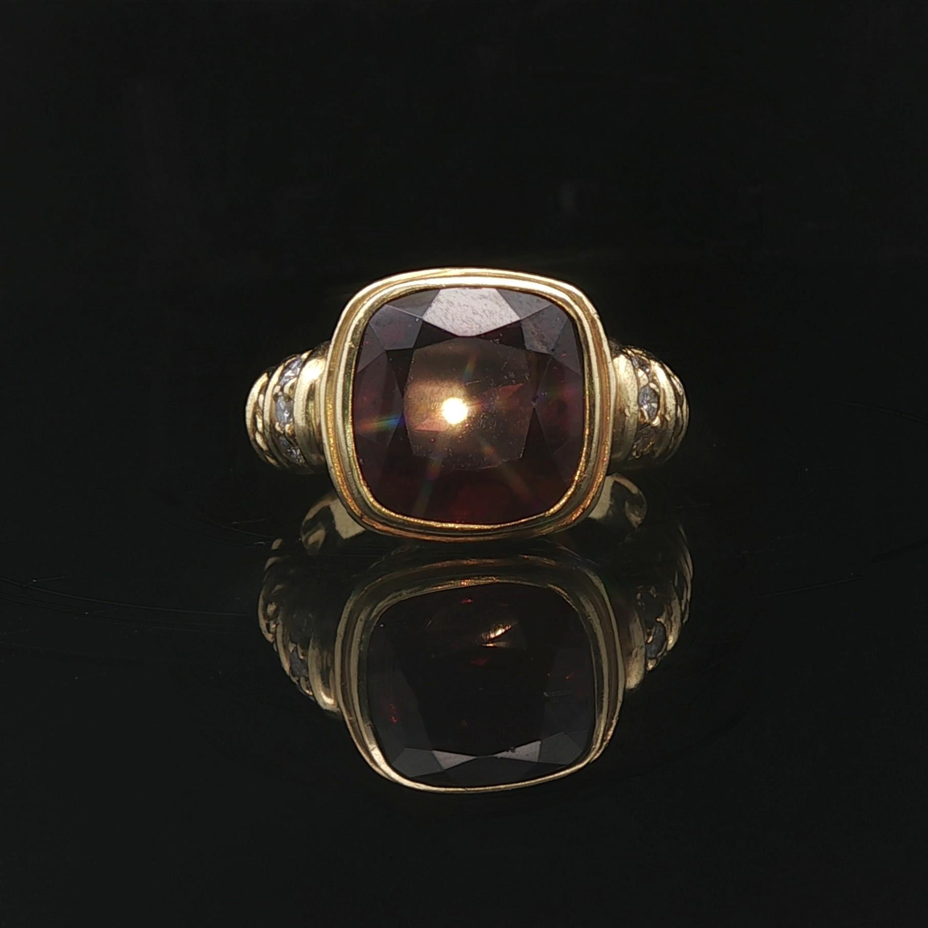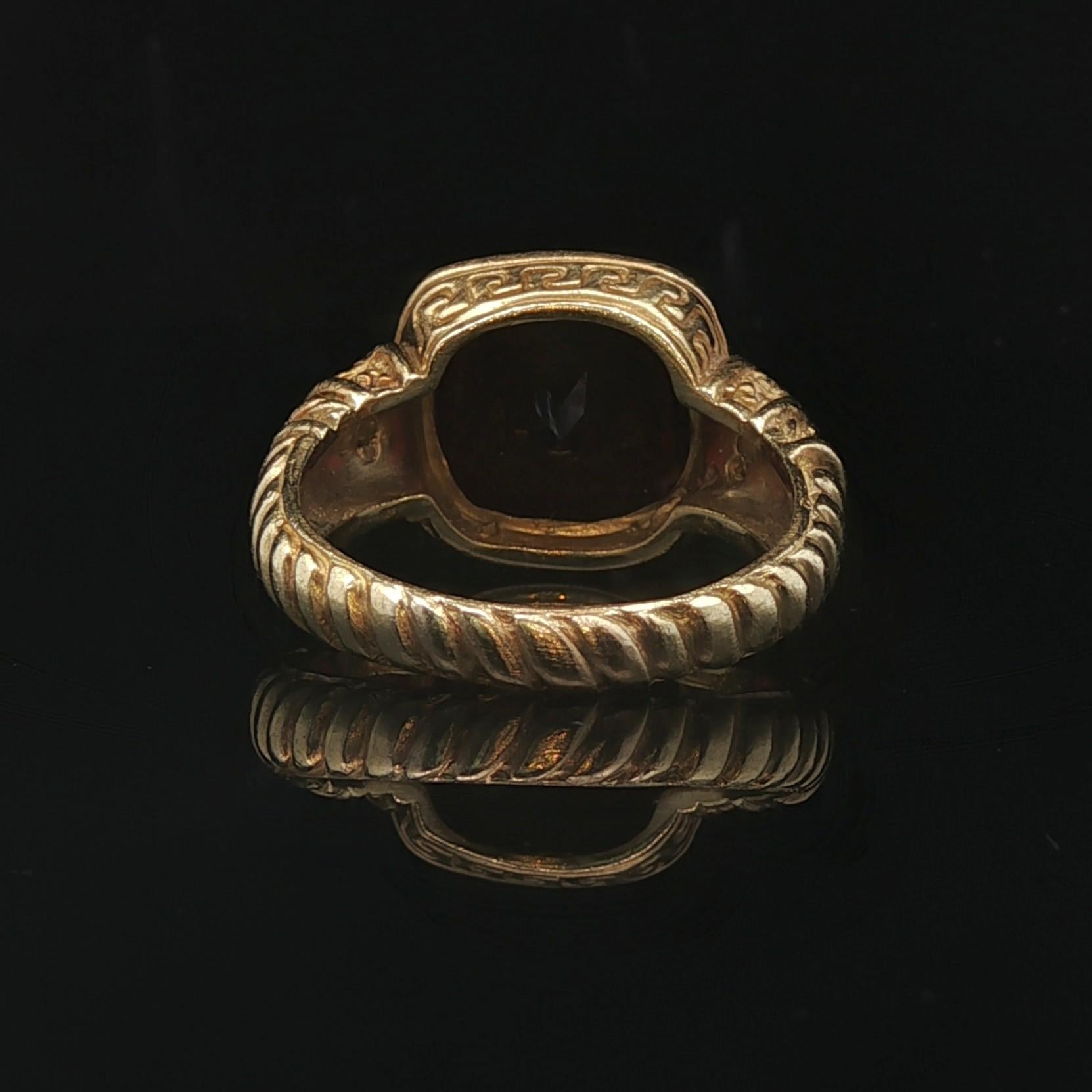 Judith Ripka 18k Yellow Gold Garnet and Diamond Greek Key Ring Size 9