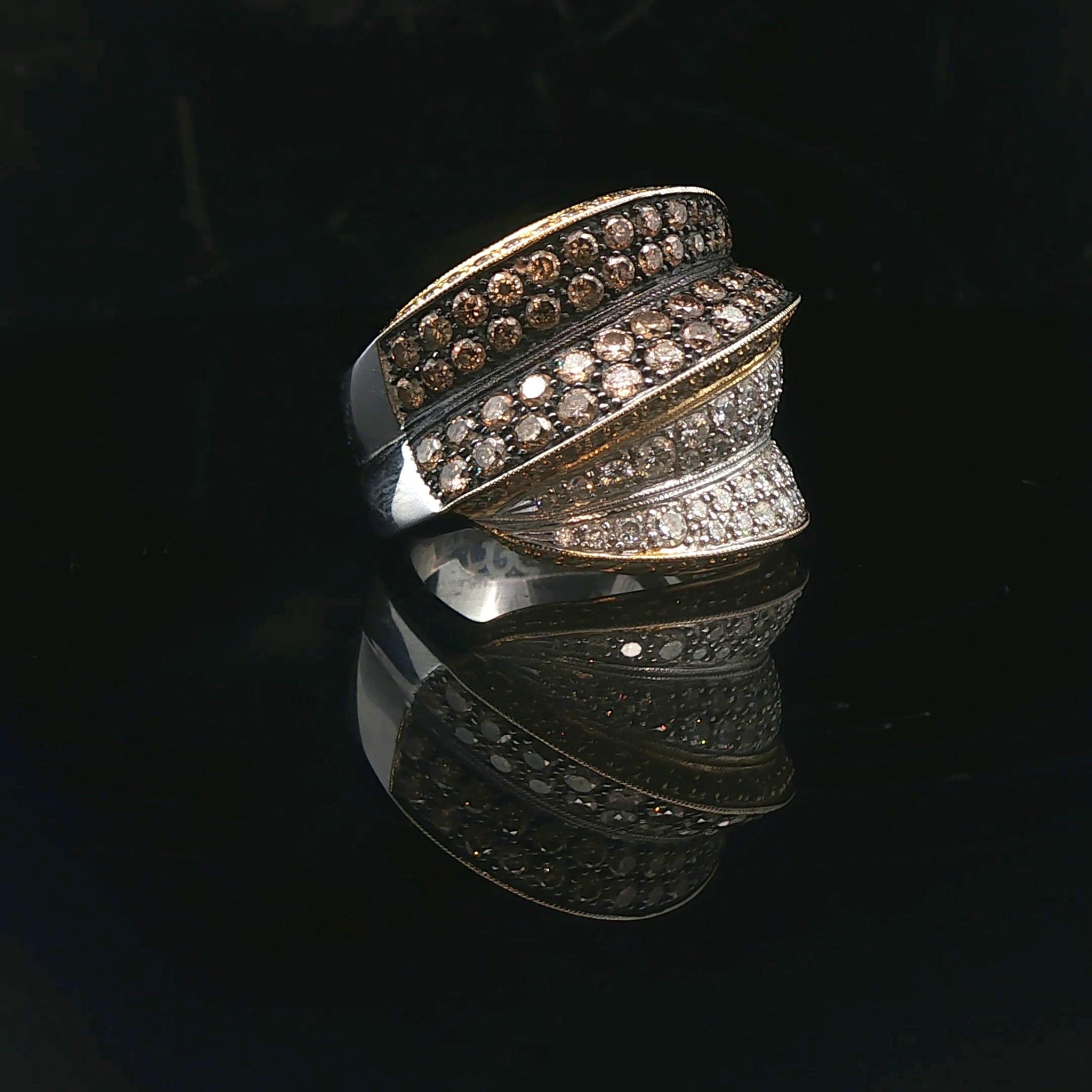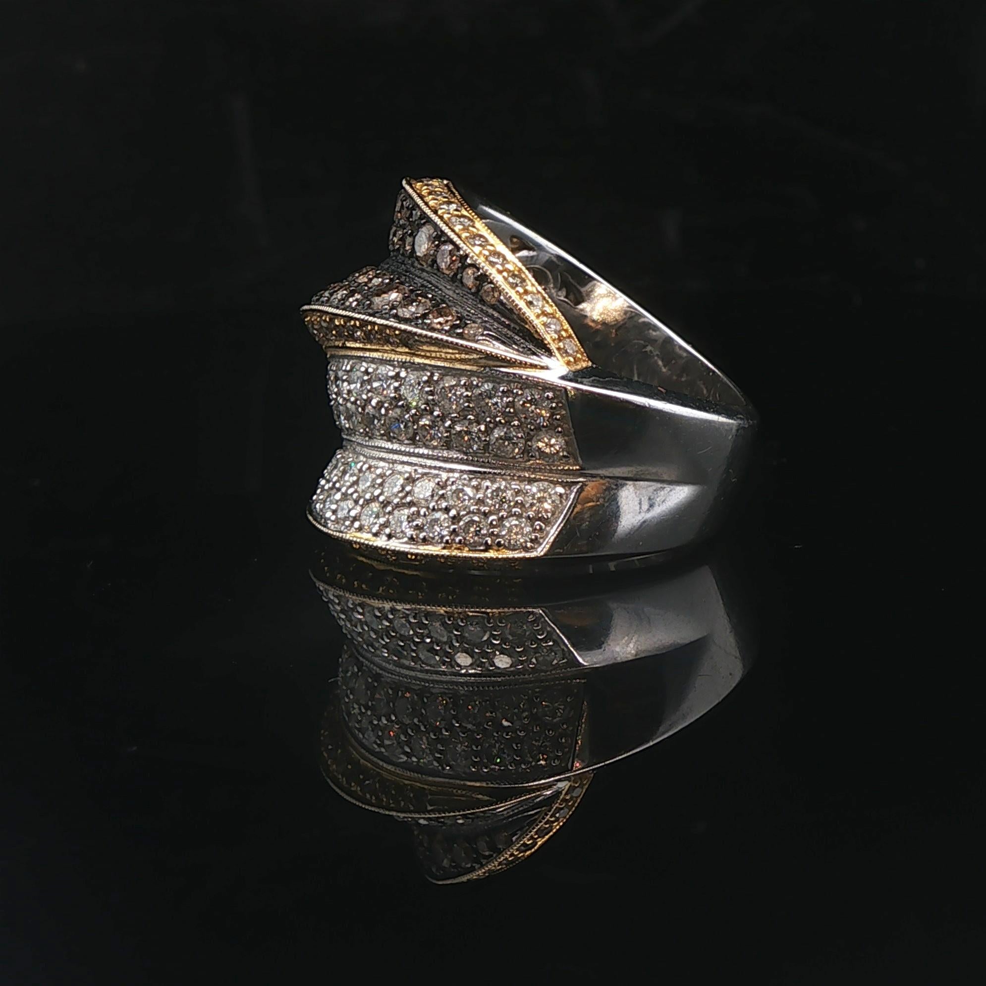 Sonia B 18k Two Tone Gold 2.25cttw Diamond Large Crossover Band Ring Size 7