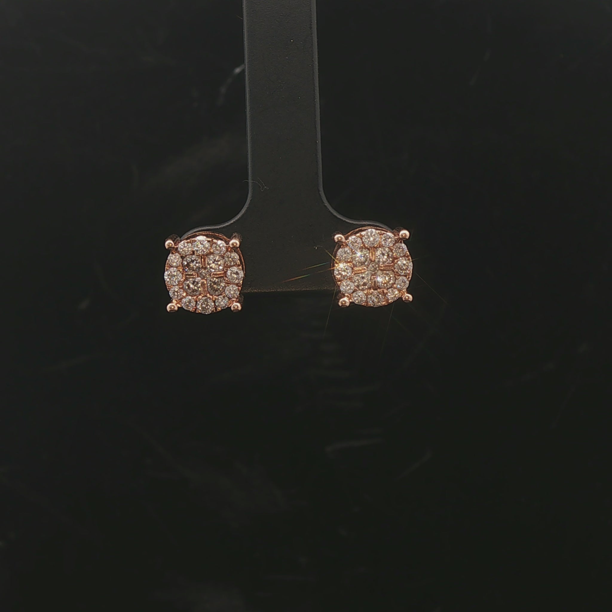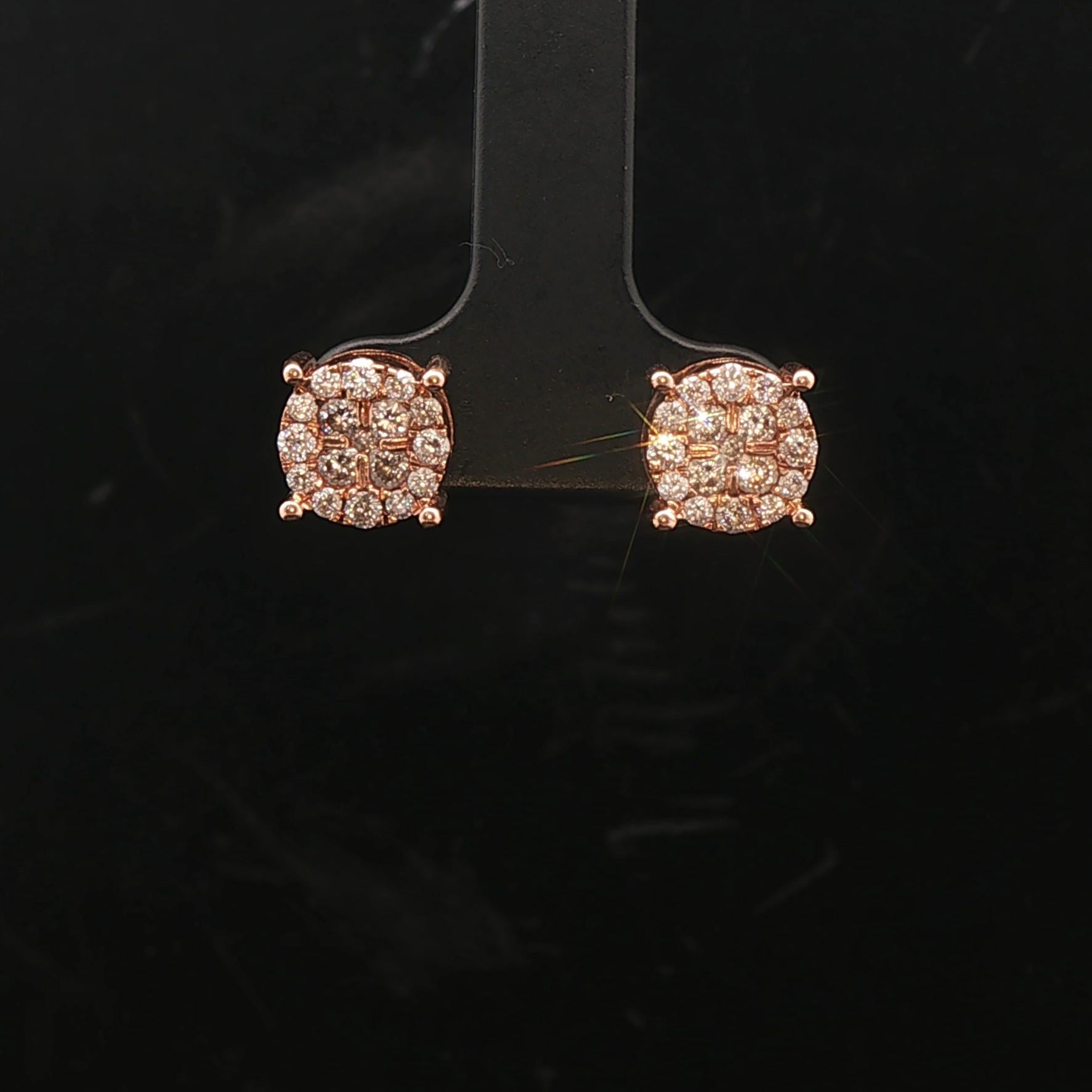 14k Rose Gold and 1cttw Diamond Cluster Stud Earrings
