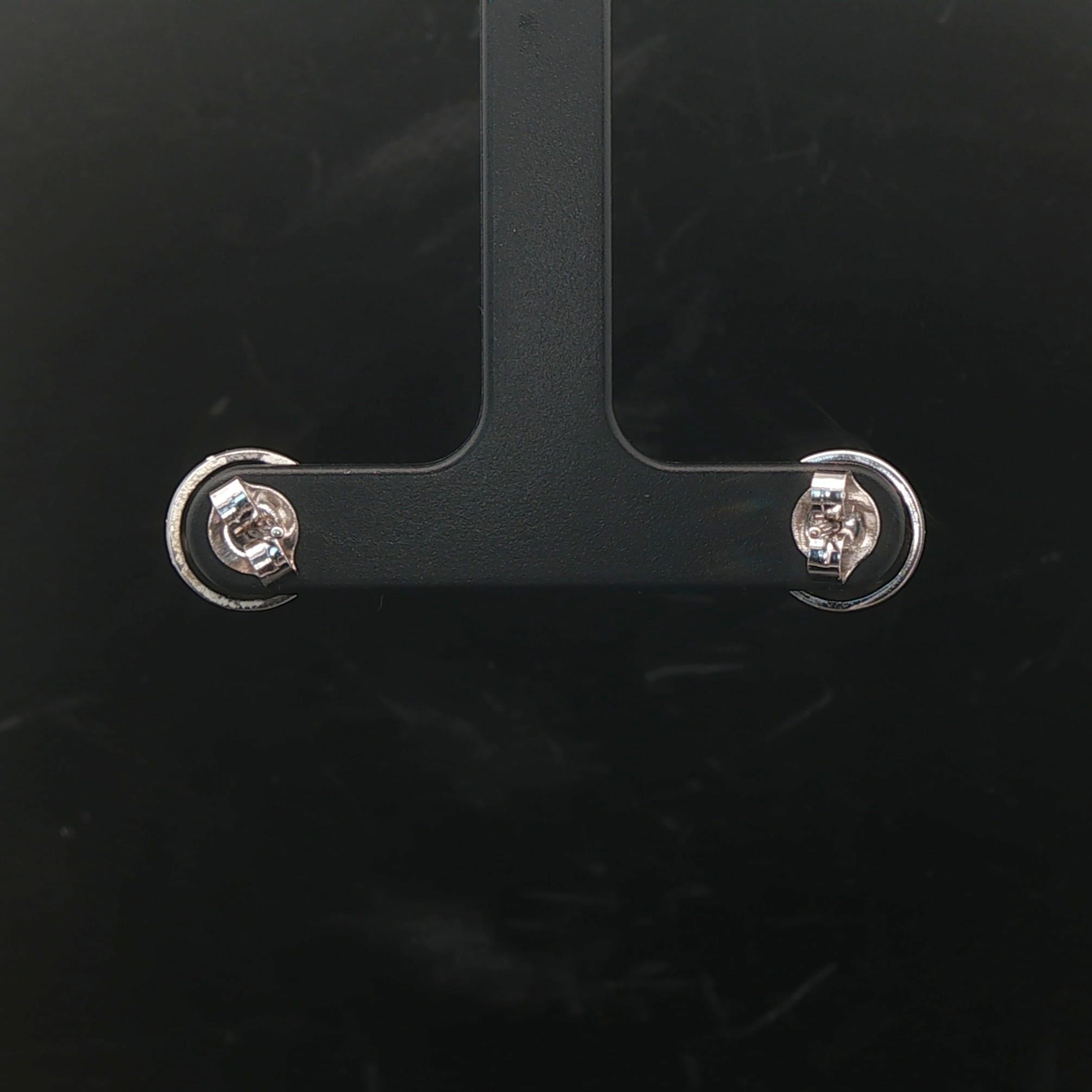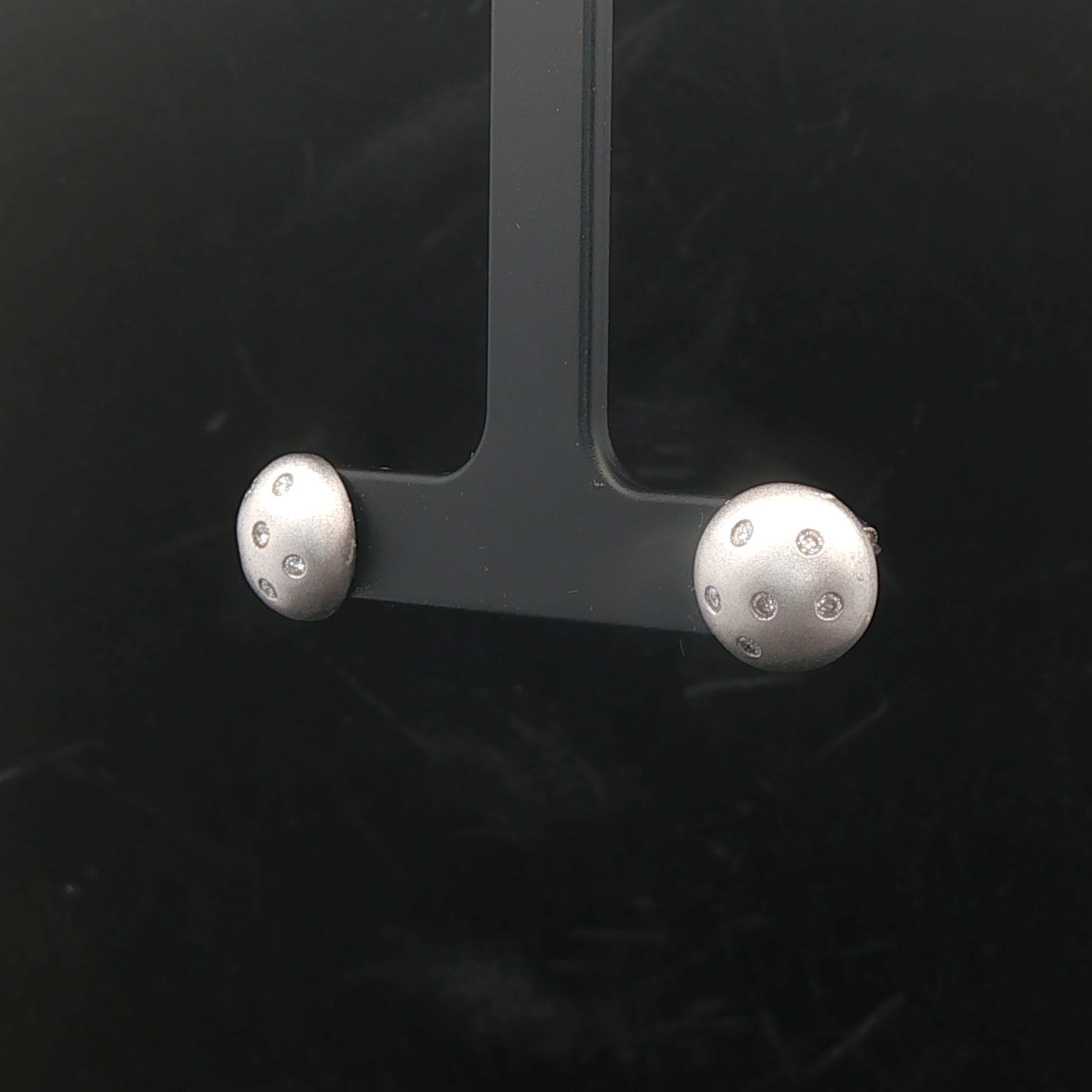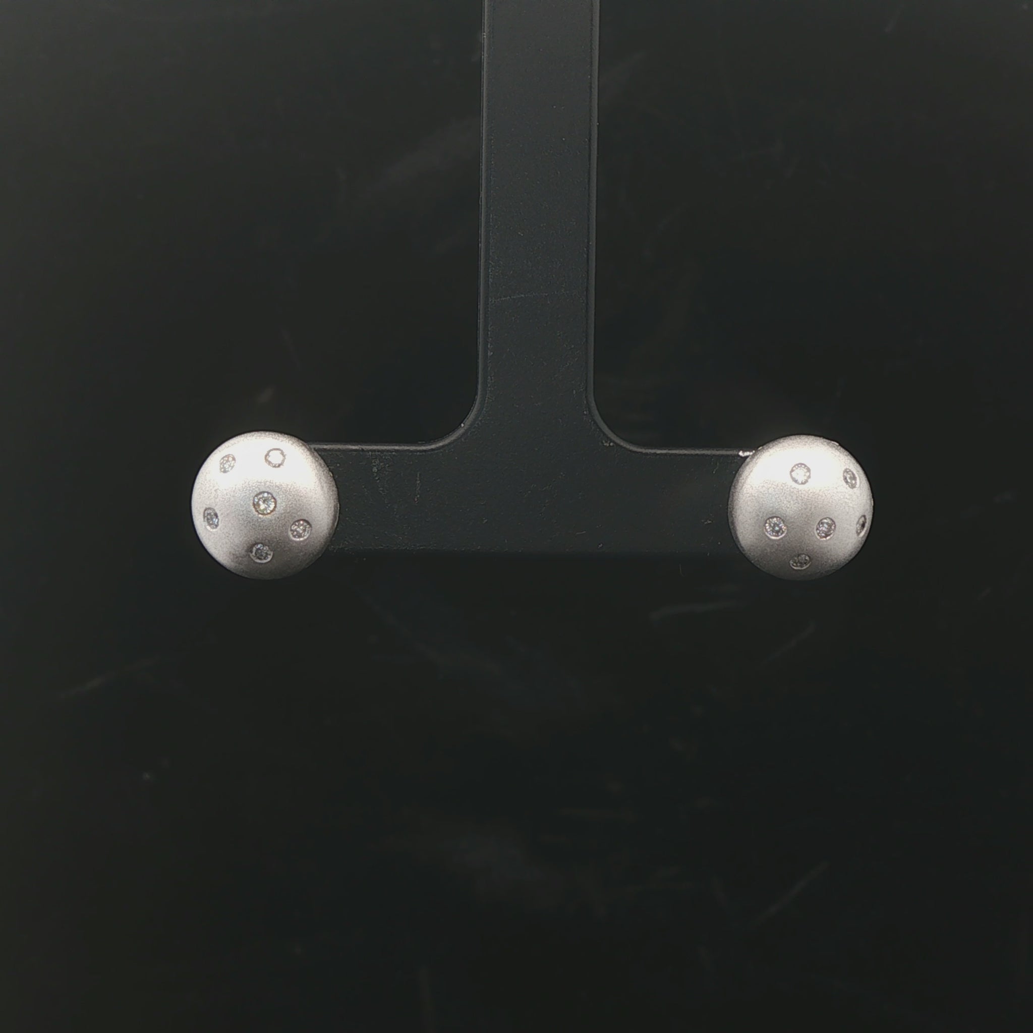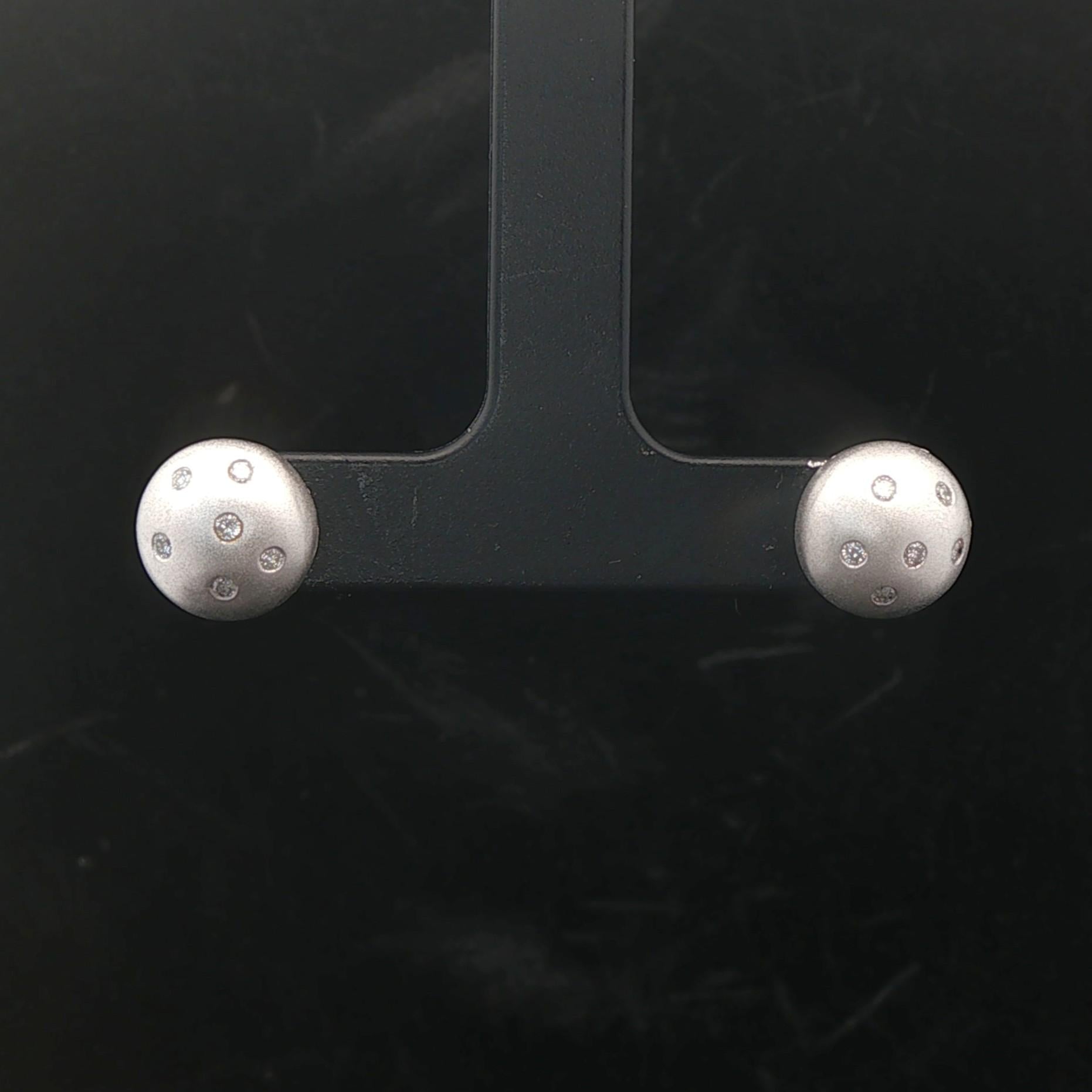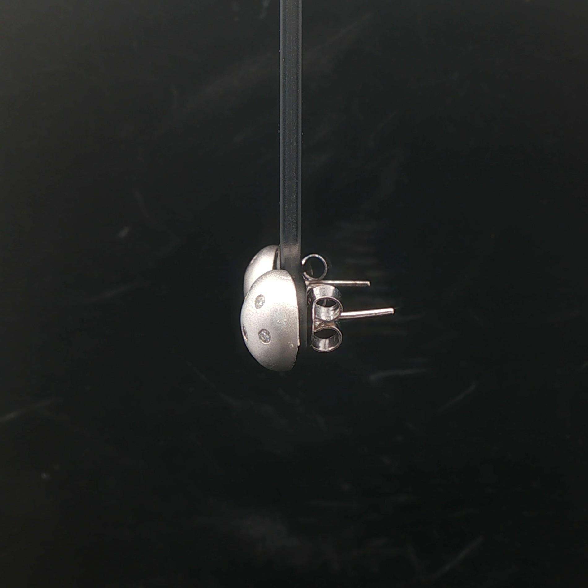 14k White Gold and Diamond Satin Finish Button Stud Earrings