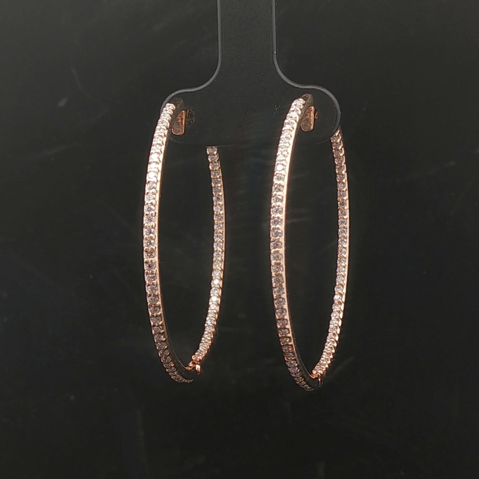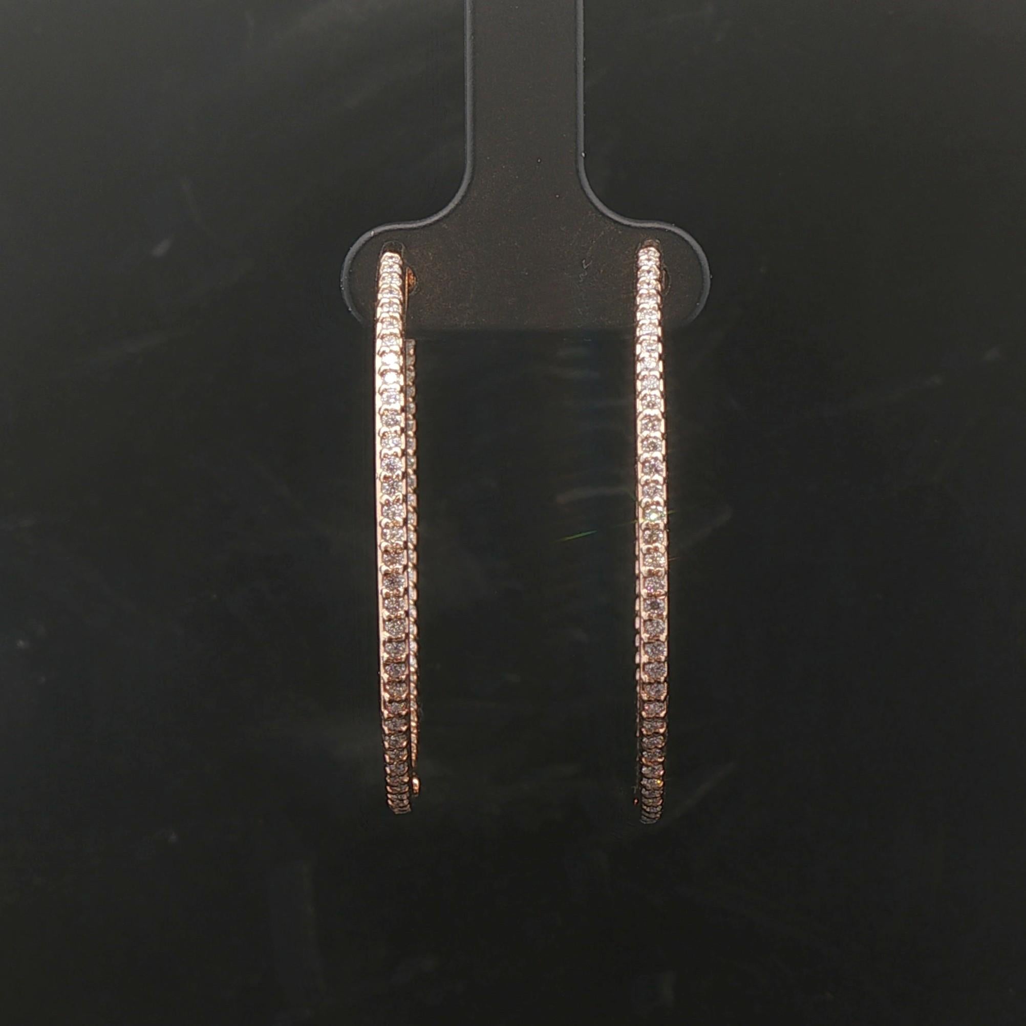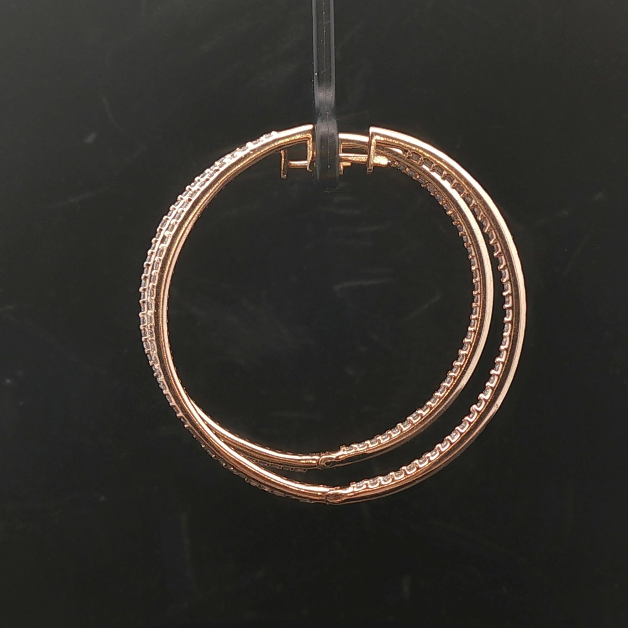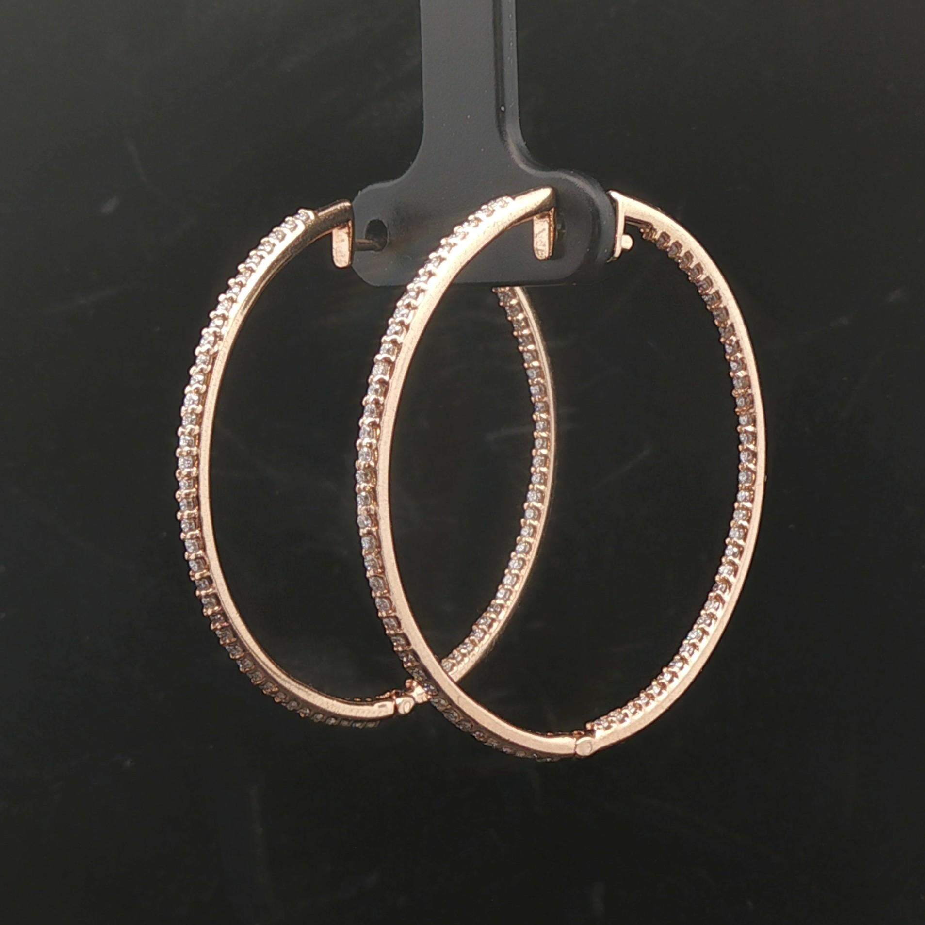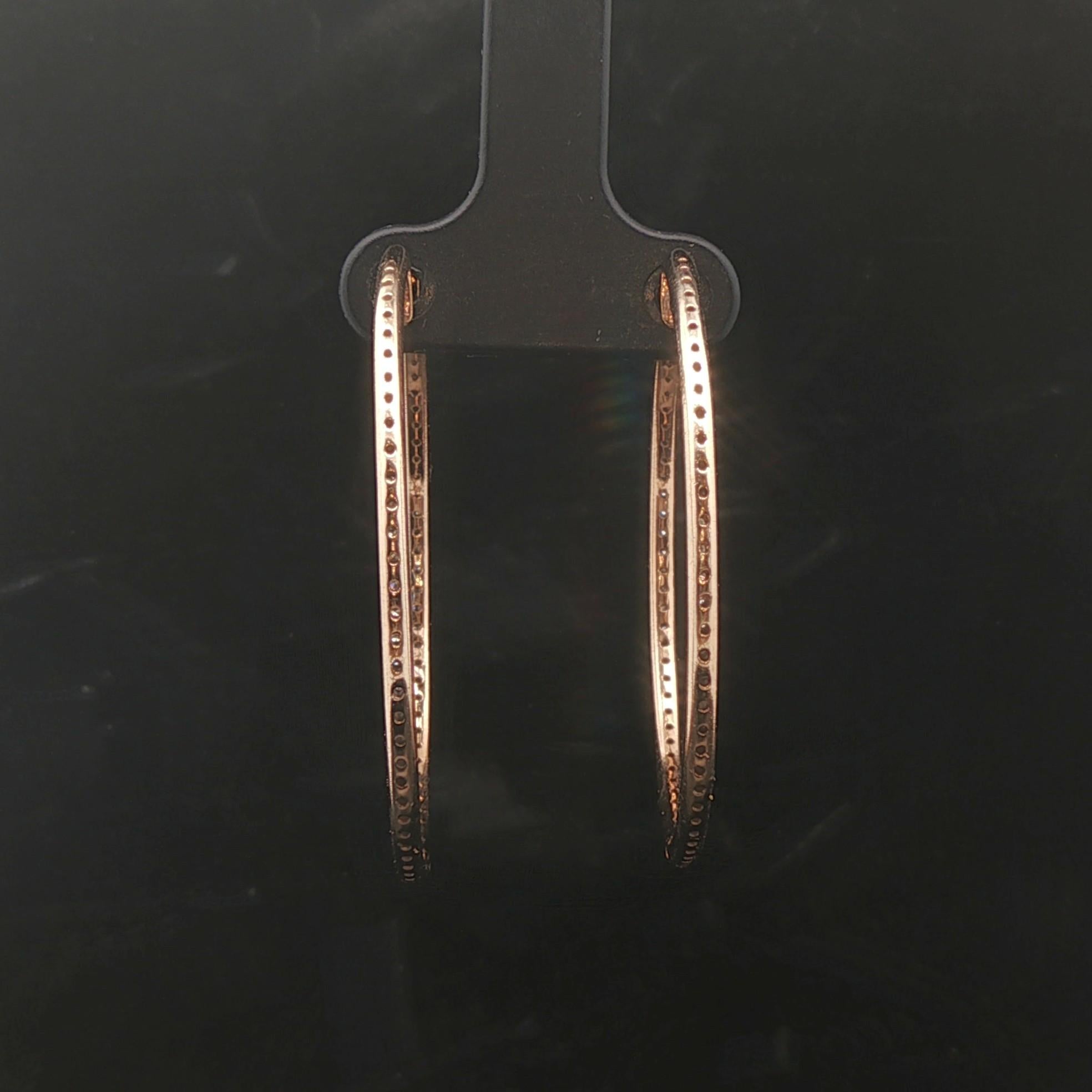 14k Yellow Gold and 1.5cttw Diamond Inside Out Hoop Earrings 1.5"