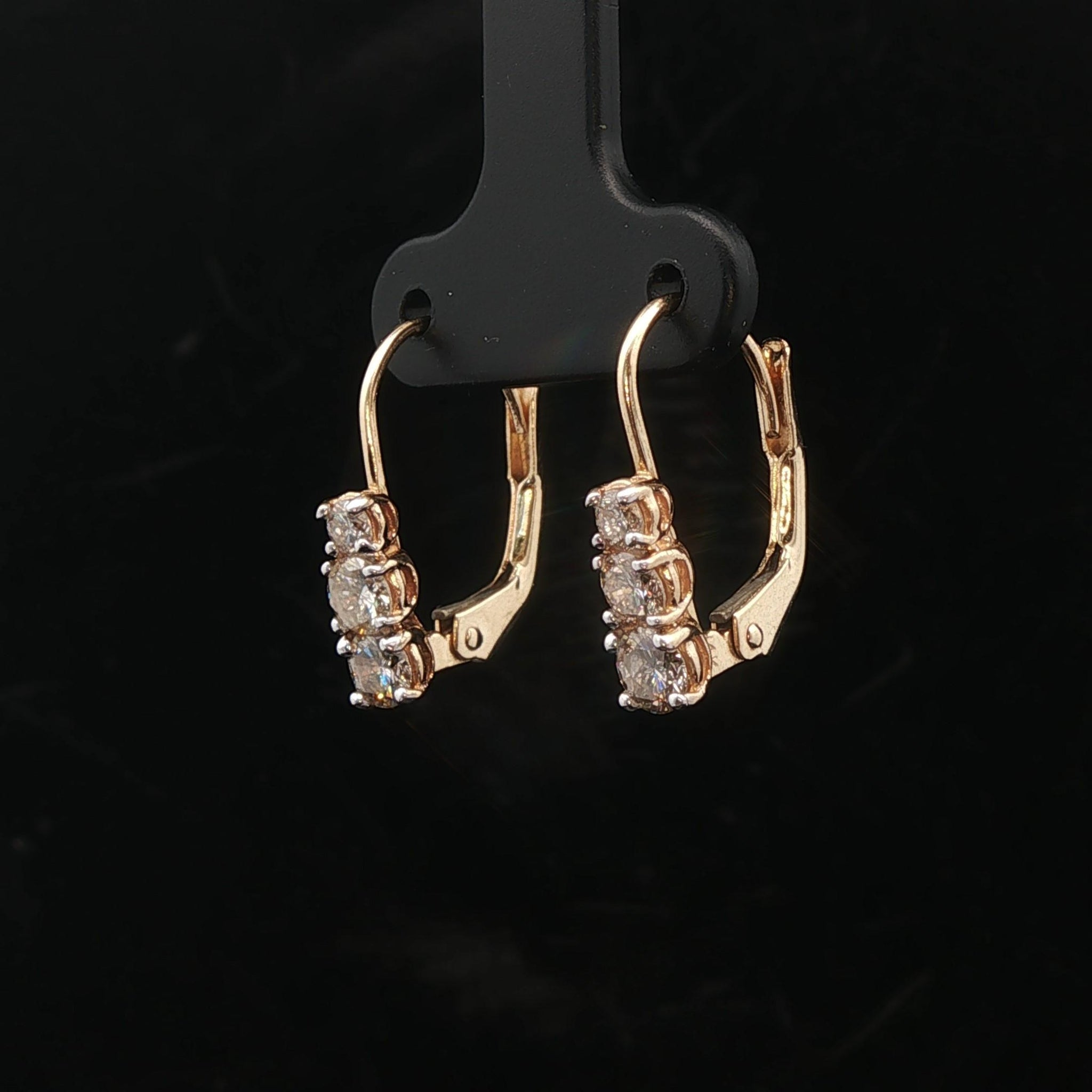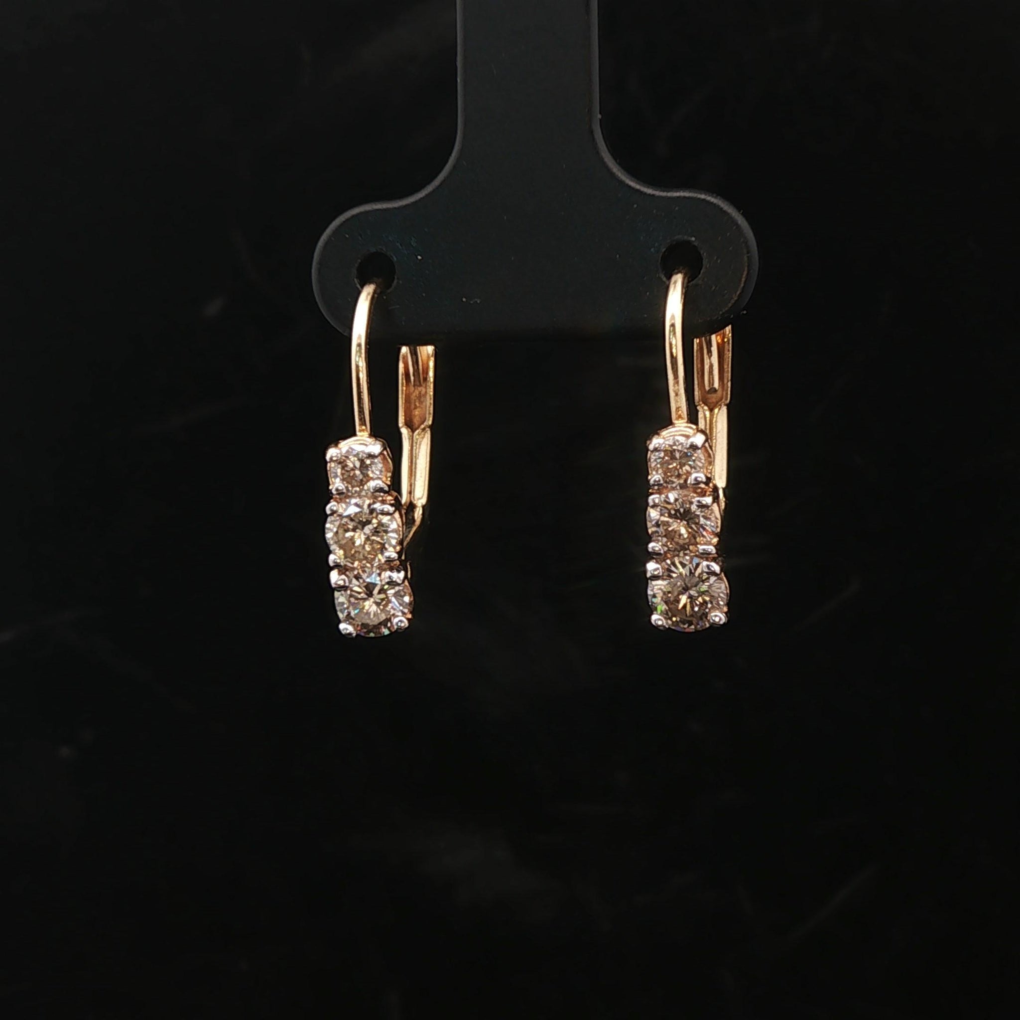 14k Yellow Gold and 1cttw Six Diamond Drop Earrings 0.75"