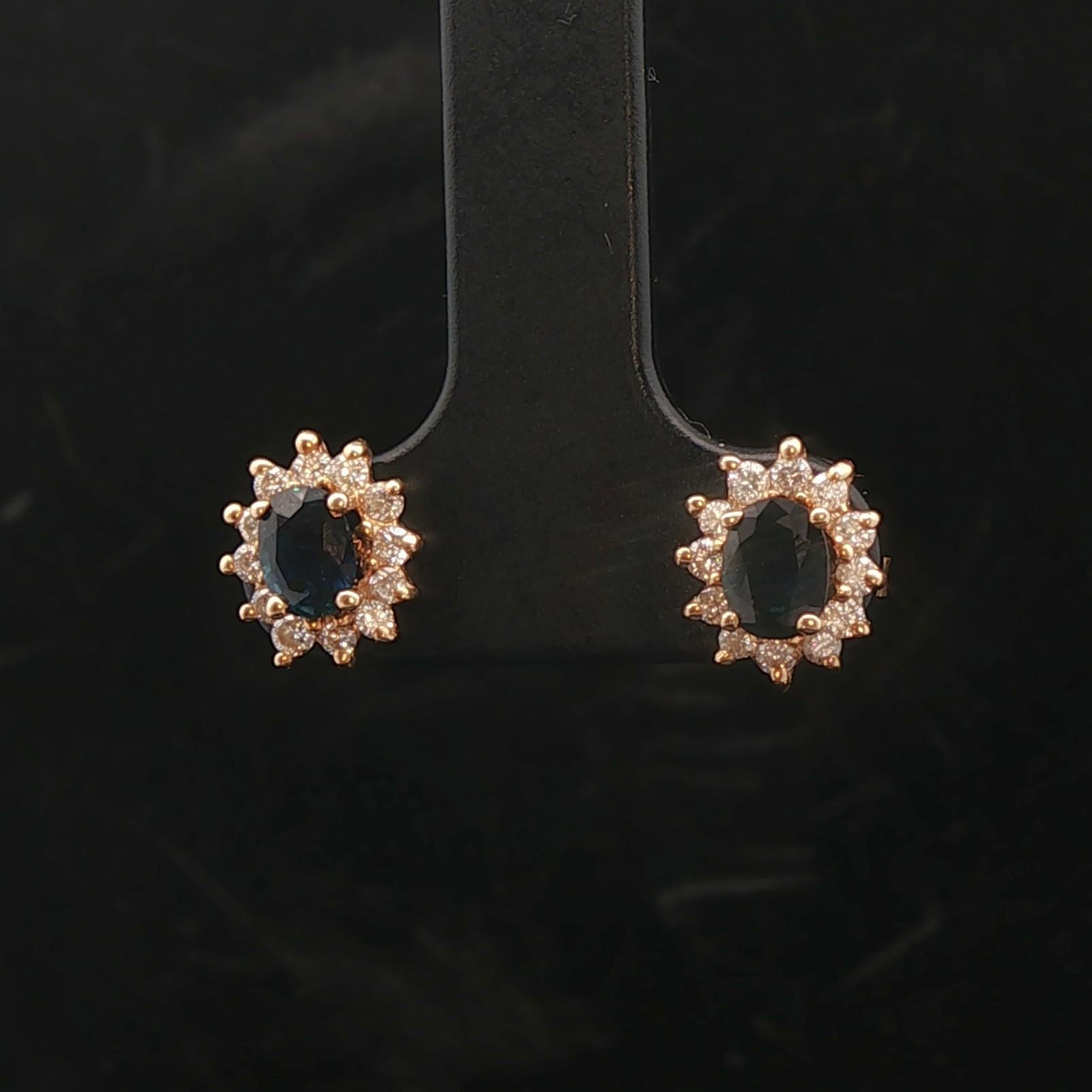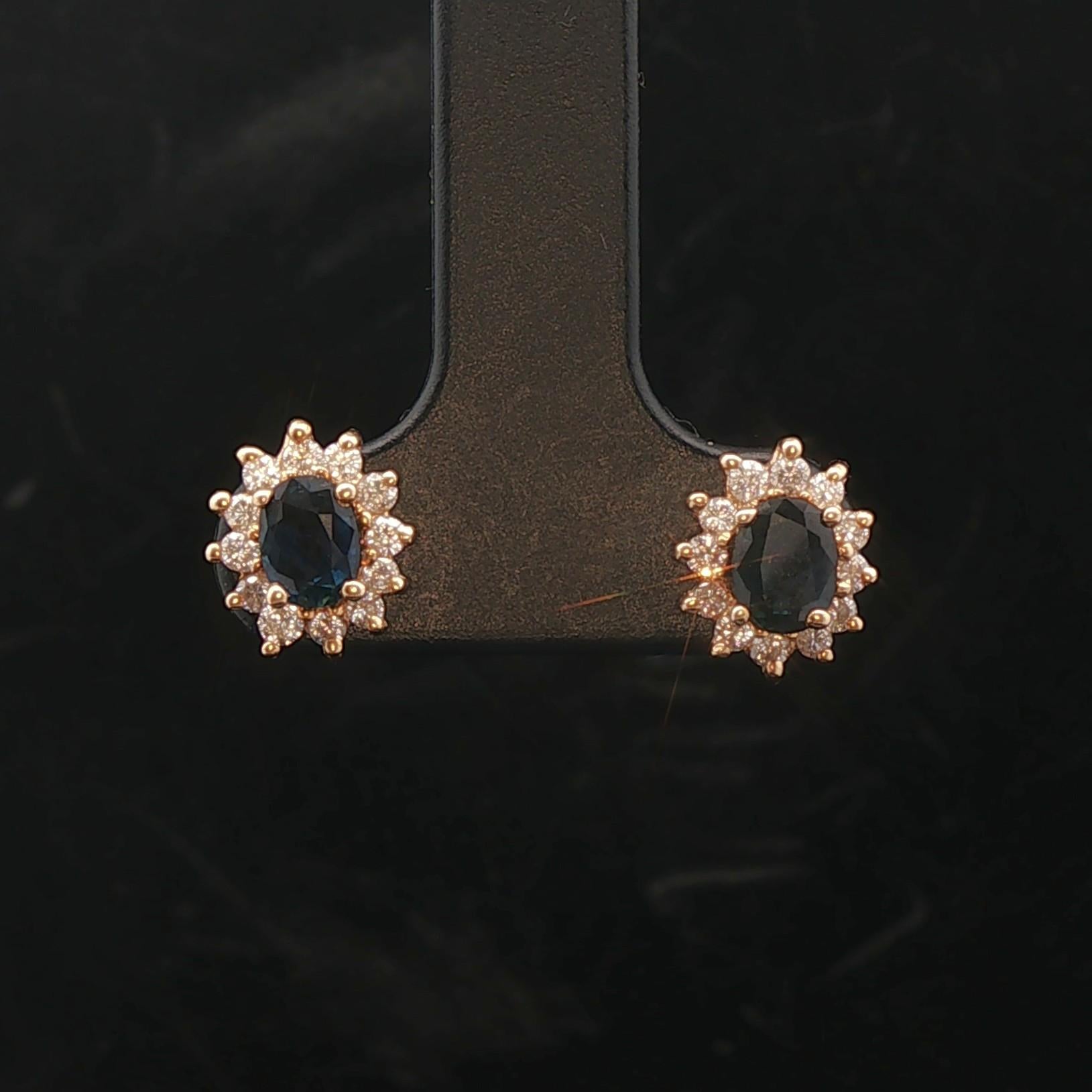 14k Yellow Gold Blue Sapphire and Diamond Halo Stud Earrings