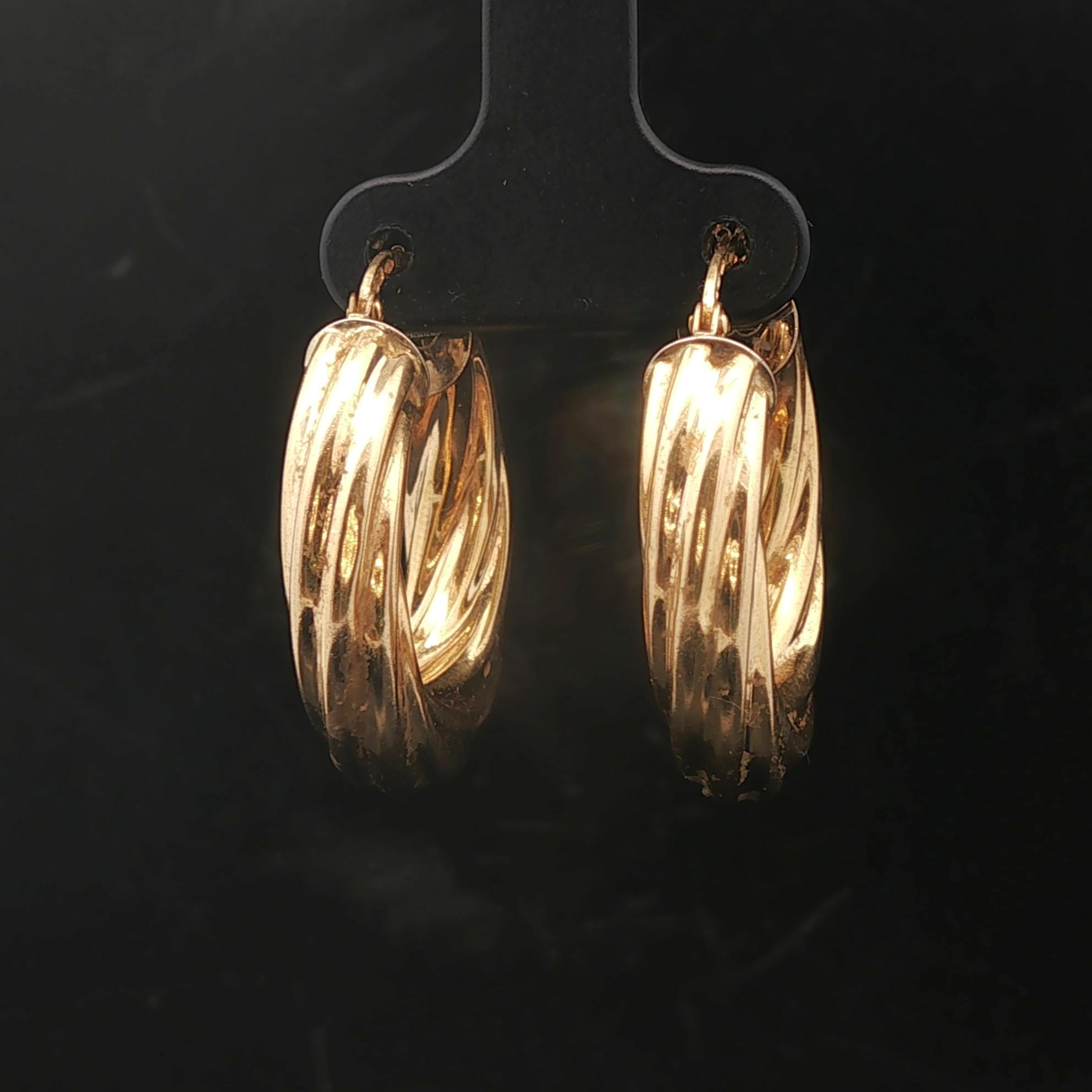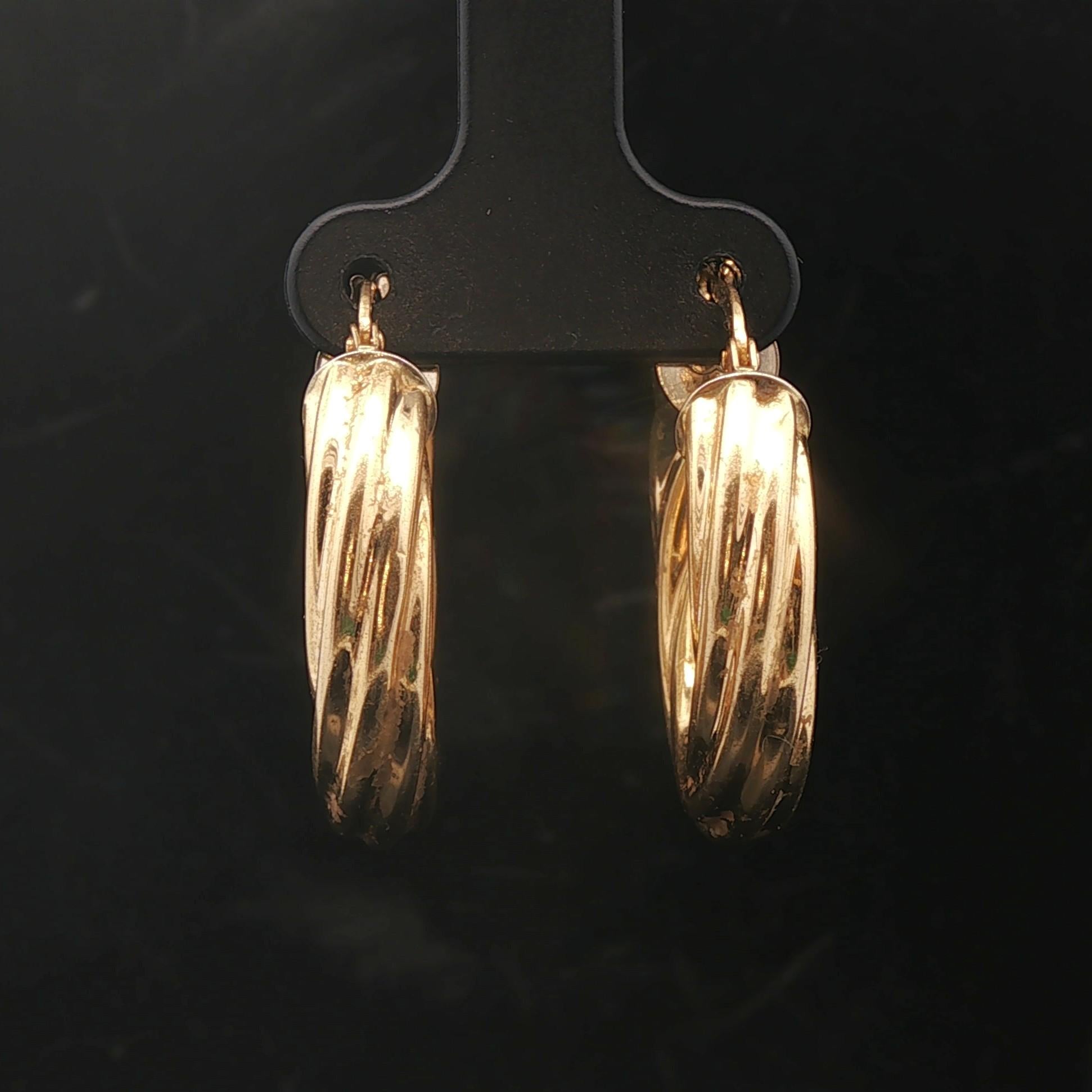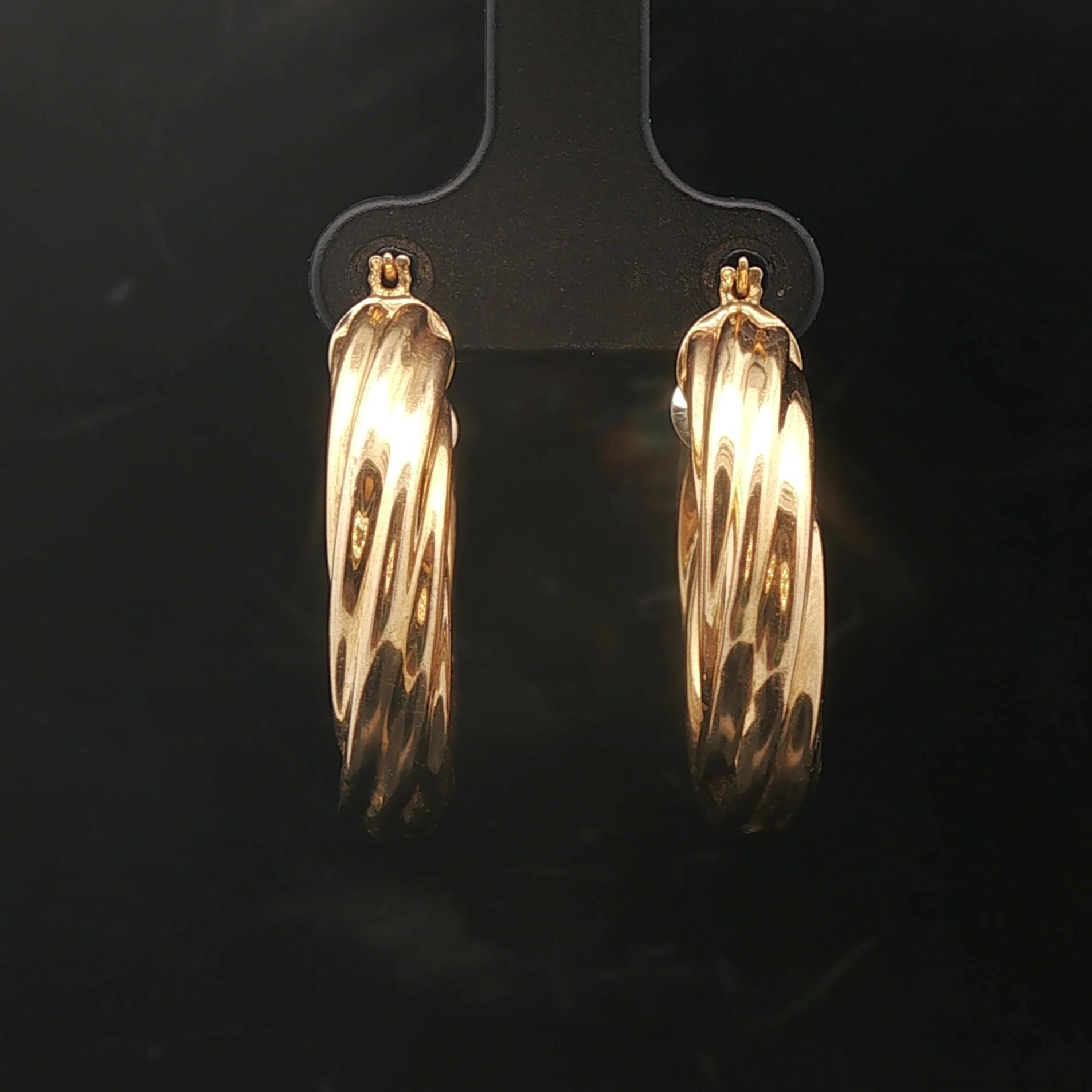 18k Yellow Gold 5g Vinage Ladies UnoAErre Spiral Twist Hoop Earrings Italy 1"