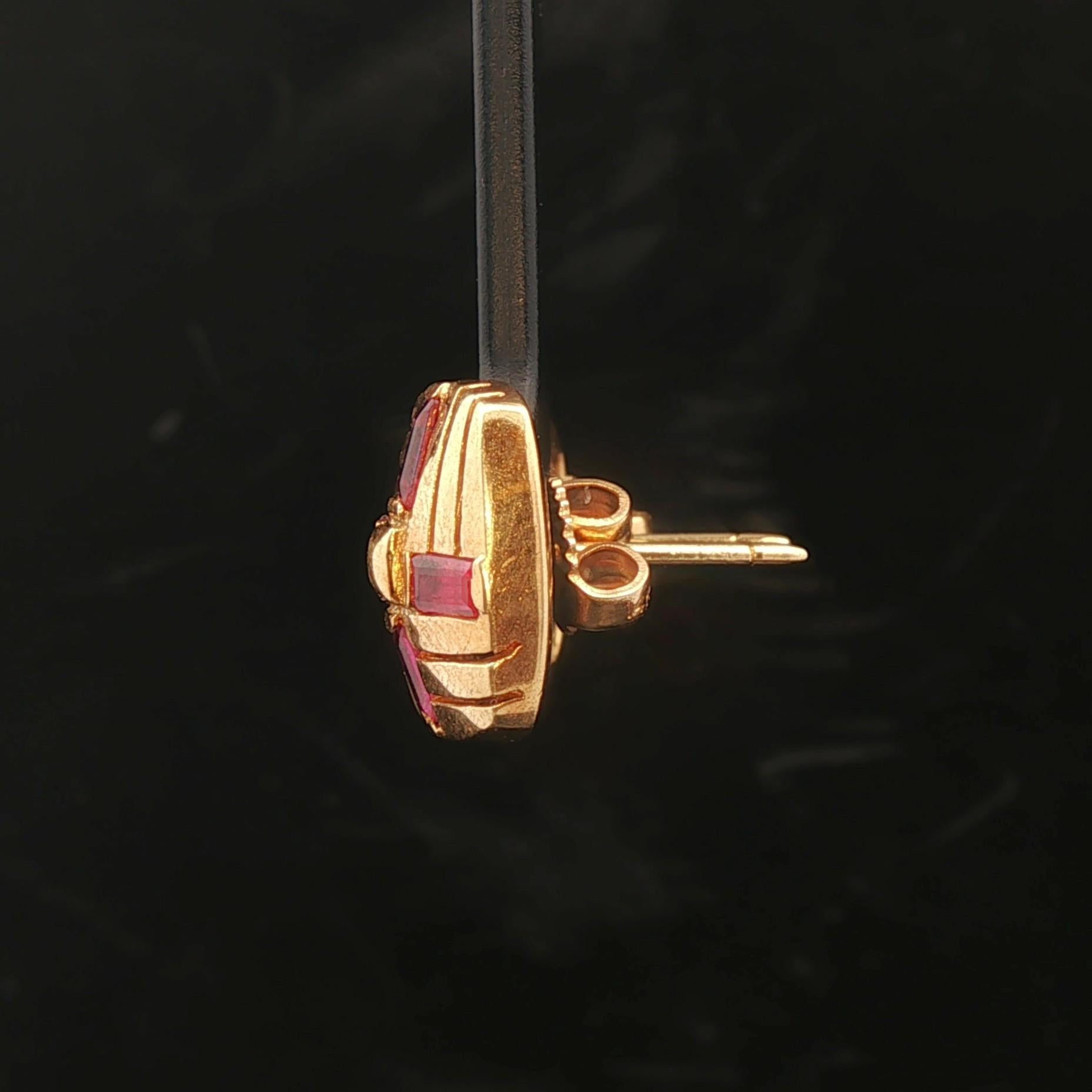 18k Yellow Gold and Baguette Ruby Vintage Square Stud Earrings