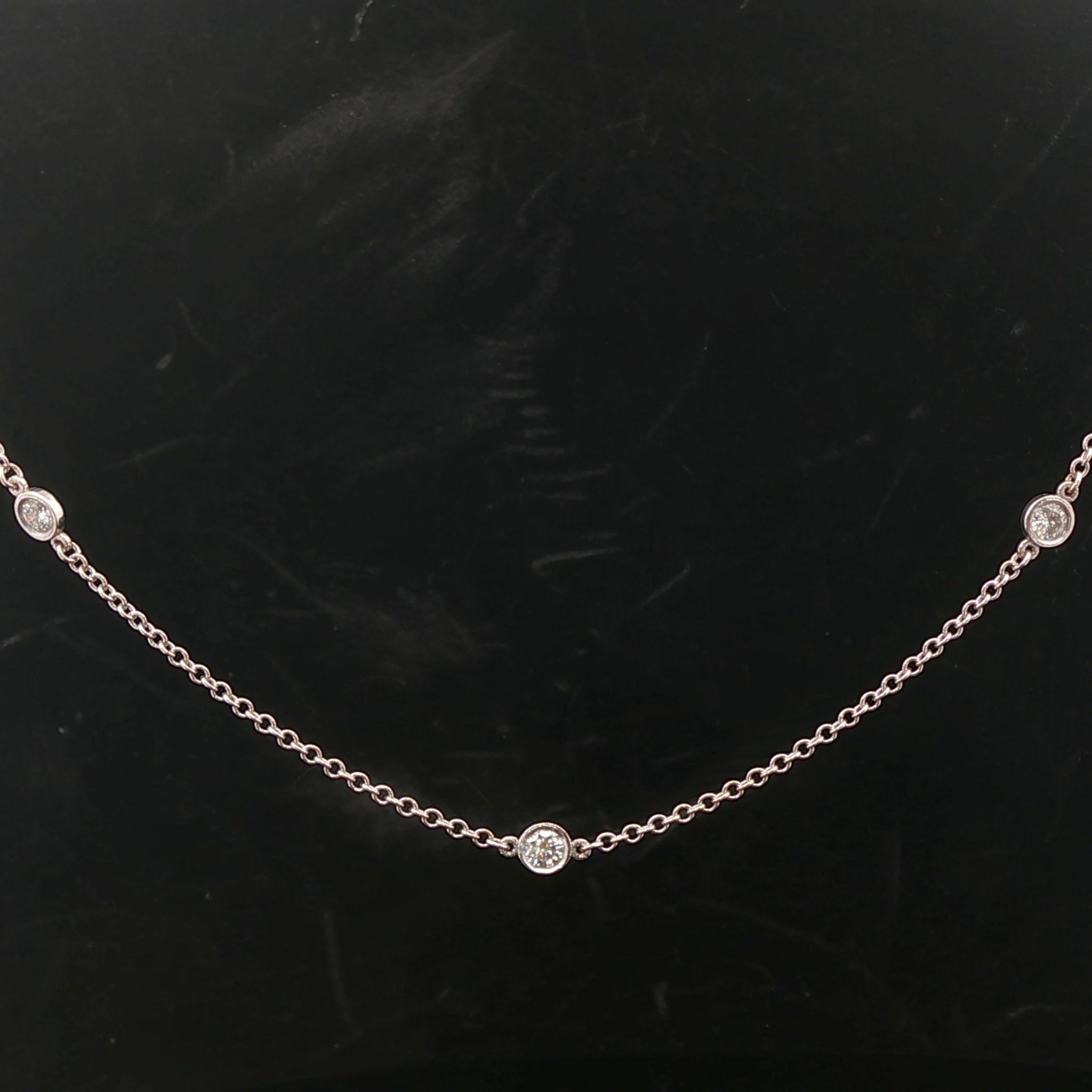 14k White Gold and 0.70cttw Seven Diamond by Yard Necklace Italy 15.5"