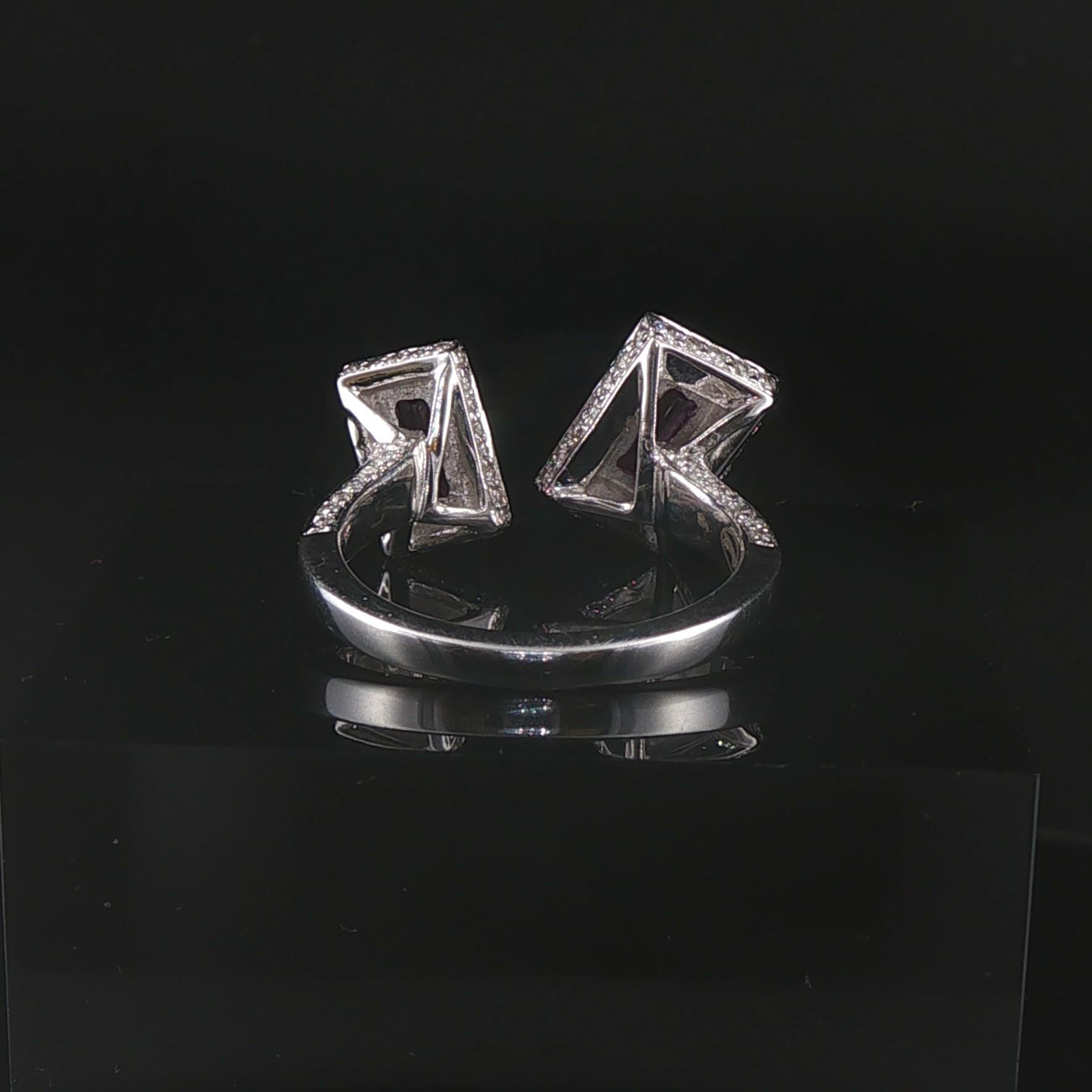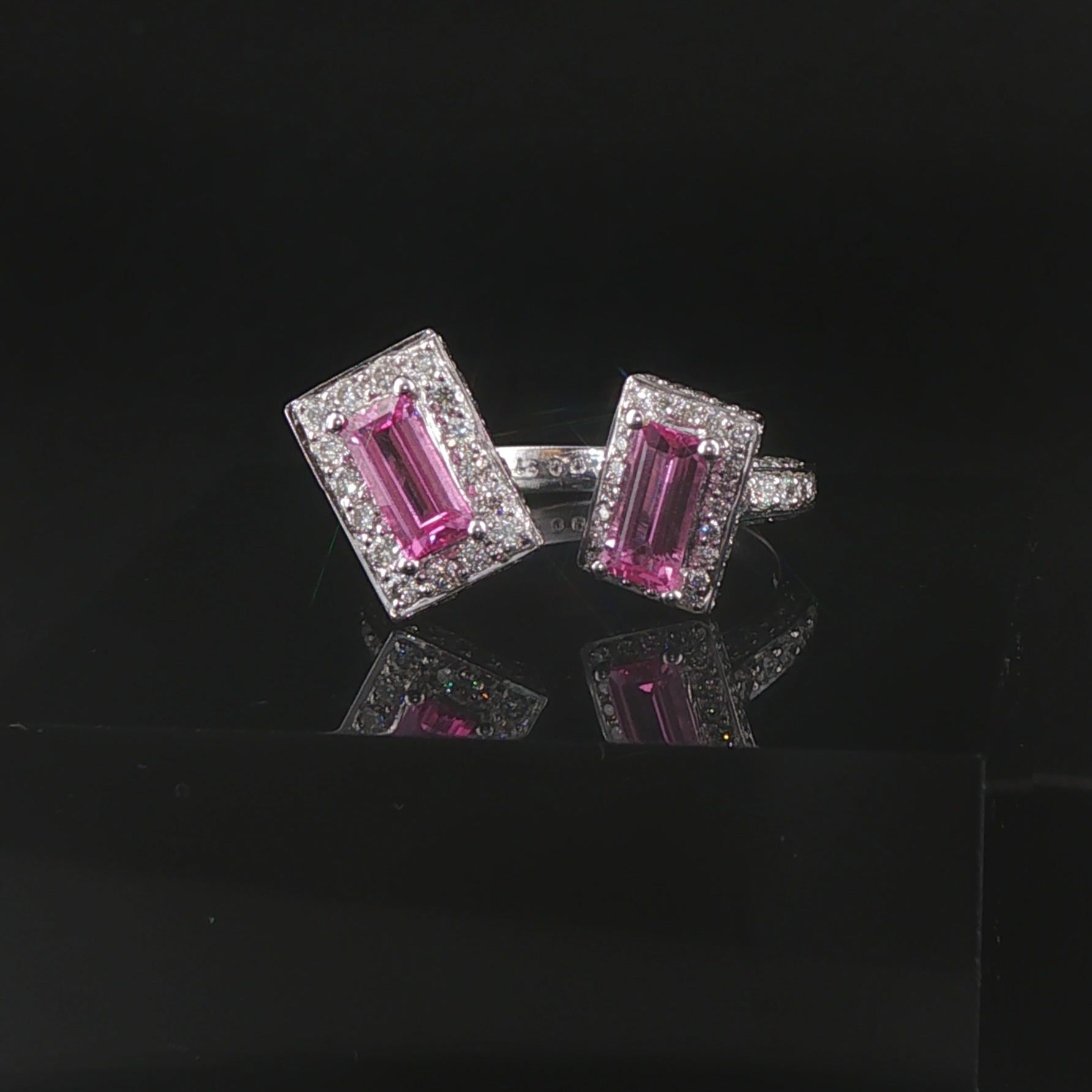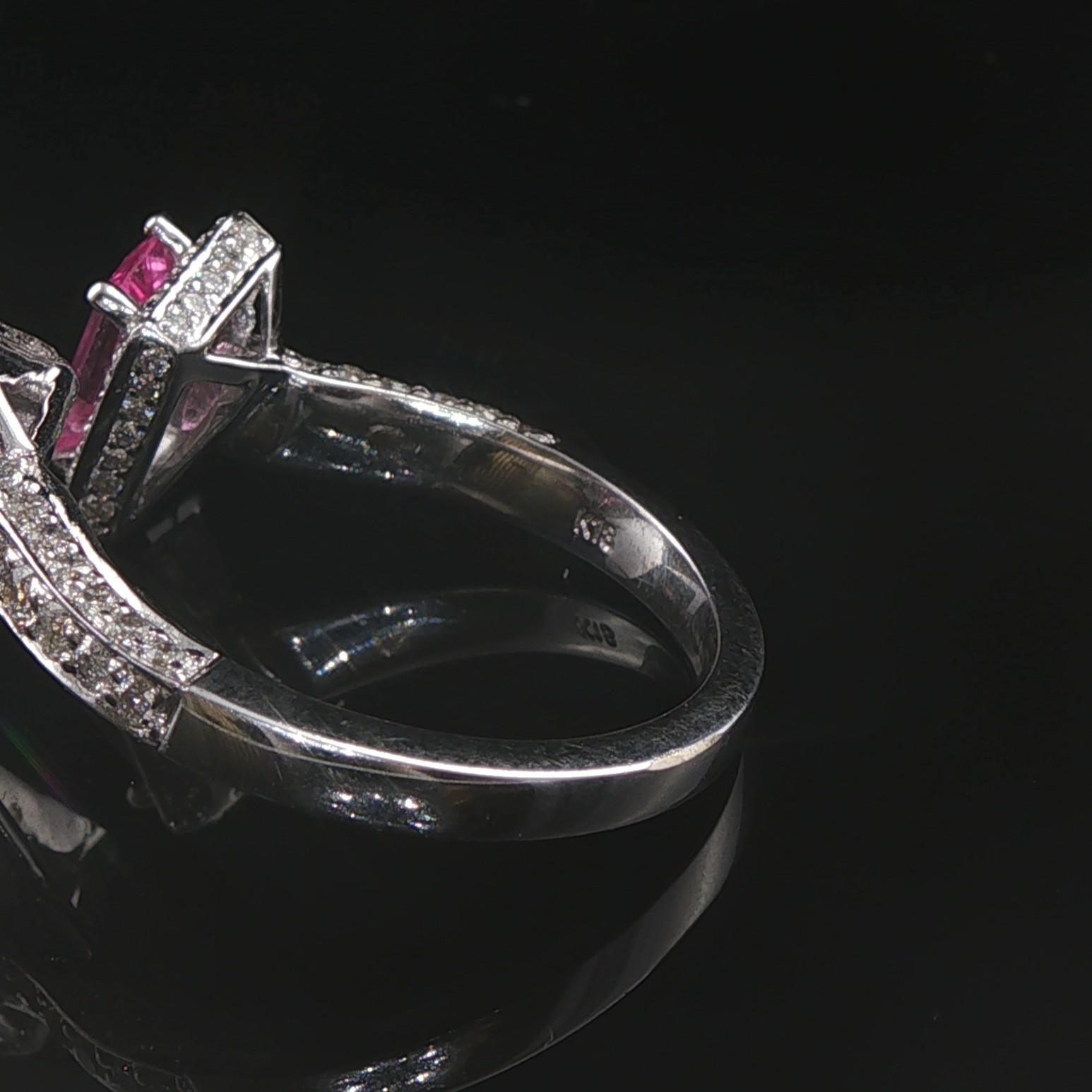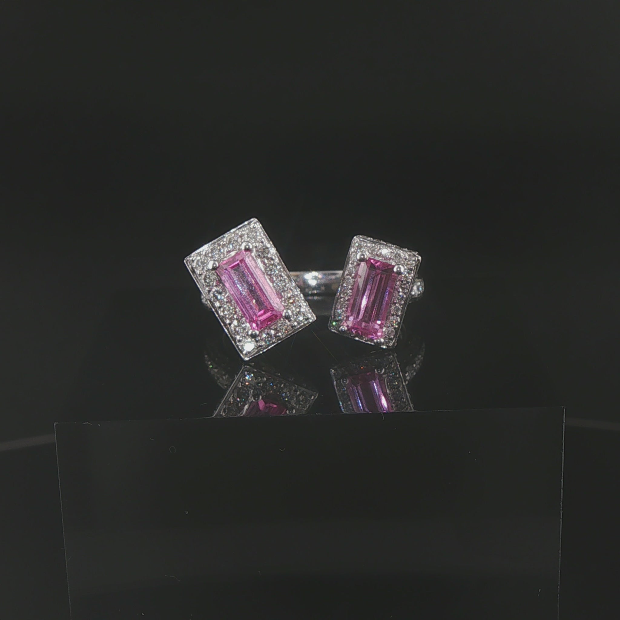 Salavetti 18k White Gold Pink Sapphire and Diamond Et Toi Moi Bypass Ring Size 7