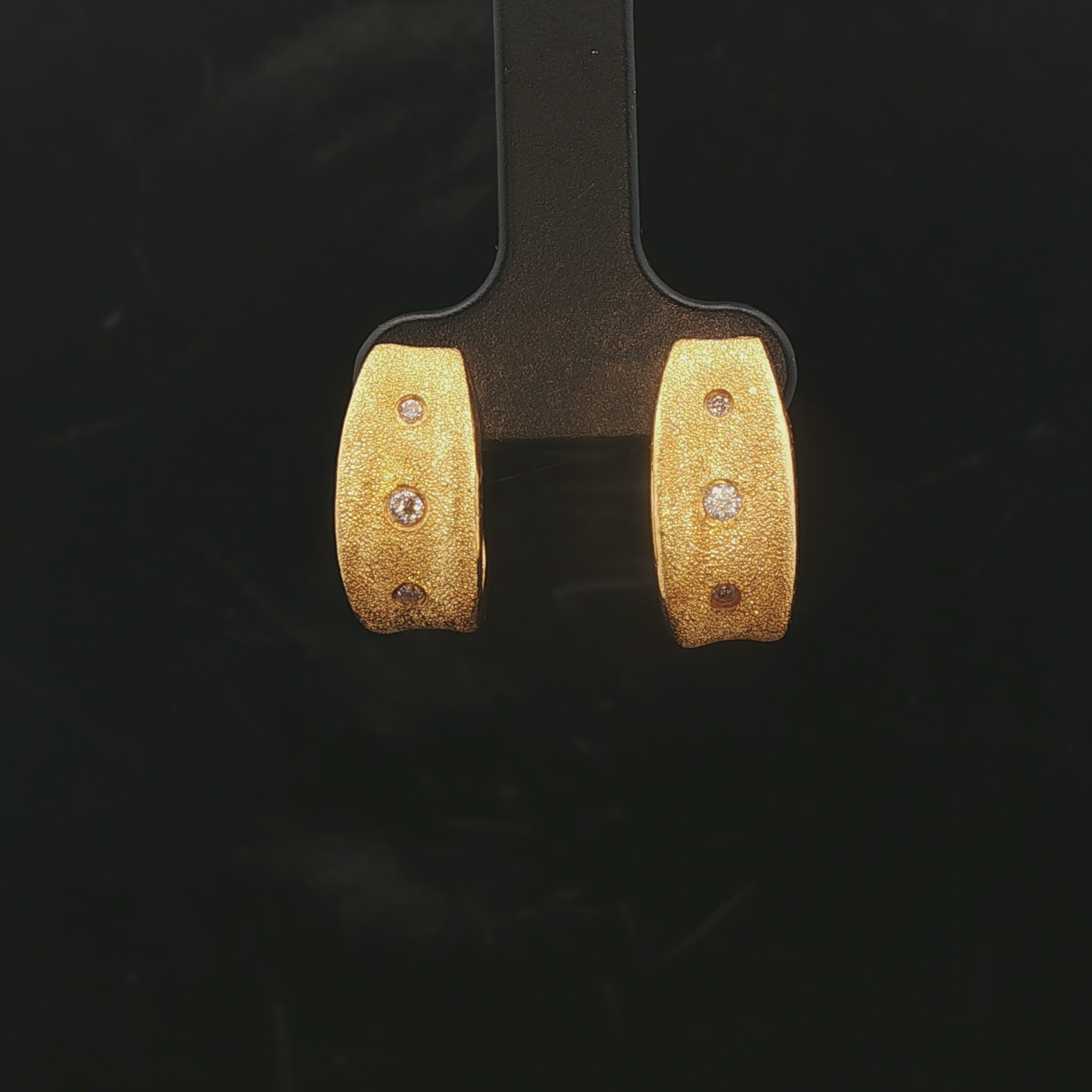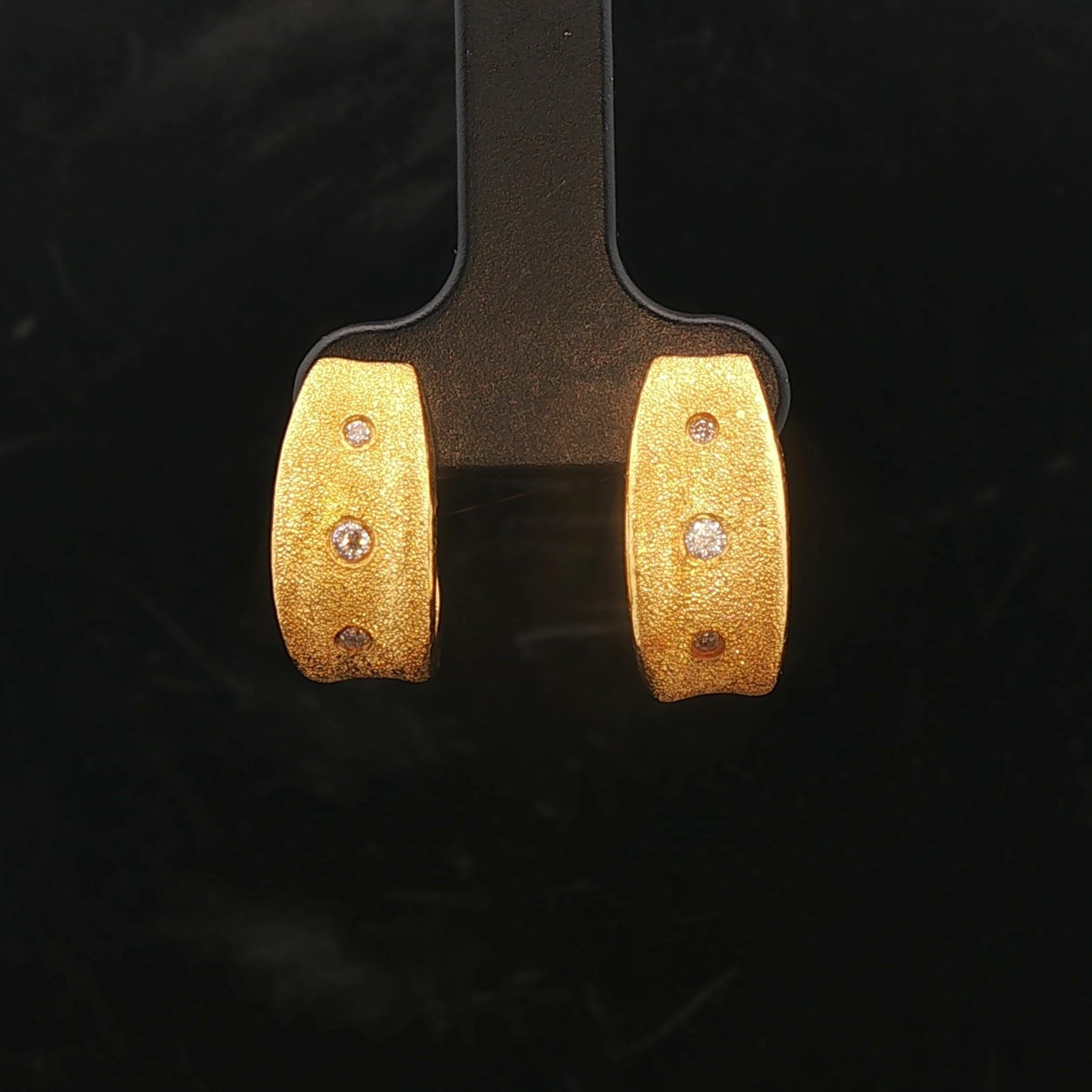 24k Pure Yellow Gold and Diamond 7.4g Solid Brushed Textured Huggie Earrings